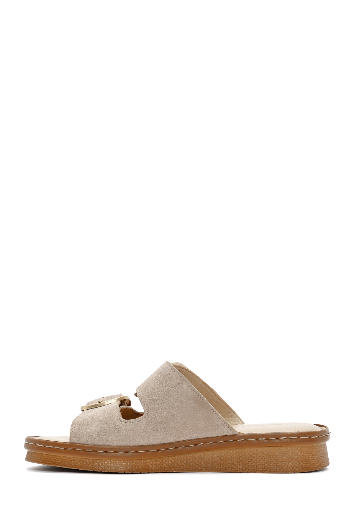 Derimod’un Zarifliği ve Şıklığı bir arada sunan Kadın Bej Tokalı Süet Deri Terlik ile tarzınızı konuşturun. Ürünün kodu: 24SFD341610 05