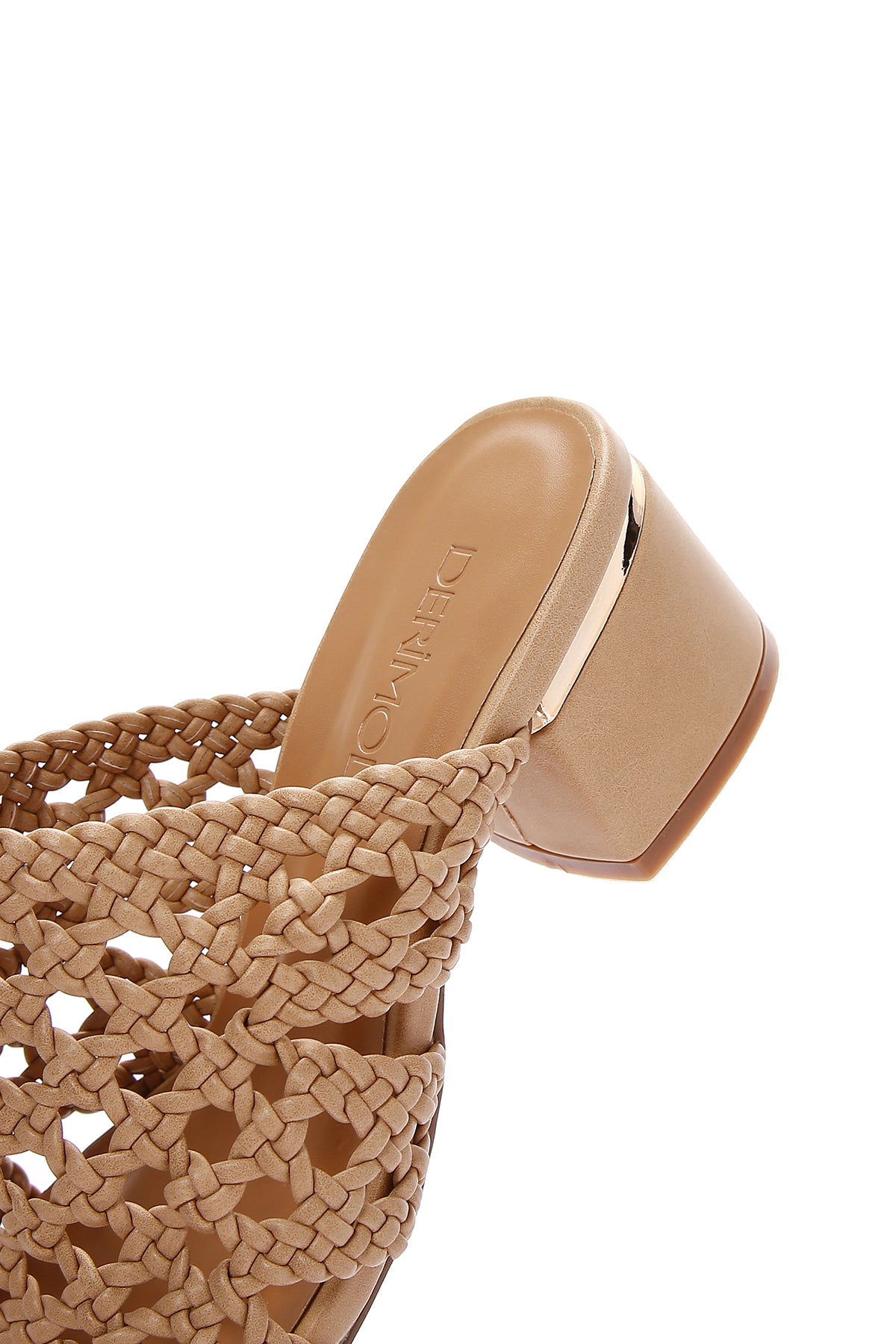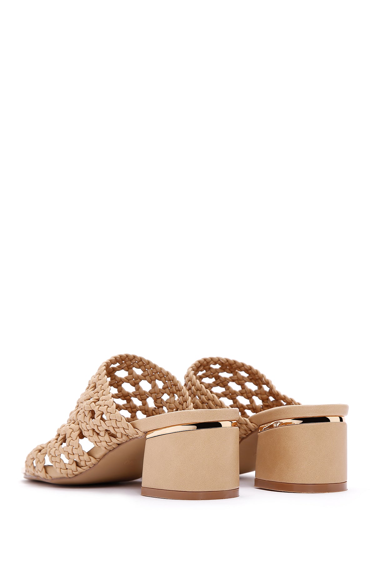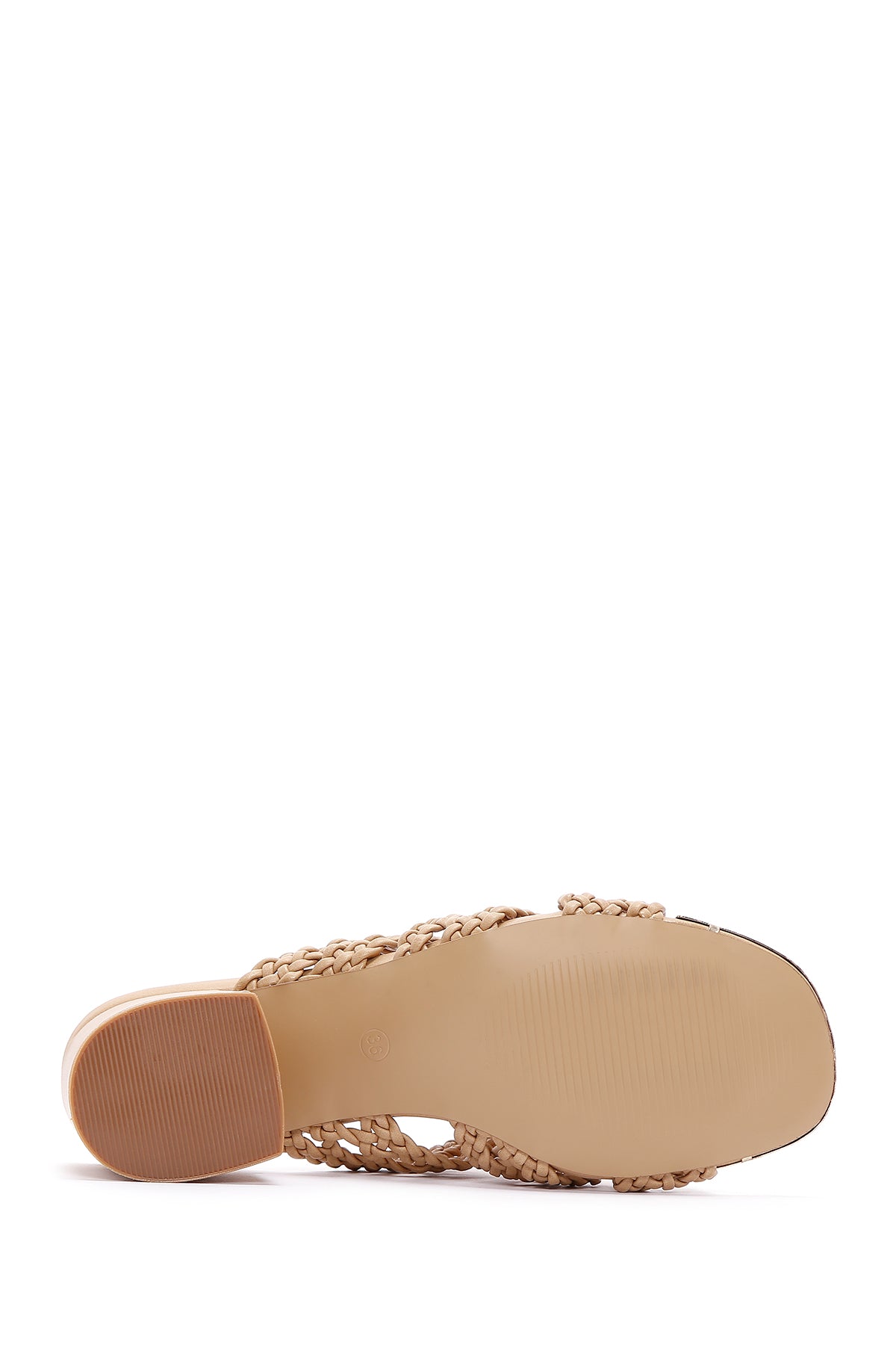 Kadın Bej Topuklu Örgü Desenli Terlik