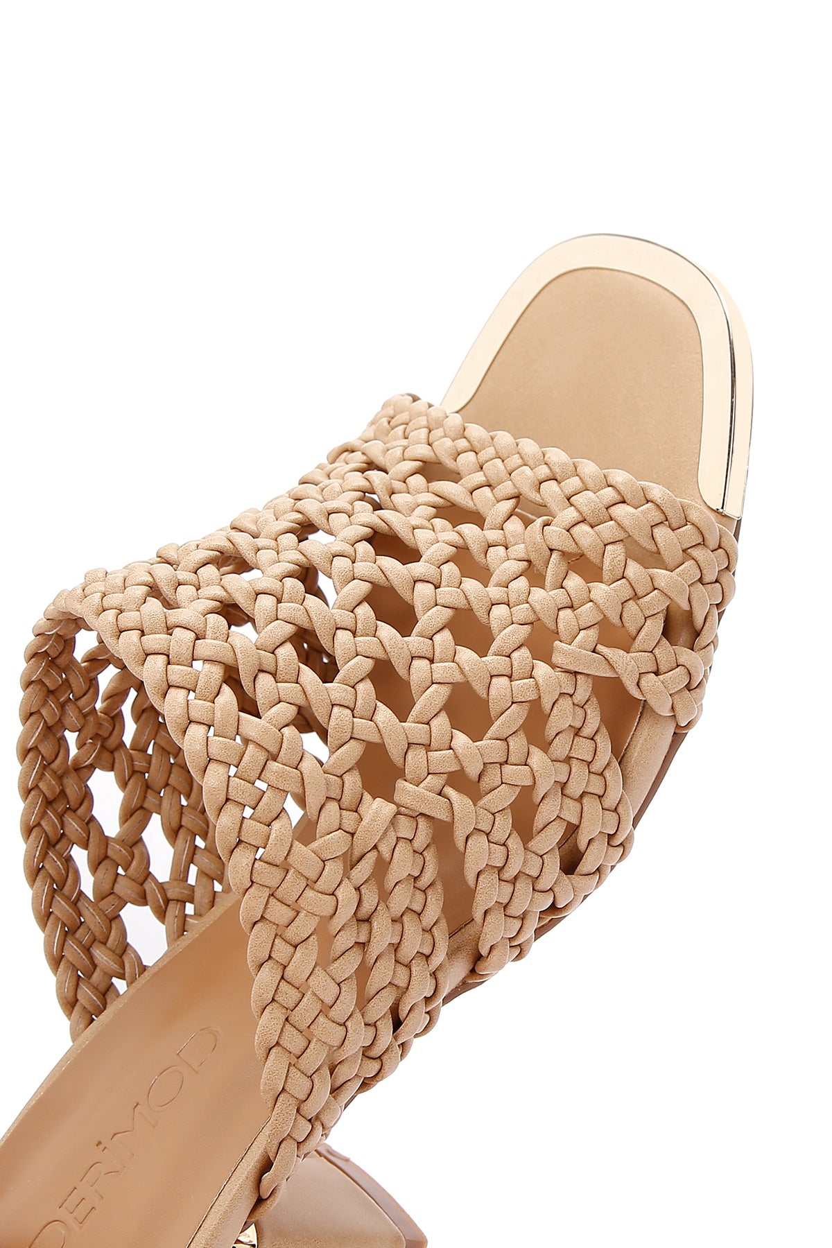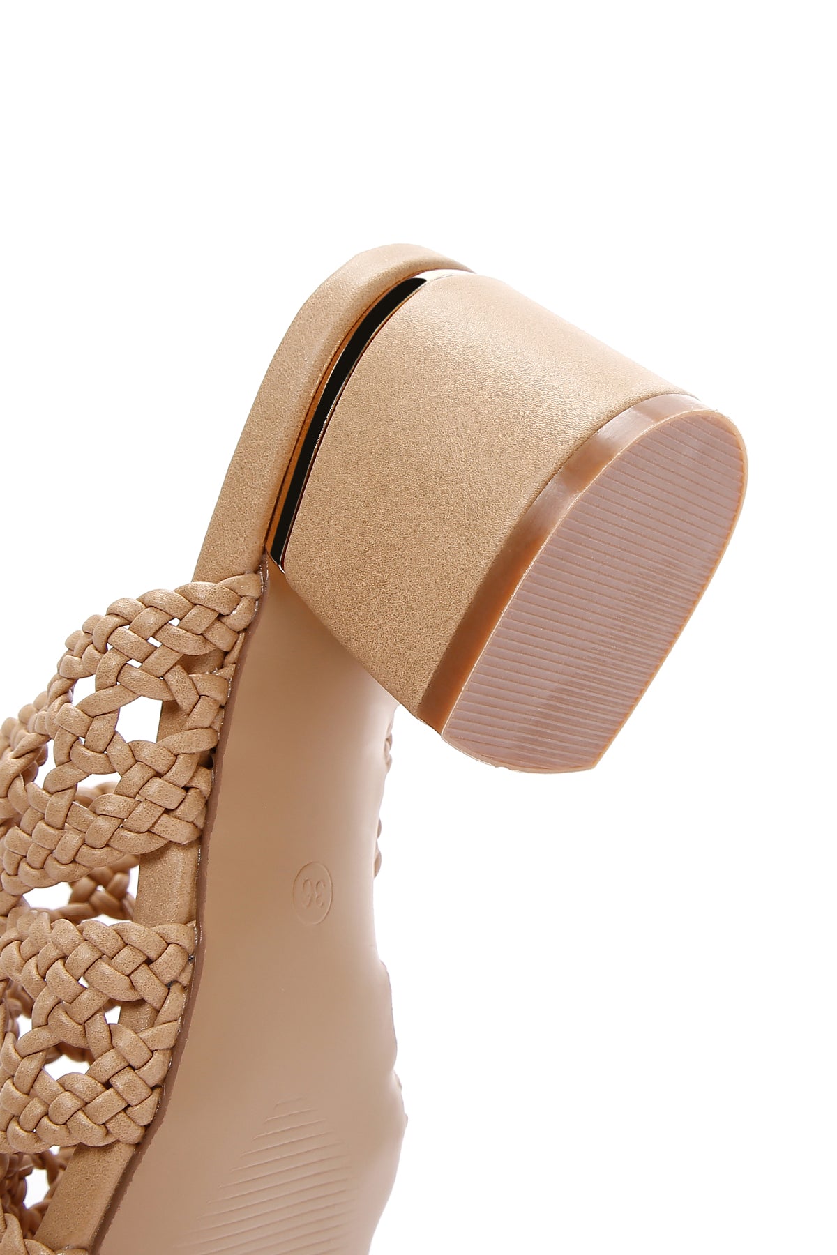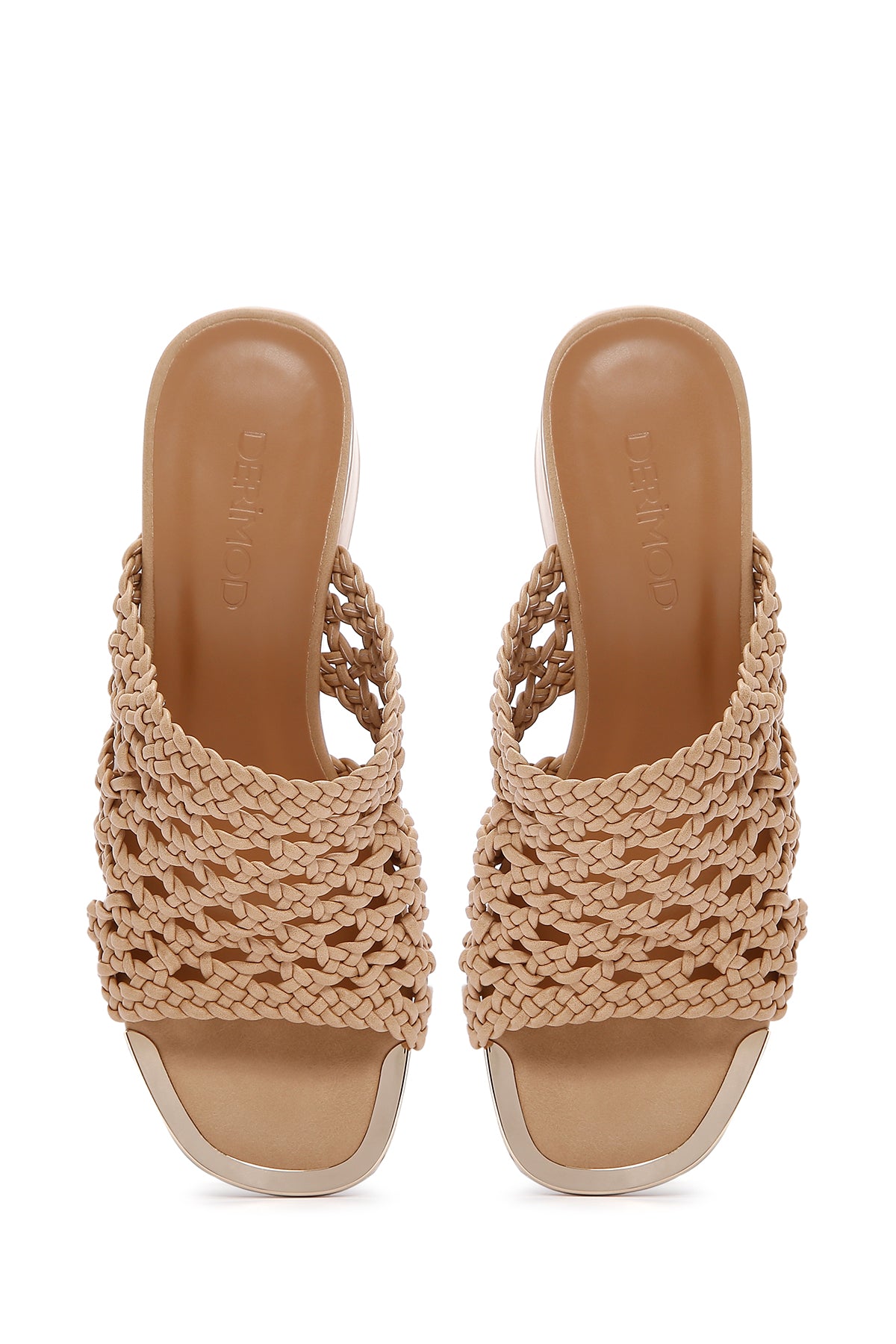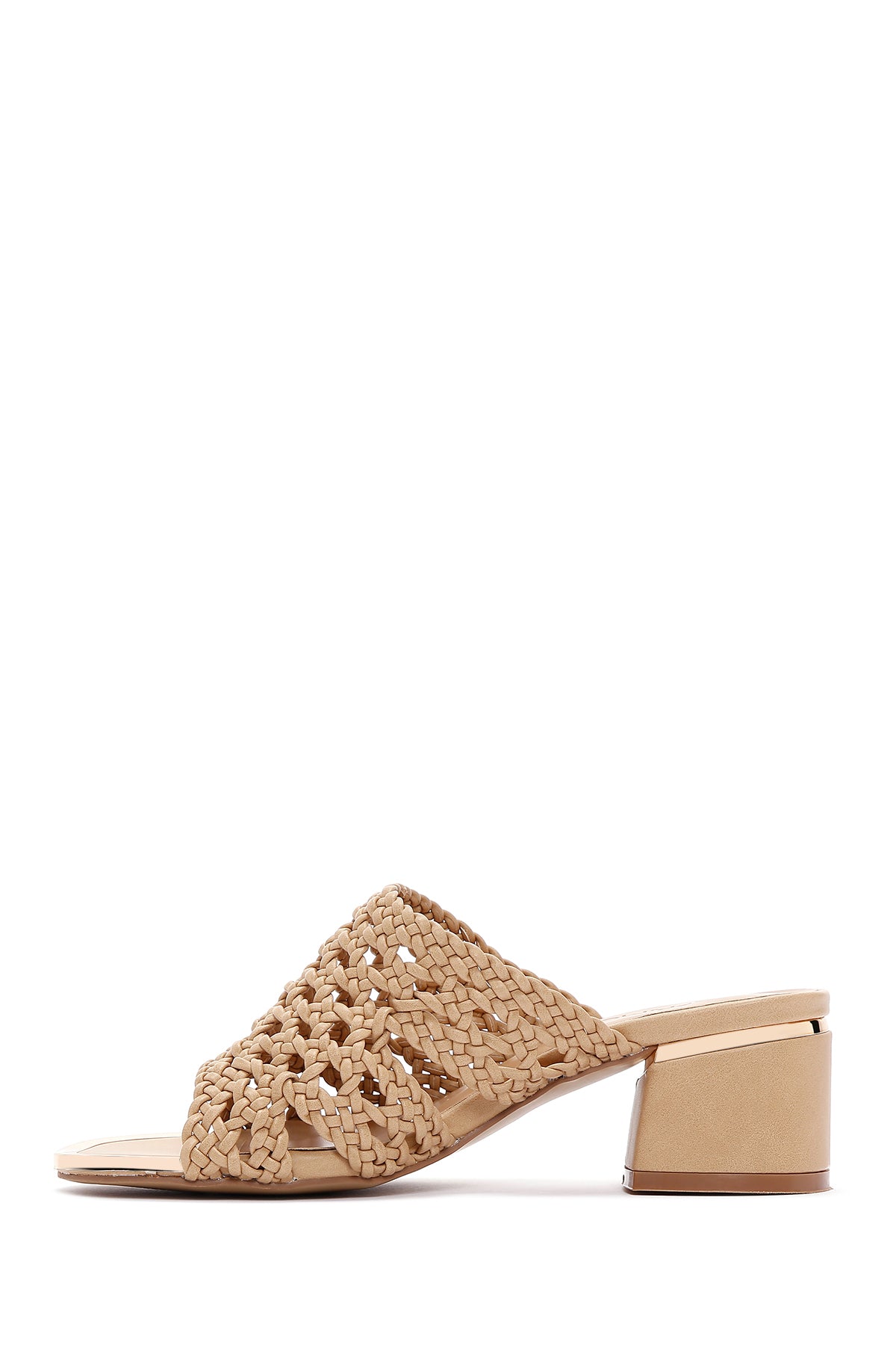 Kadın Bej Topuklu Örgü Desenli Terlik
