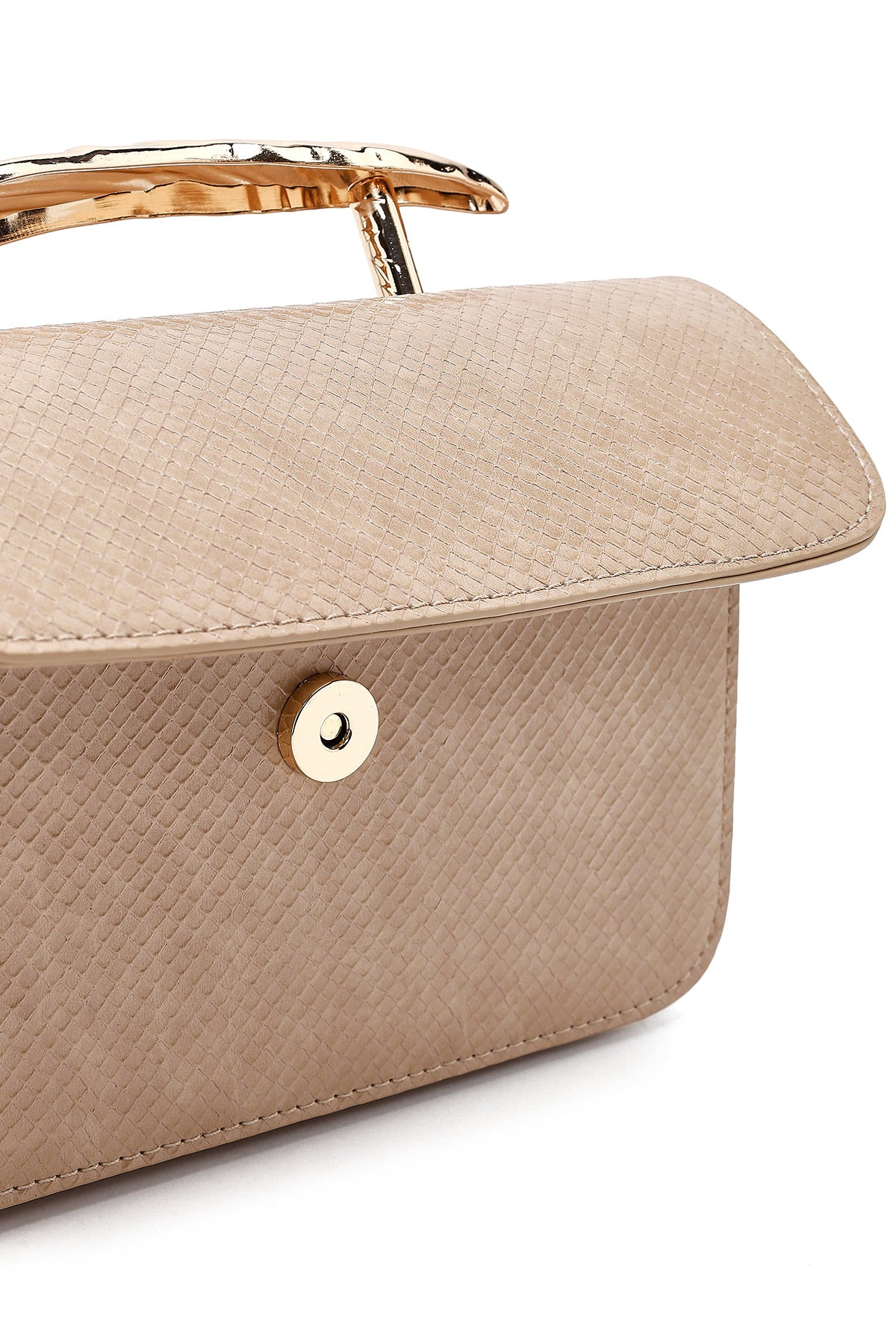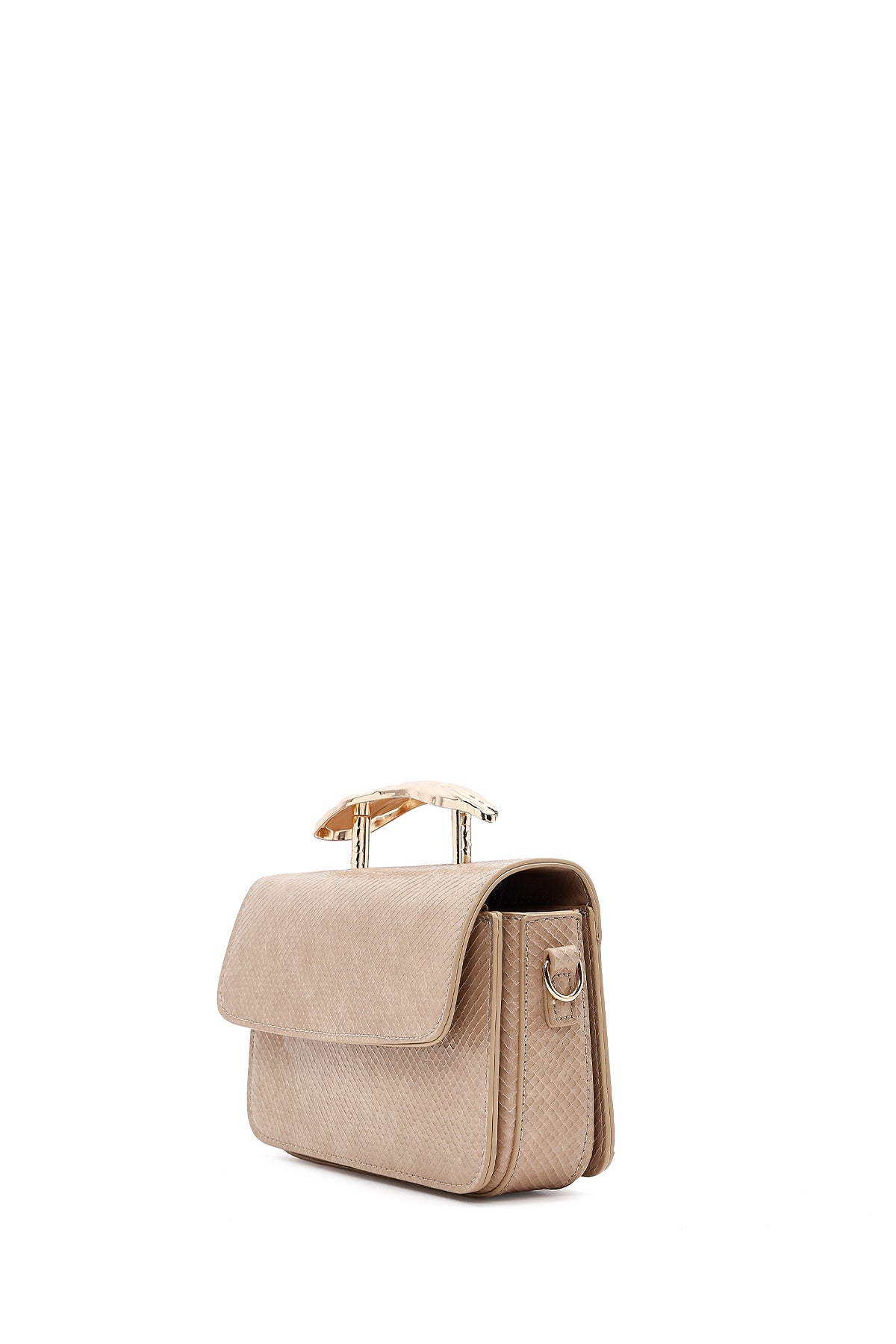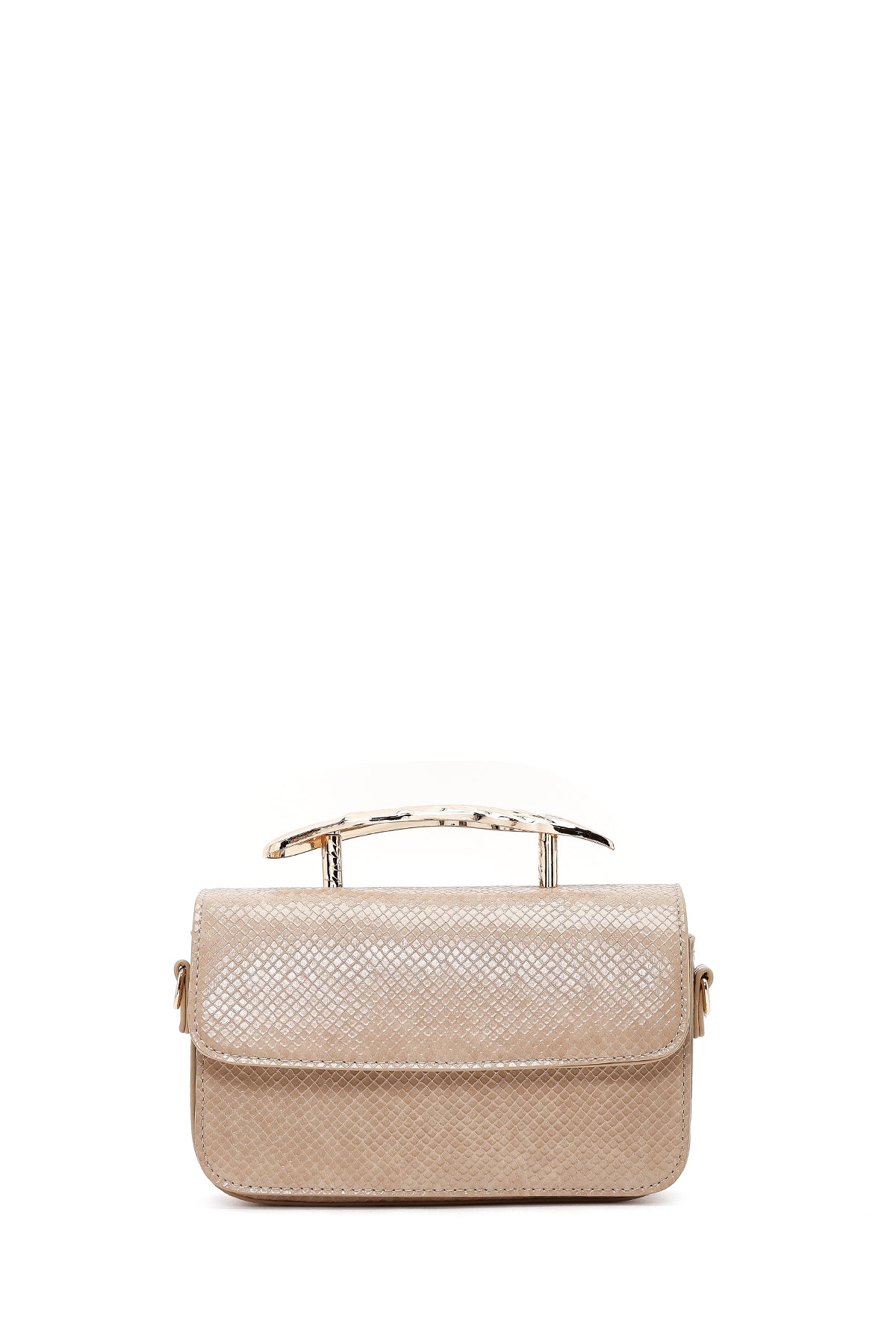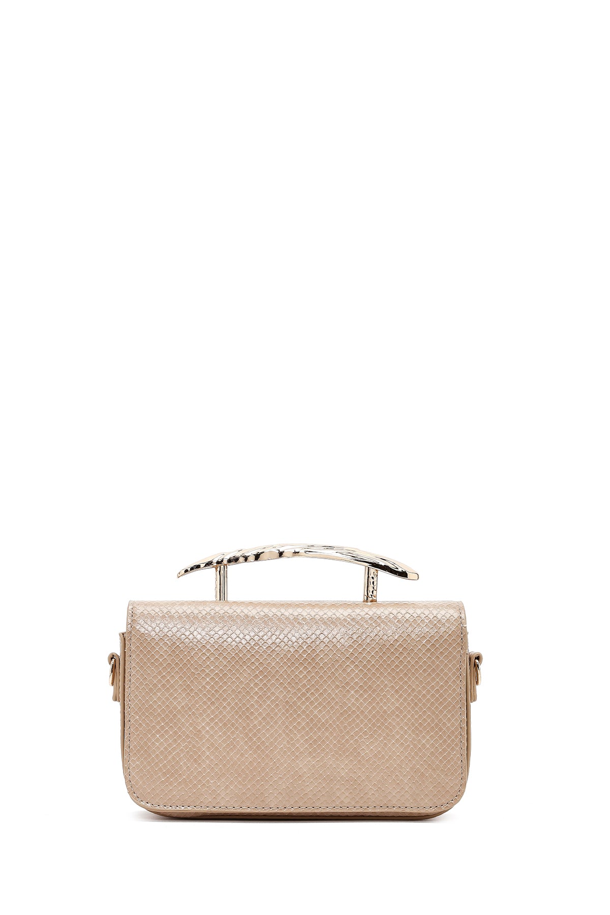 Kadın Bej Uzun Askılı Desenli Mini Kol Çantası