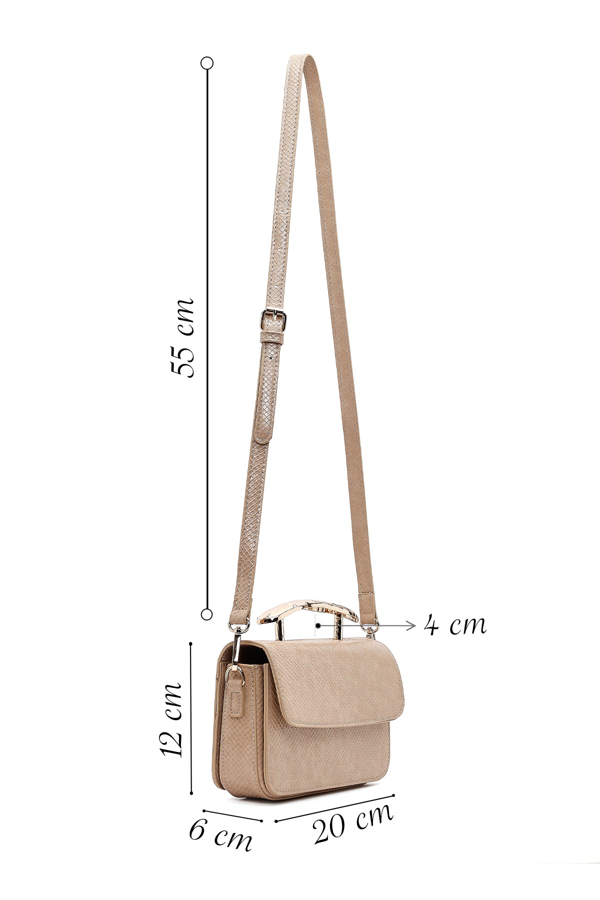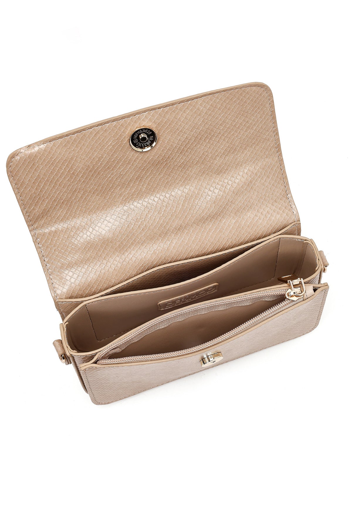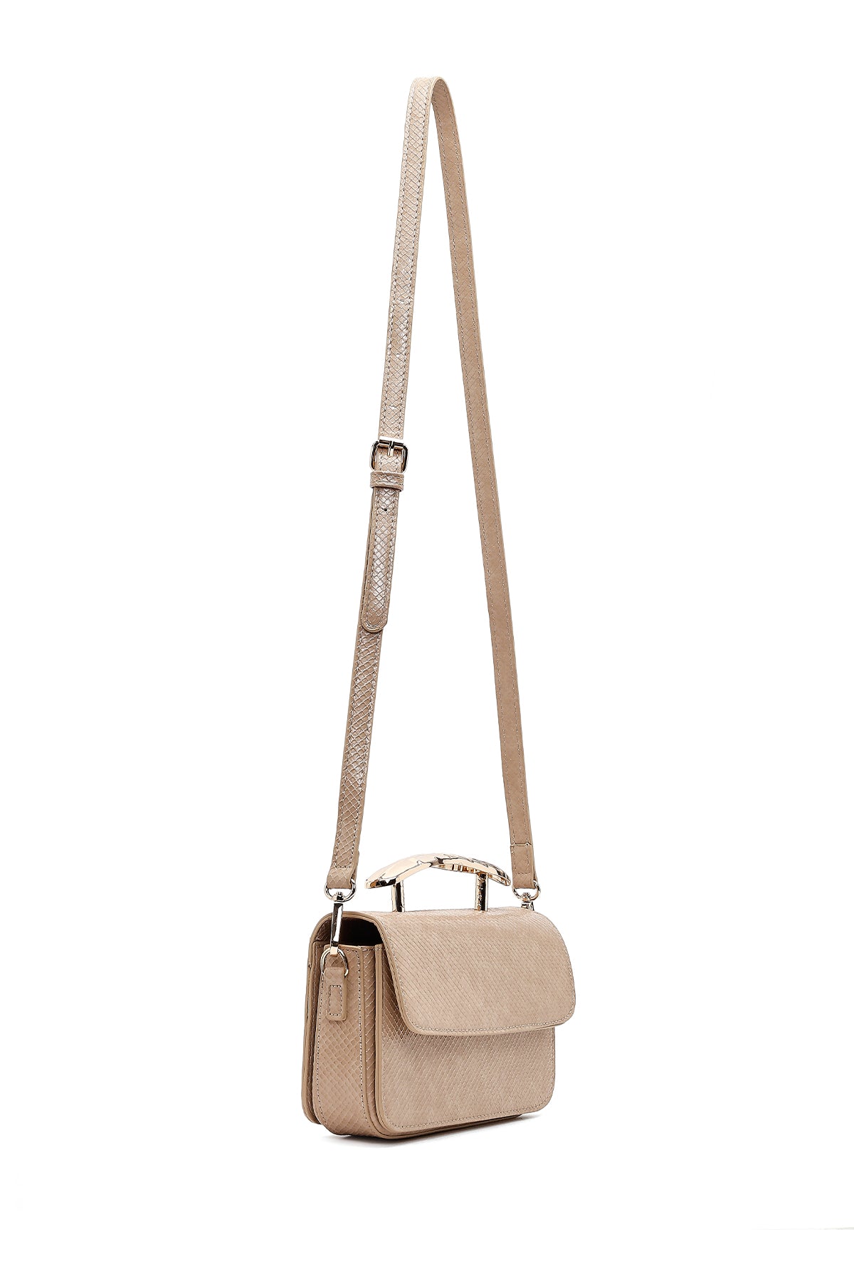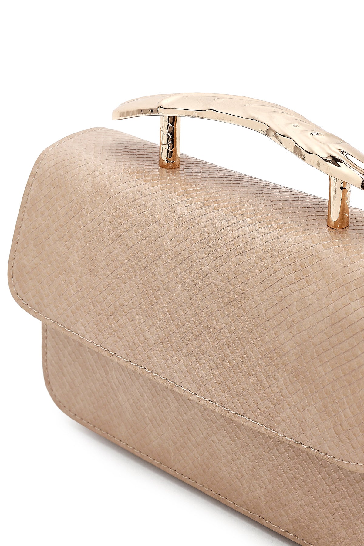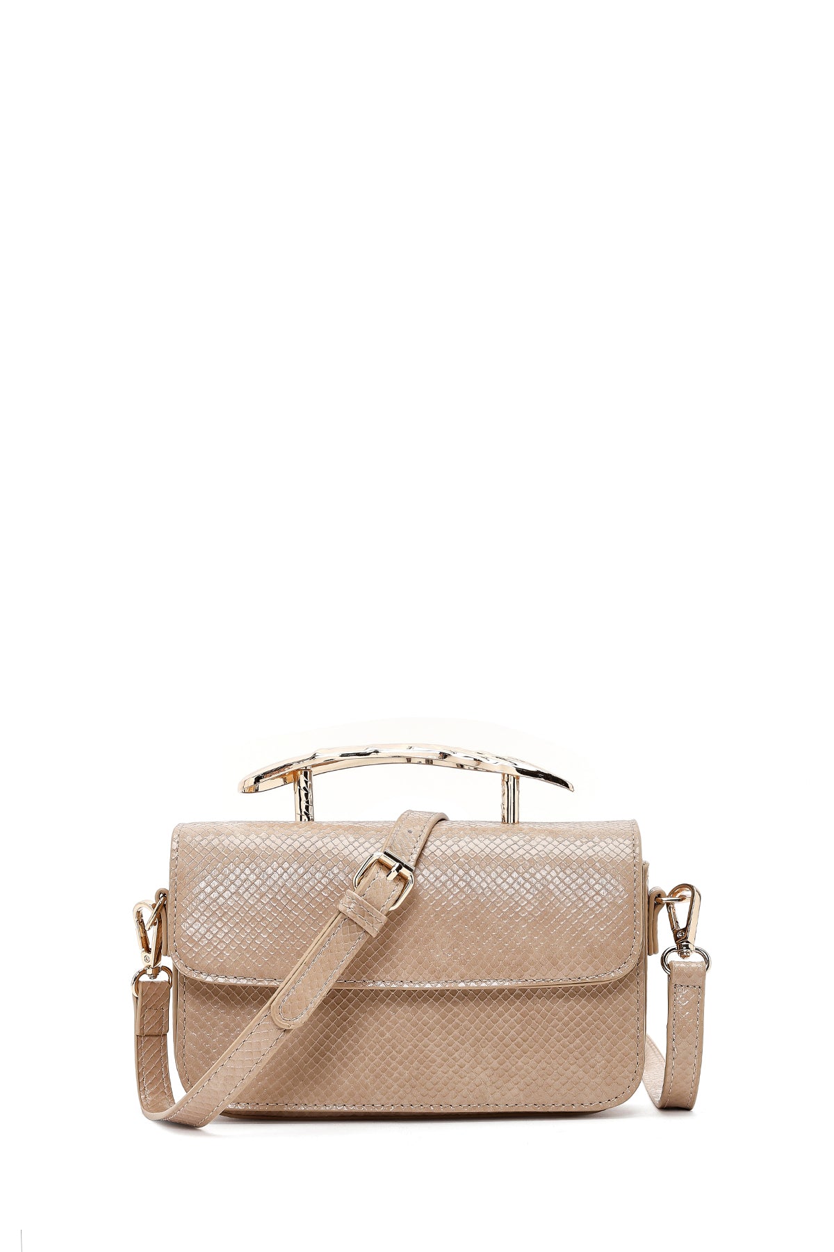 Kadın Bej Uzun Askılı Desenli Mini Kol Çantası