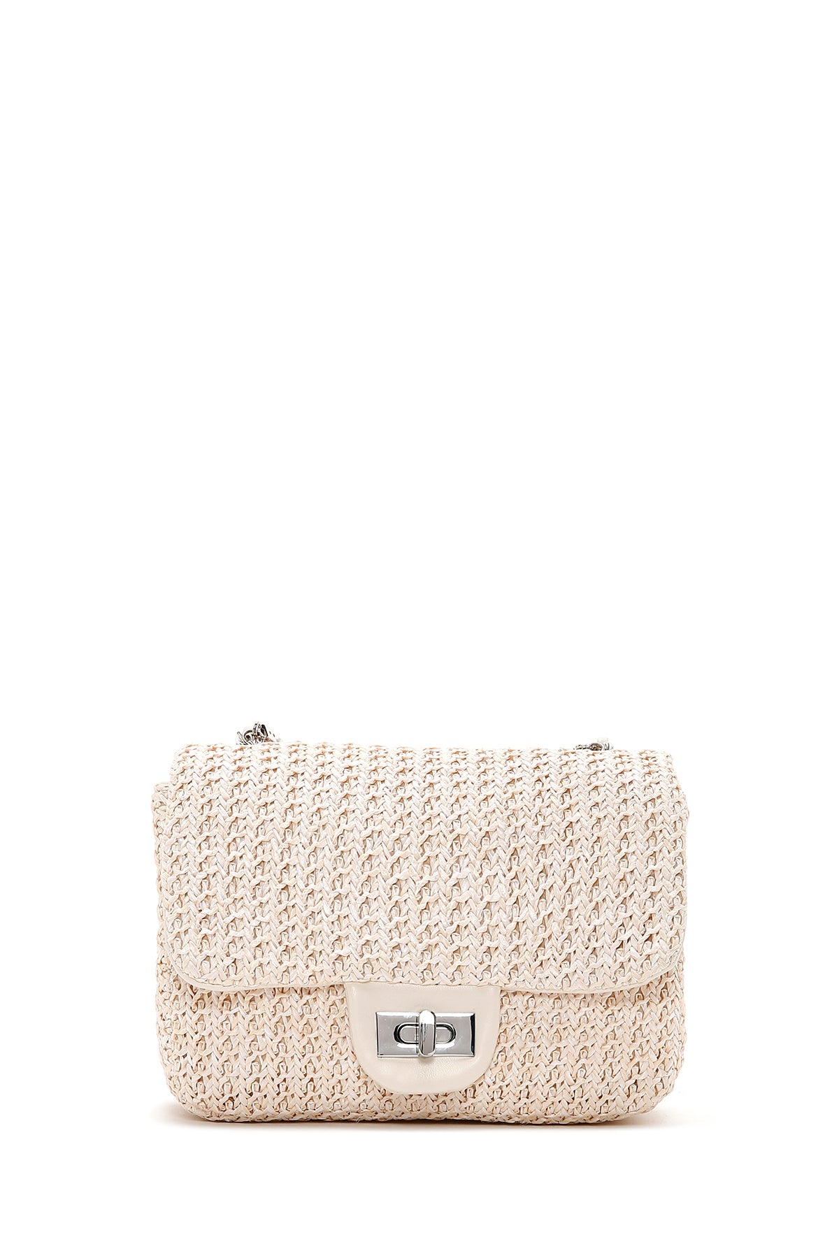 Kadın Bej Uzun Askılı Hasır Çapraz Çanta