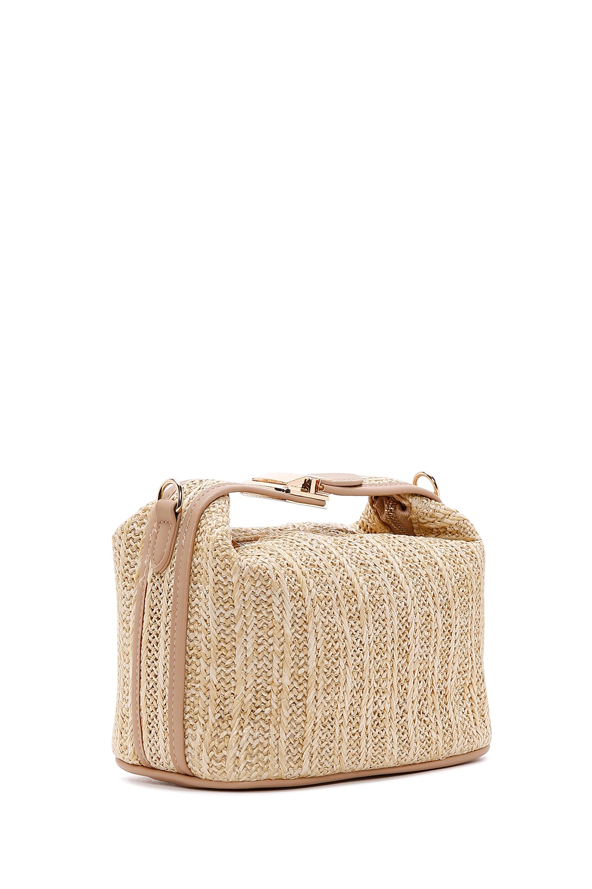 Kadın Bej Uzun Askılı Hasır Kol Çantası