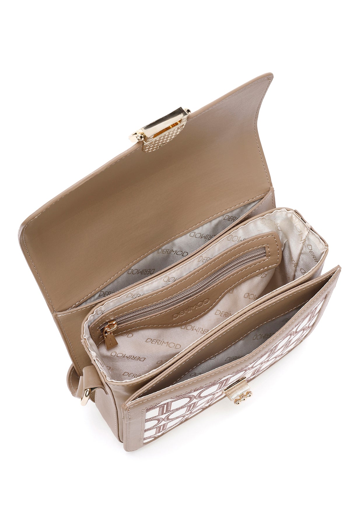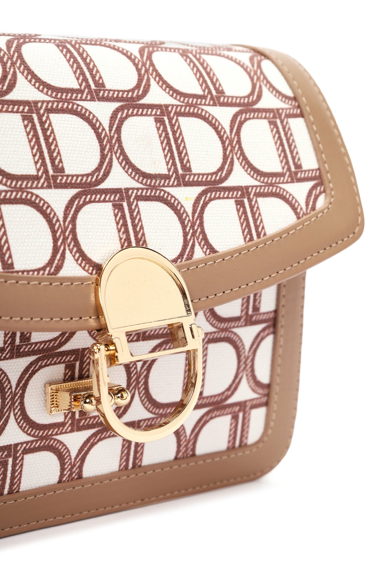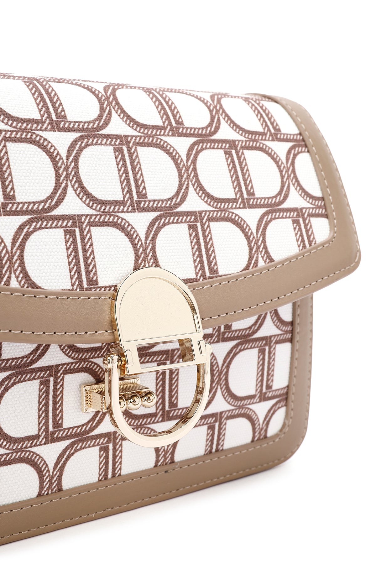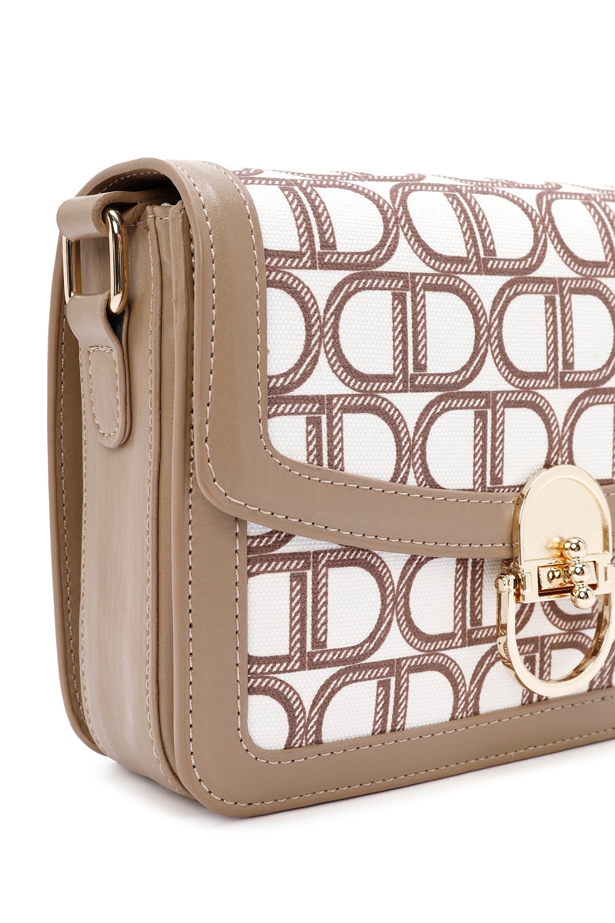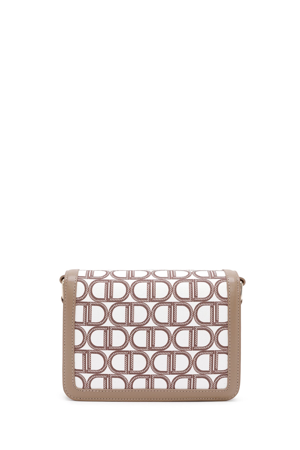 Kadın Bej Uzun Askılı Kumaş Monogram Desenli Çapraz Çanta