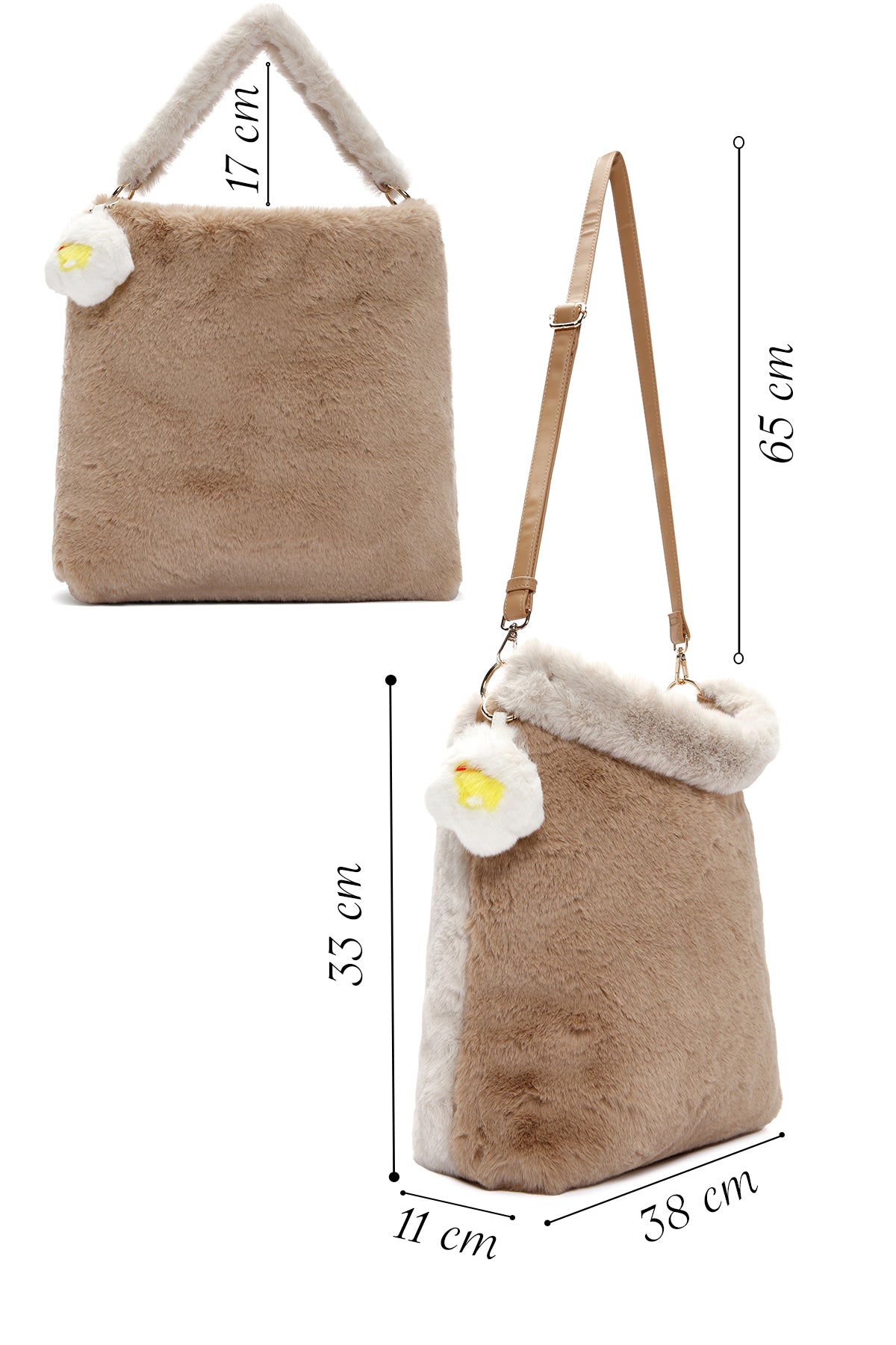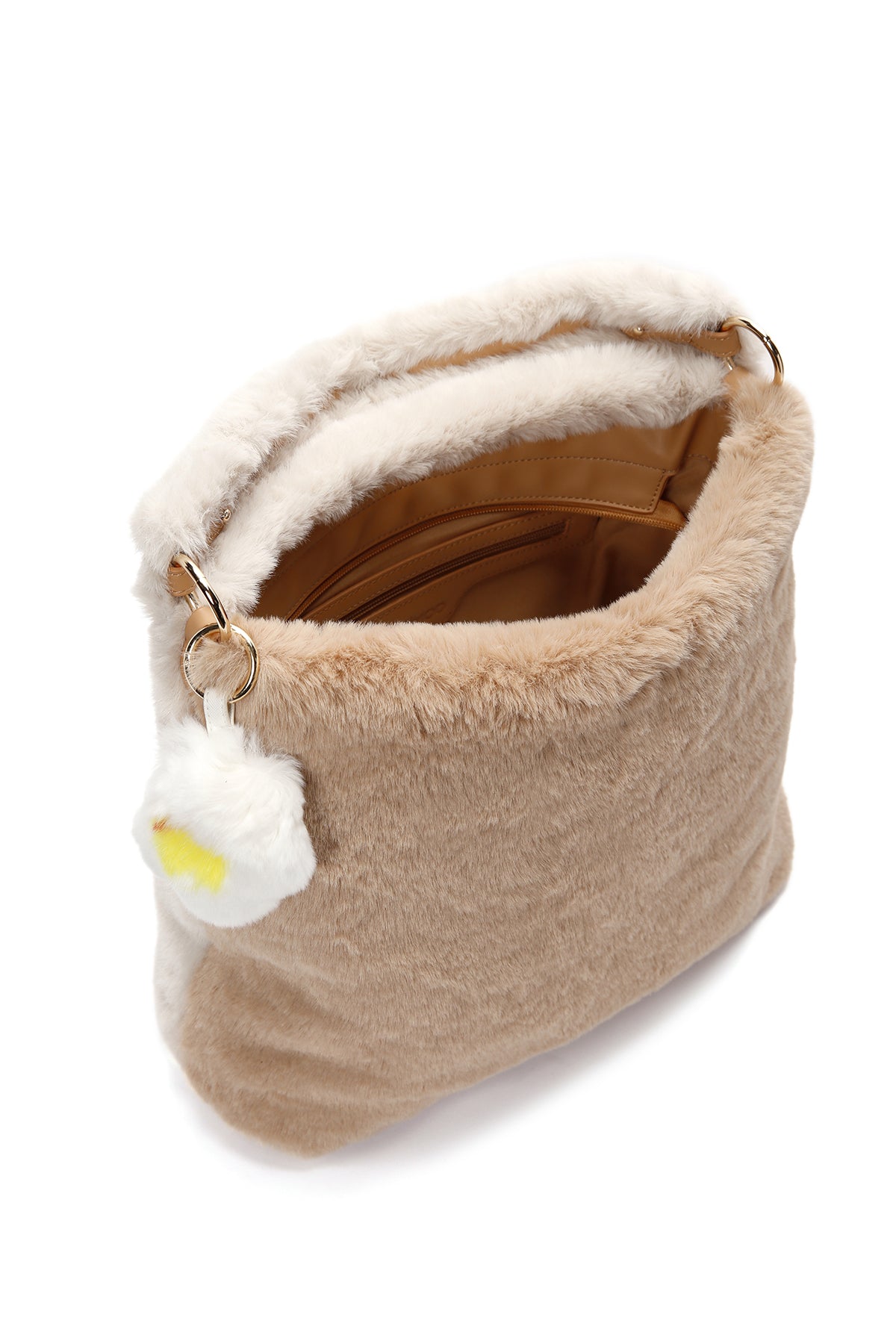 Kadın Bej Uzun Askılı Peluş Omuz Çantası