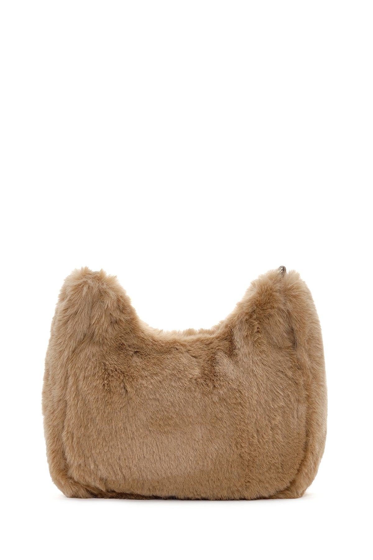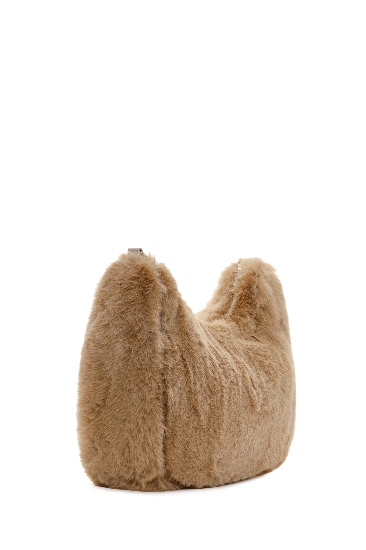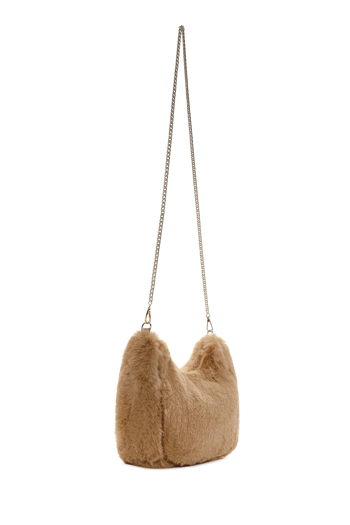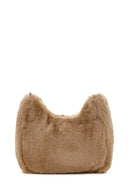 Kadın Bej Uzun Askılı Peluş Omuz Çantası