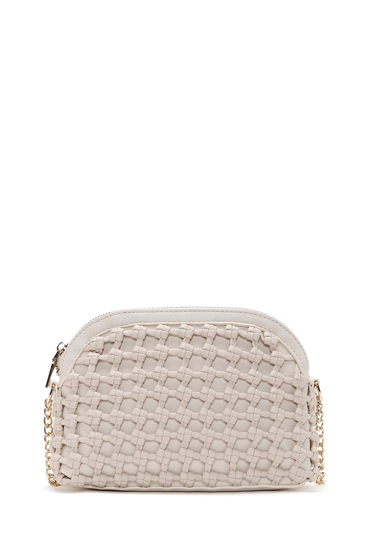 Kadın Bej Uzun Zincir Askılı Örgü Çapraz Çanta