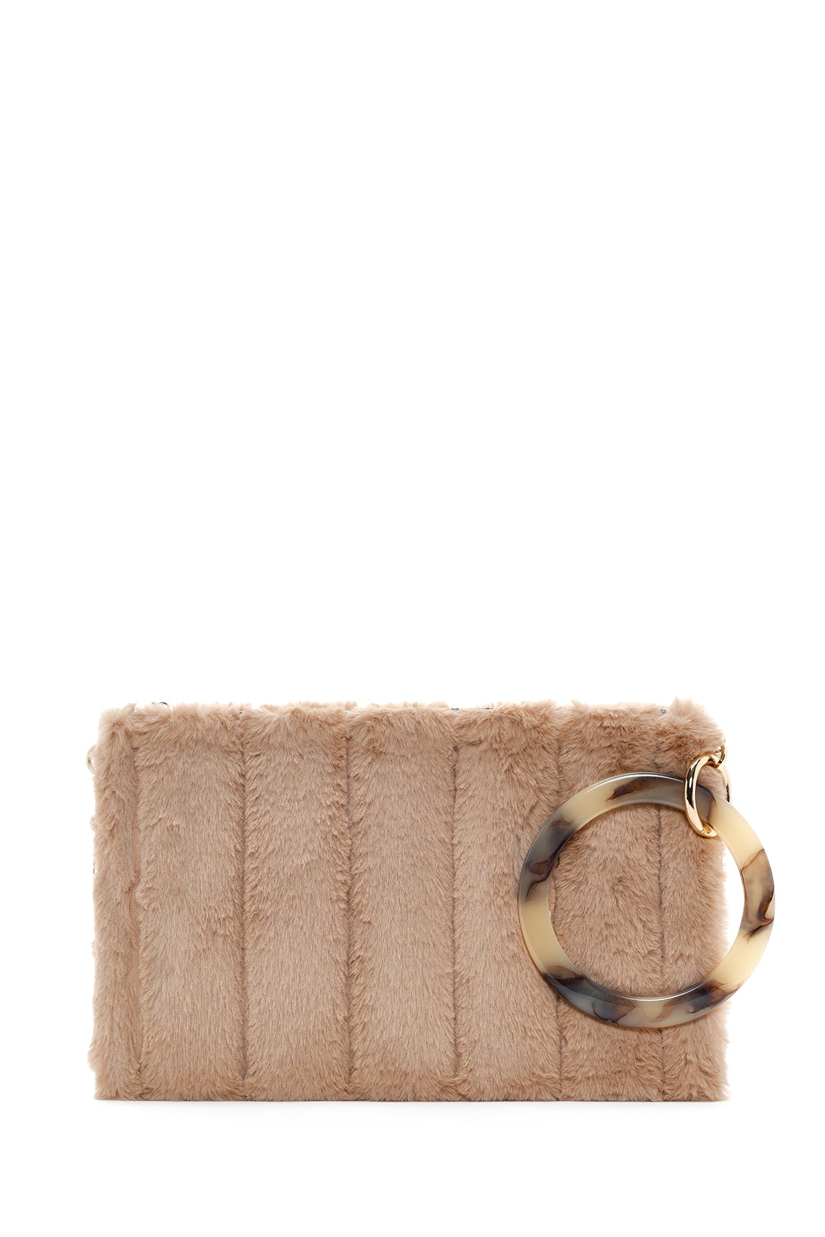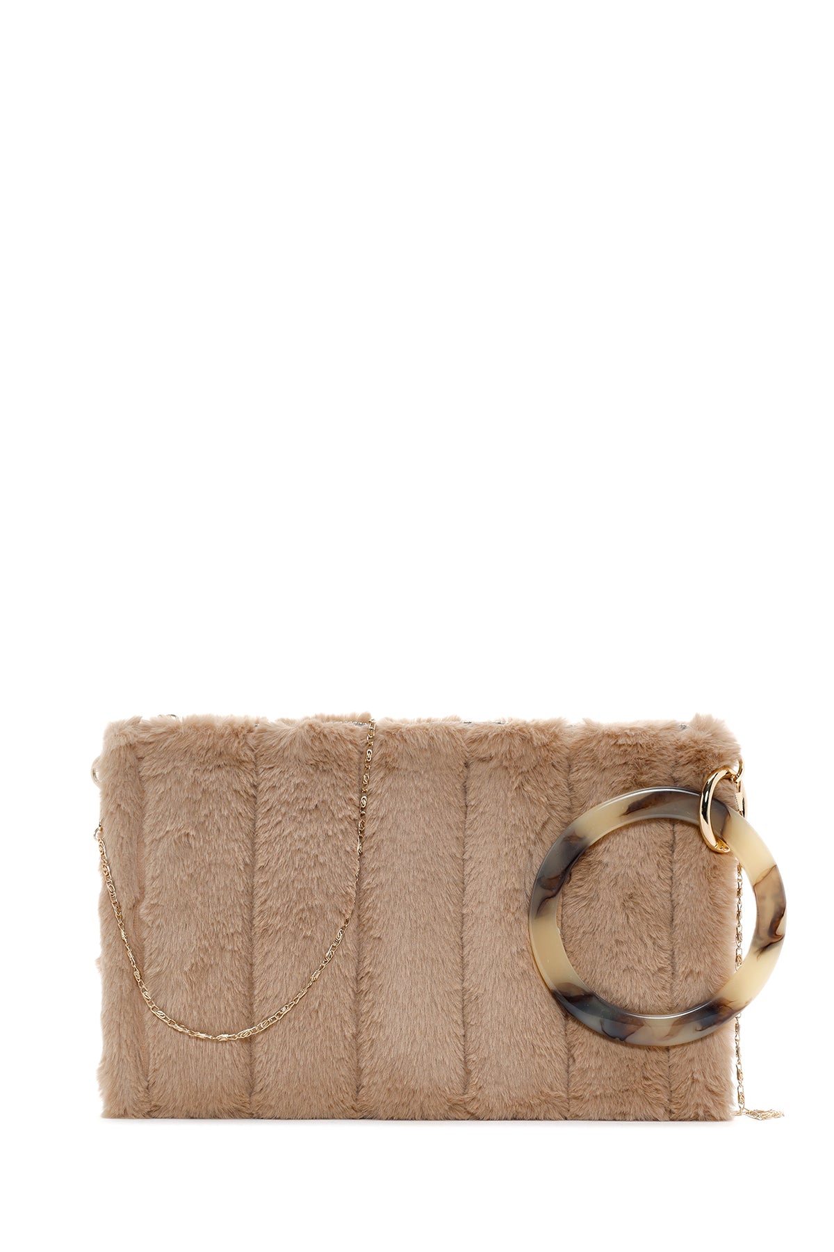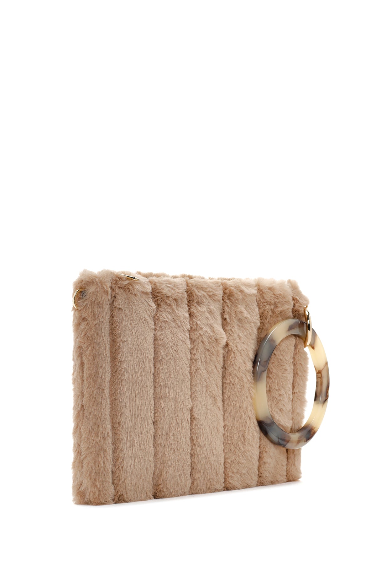 Kadın Bej Uzun Zincir Askılı Peluş Portföy Çanta
