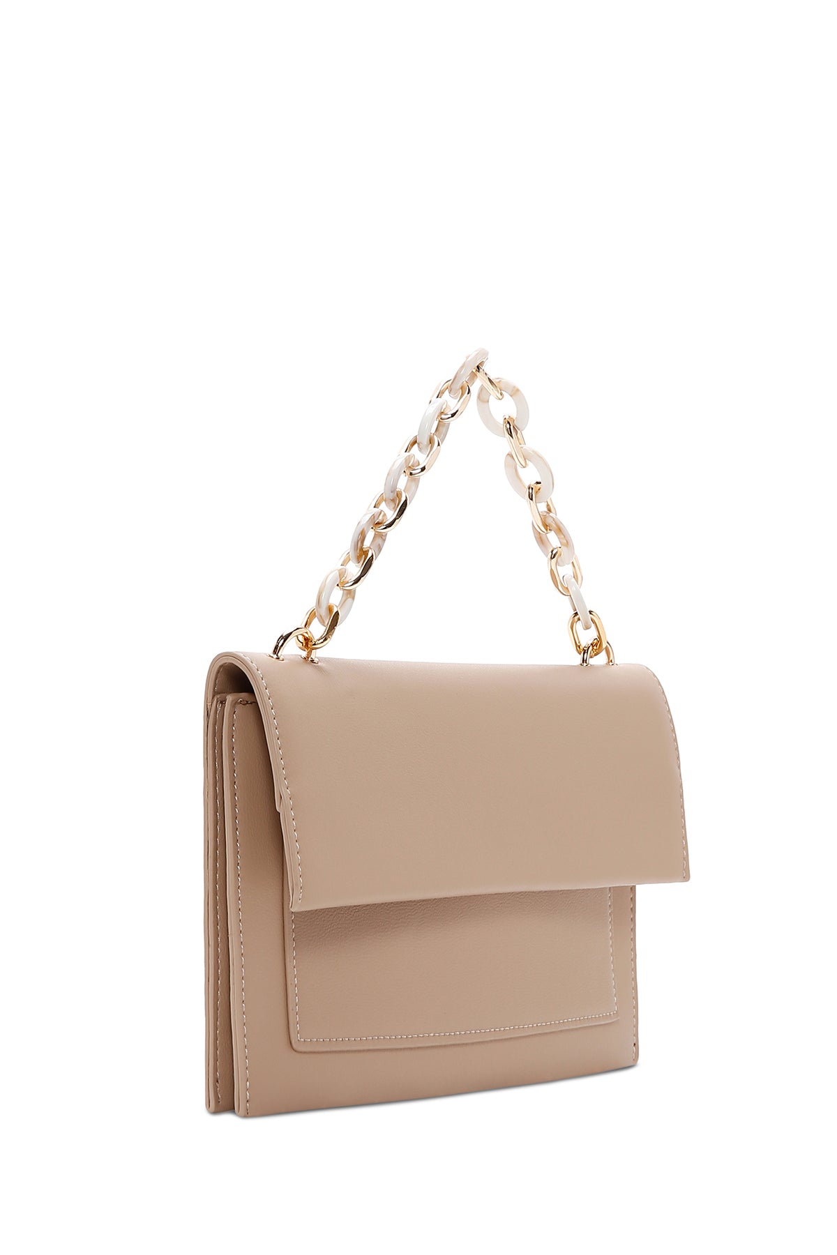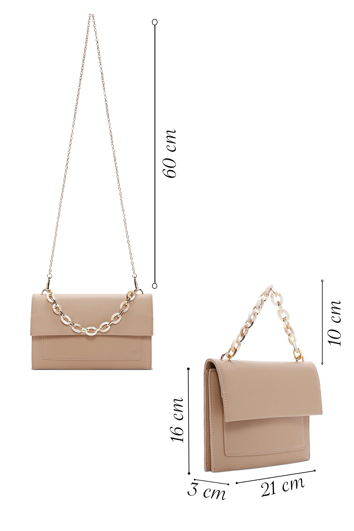 Kadın Bej Uzun Zincir Askılı Portföy Çanta