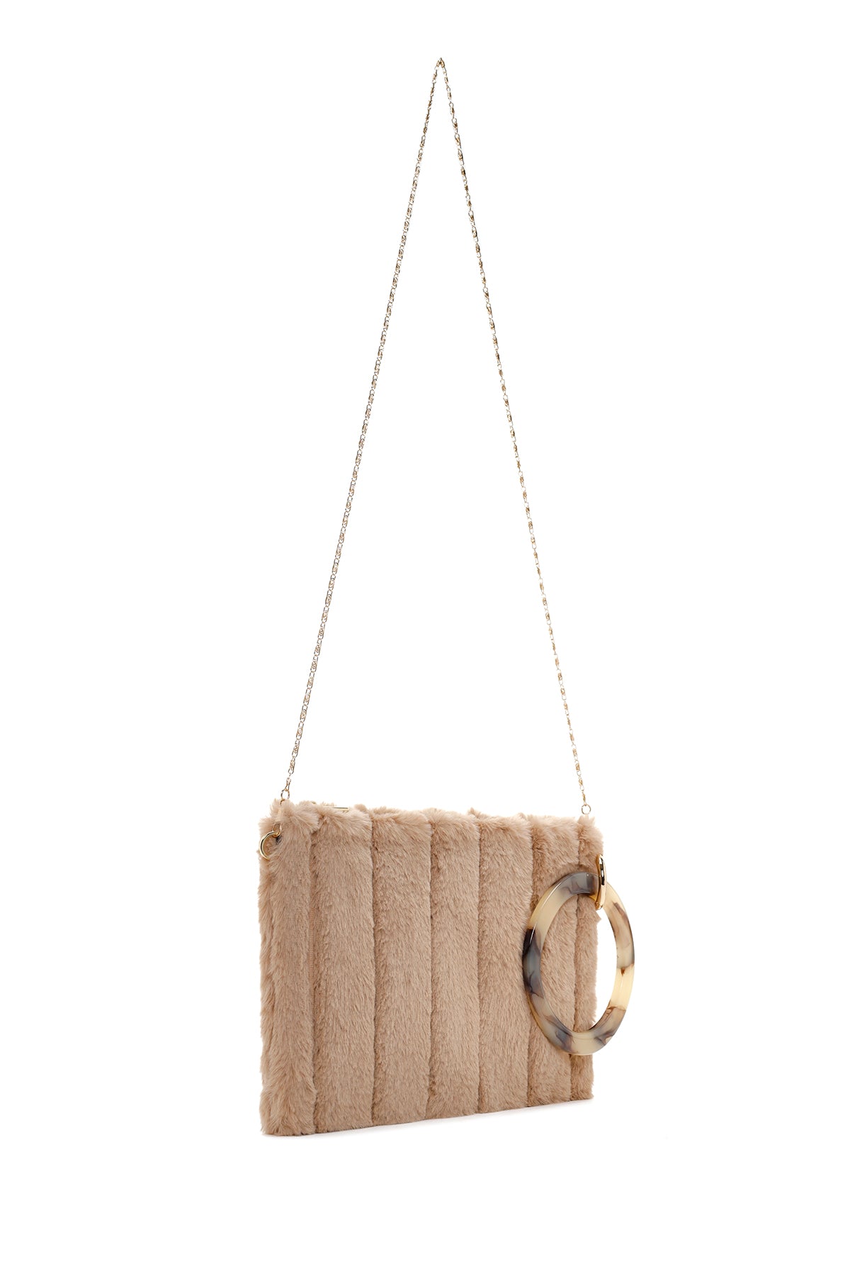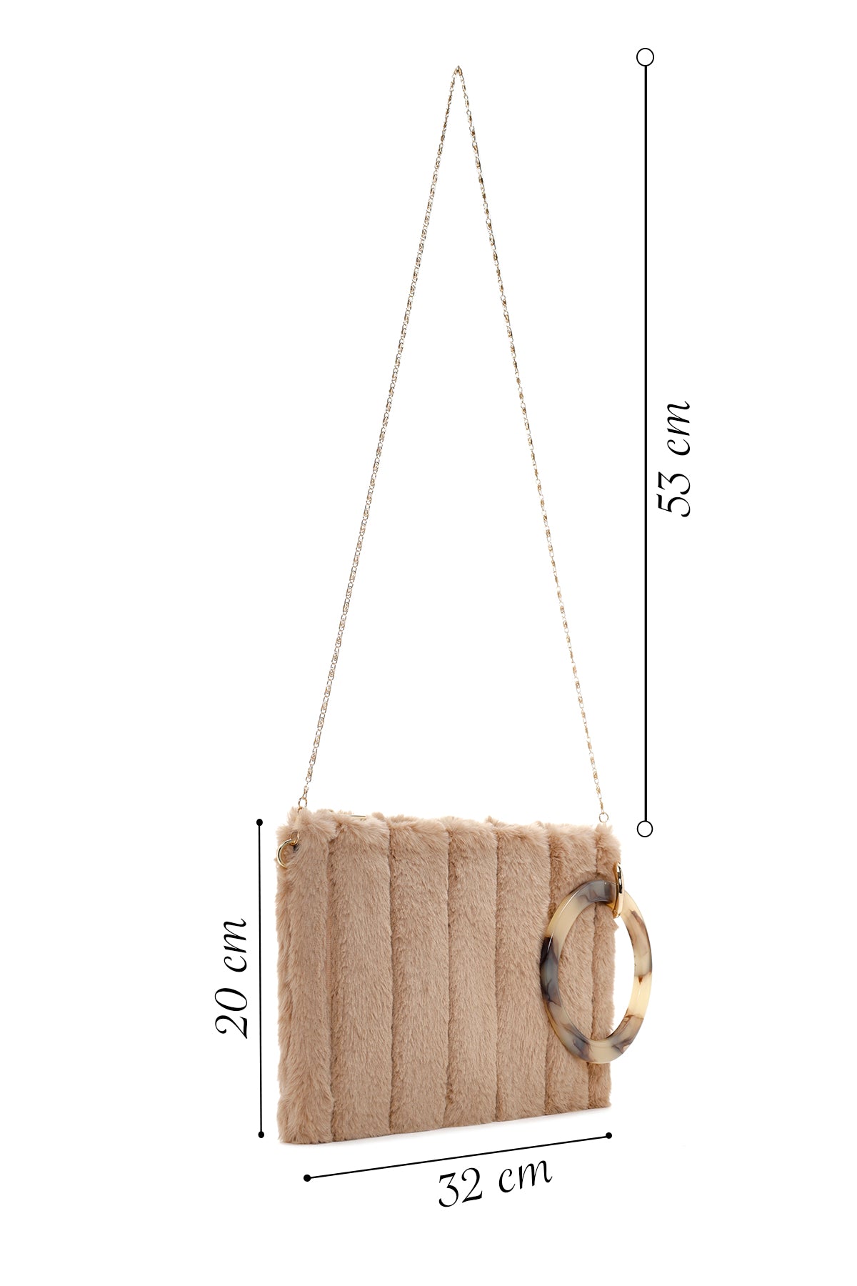 Kadın Bej Zincir Askılı Peluş Portföy Çanta
