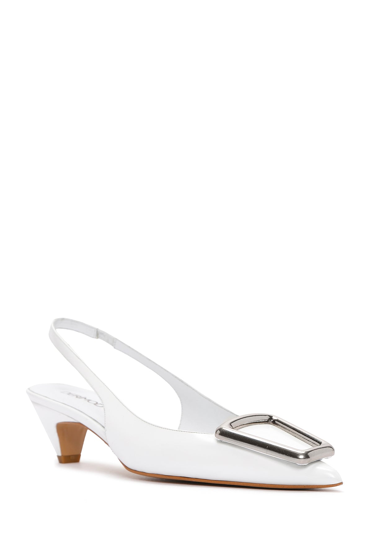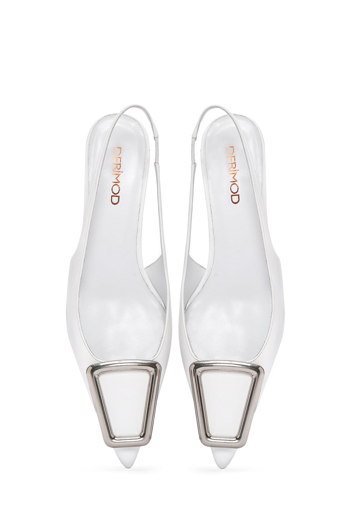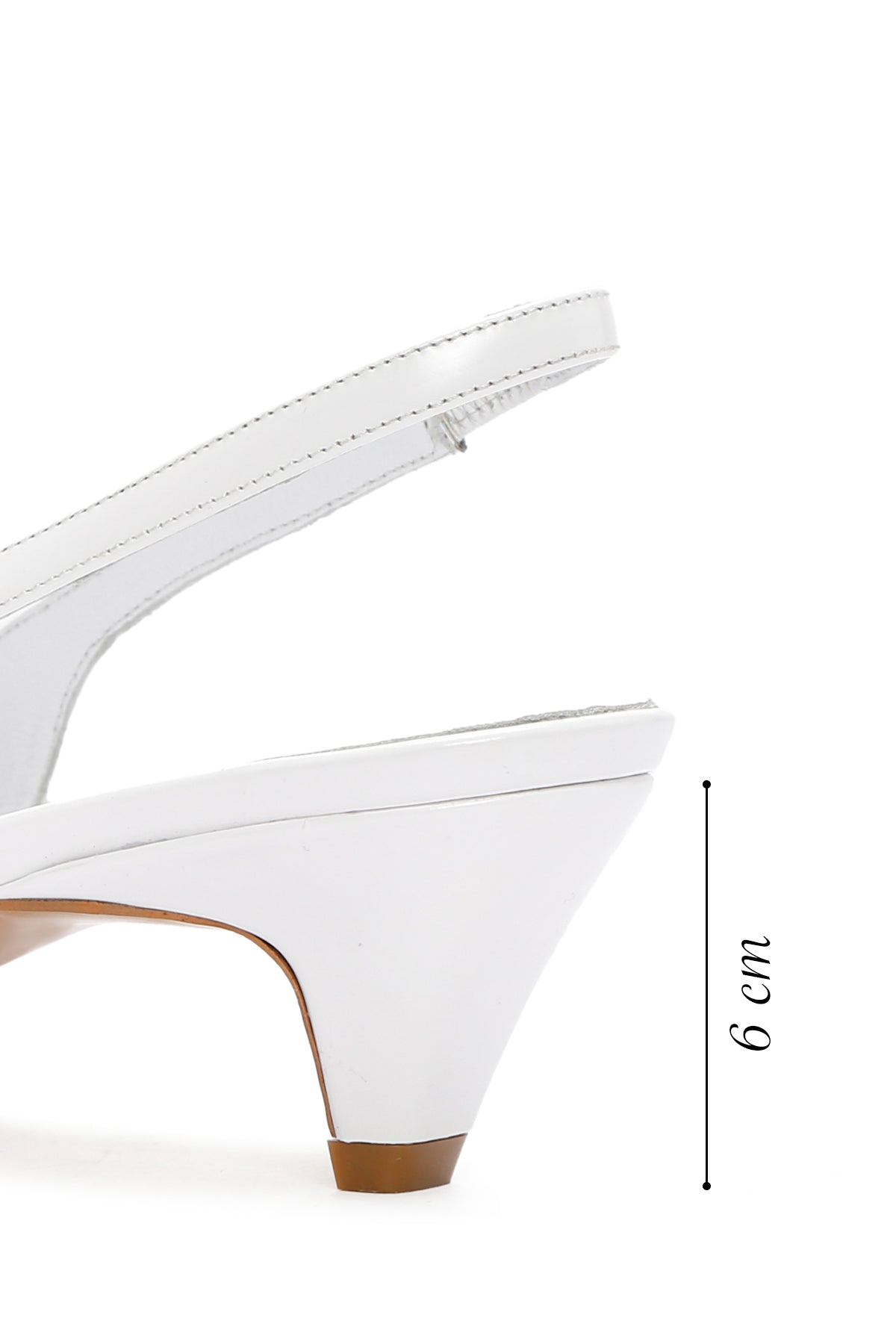 Kadın Beyaz Arkası Açık Kısa Topuklu Deri Stiletto