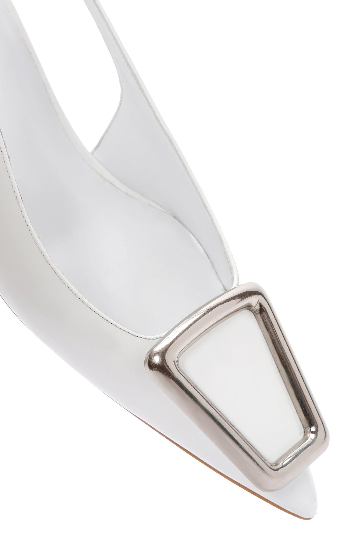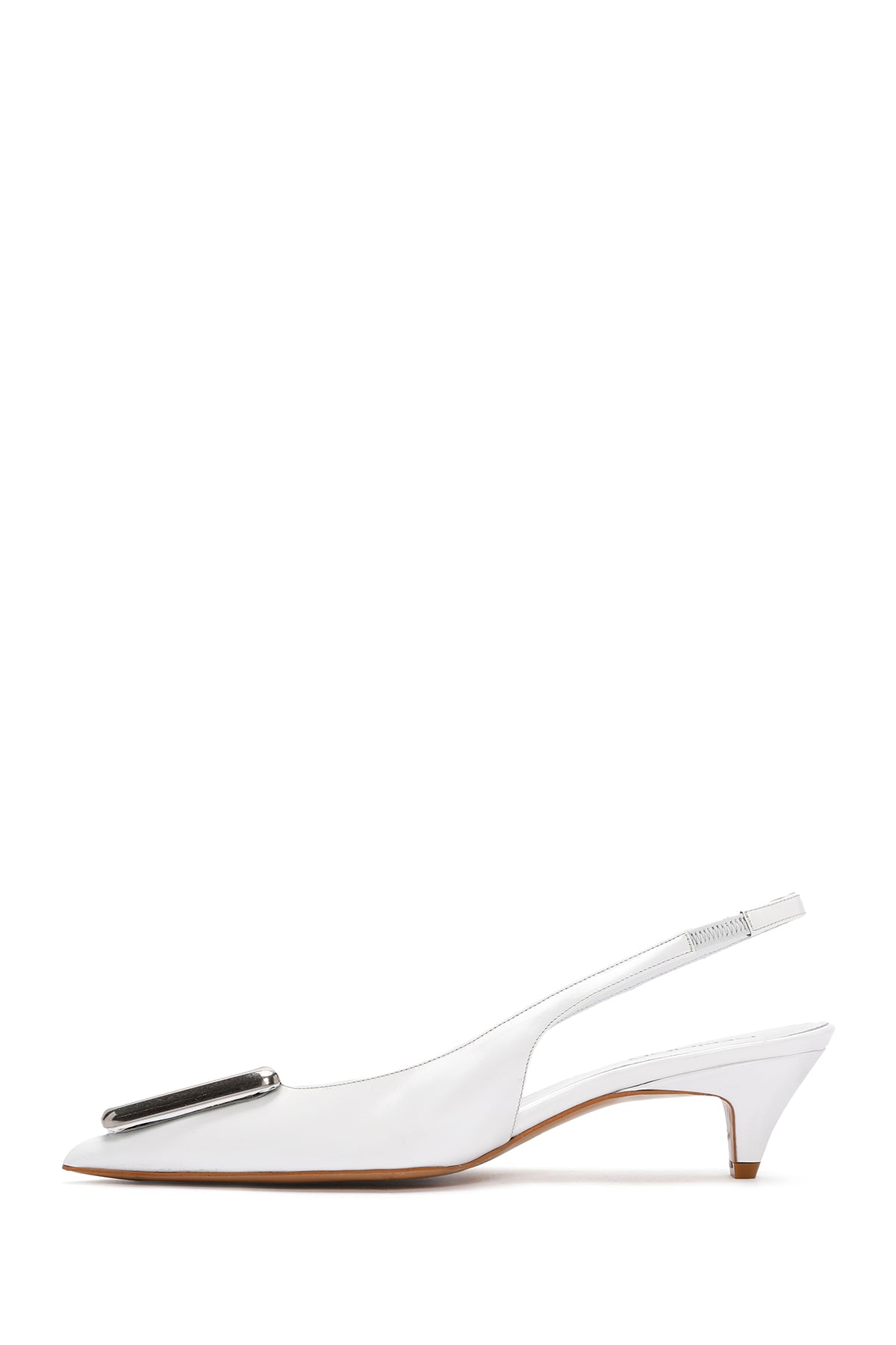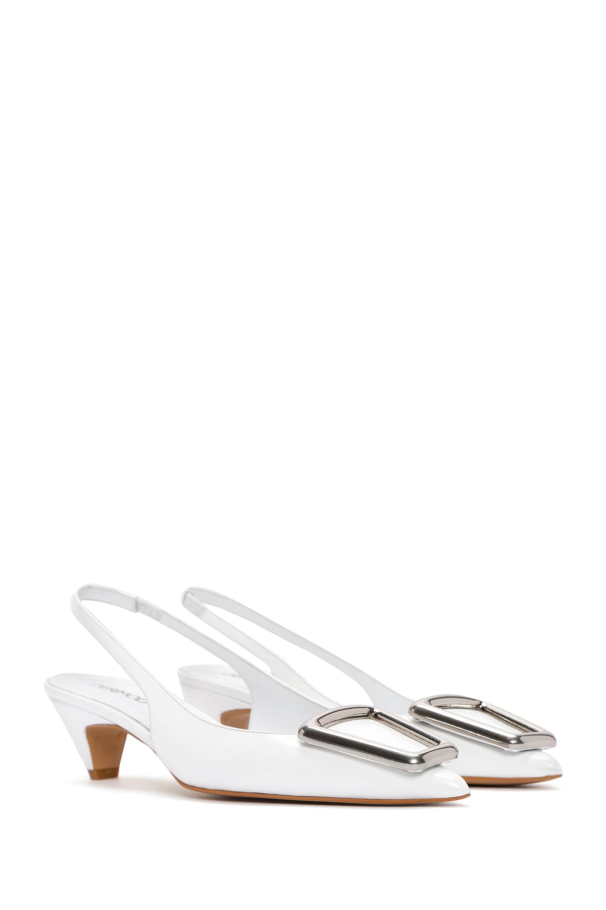 Kadın Beyaz Arkası Açık Kısa Topuklu Deri Stiletto