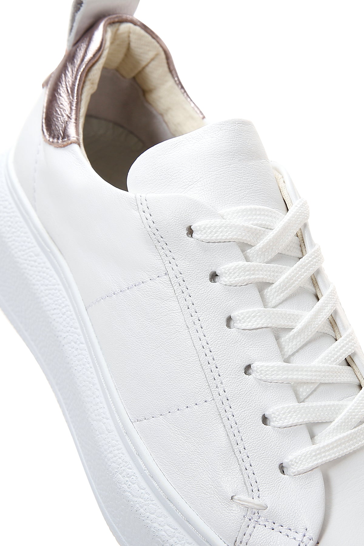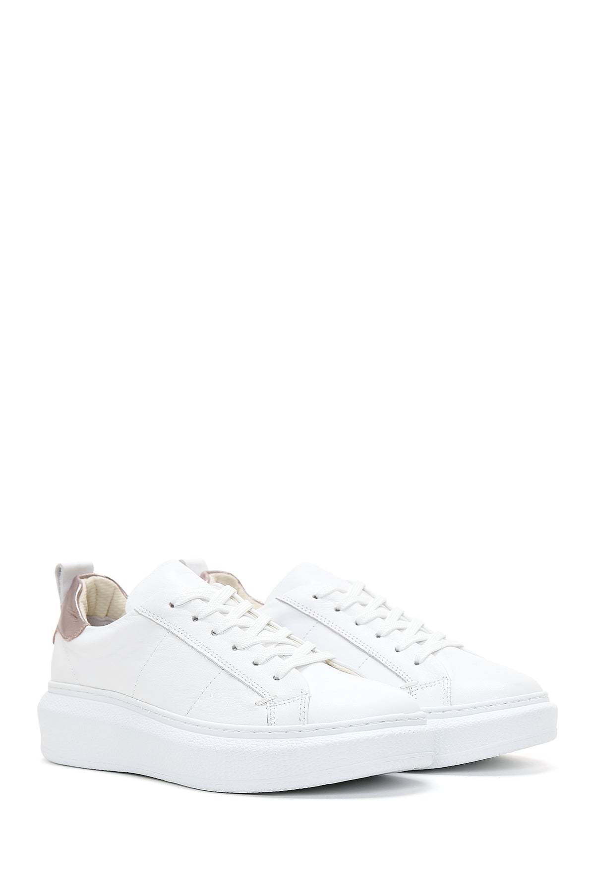 Kadın Beyaz Bağcıklı Deri Sneaker