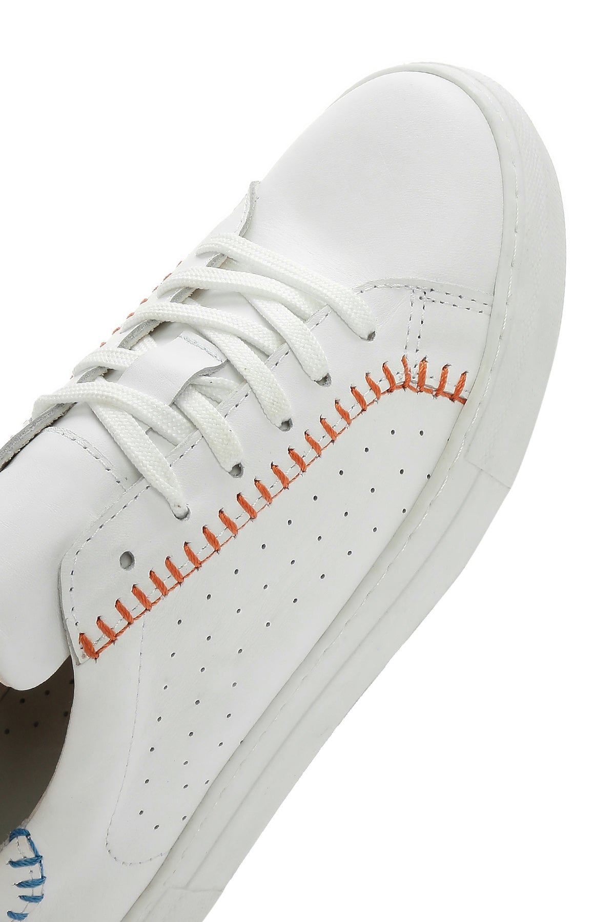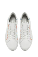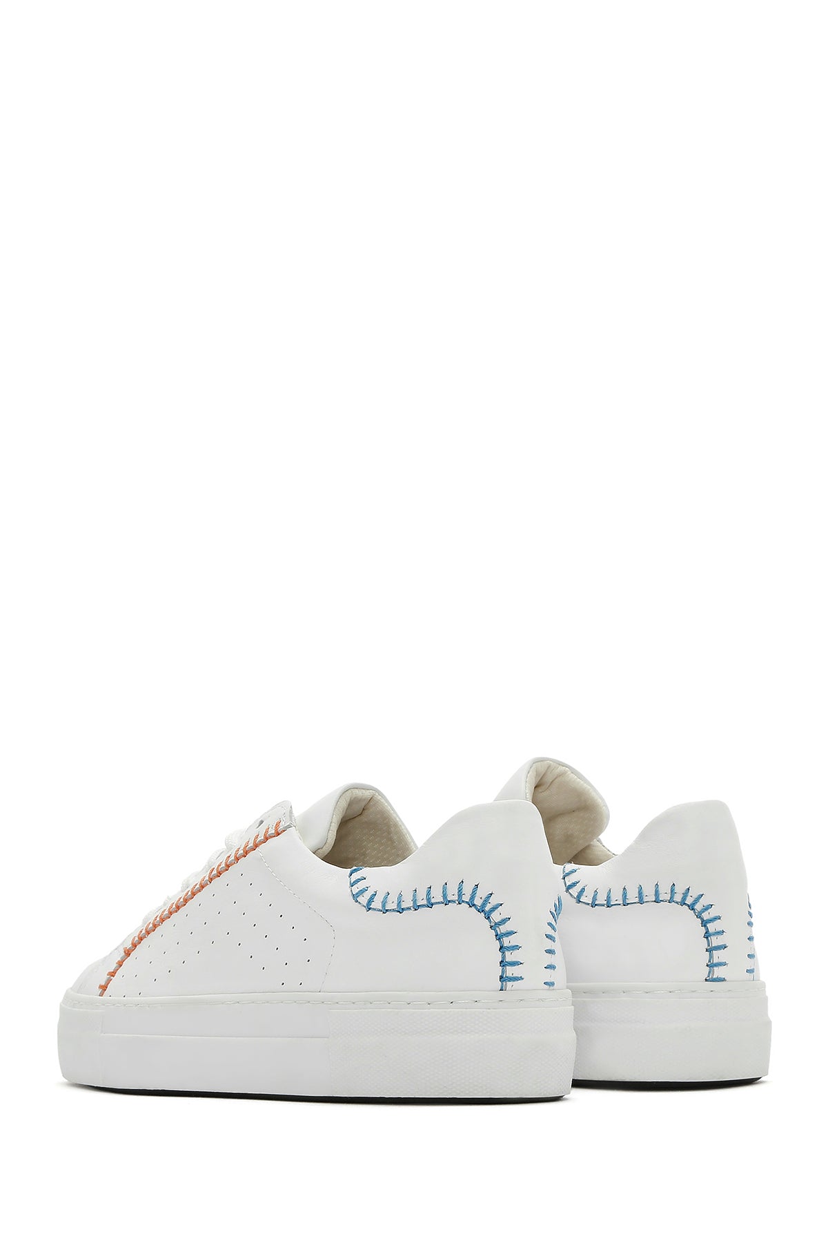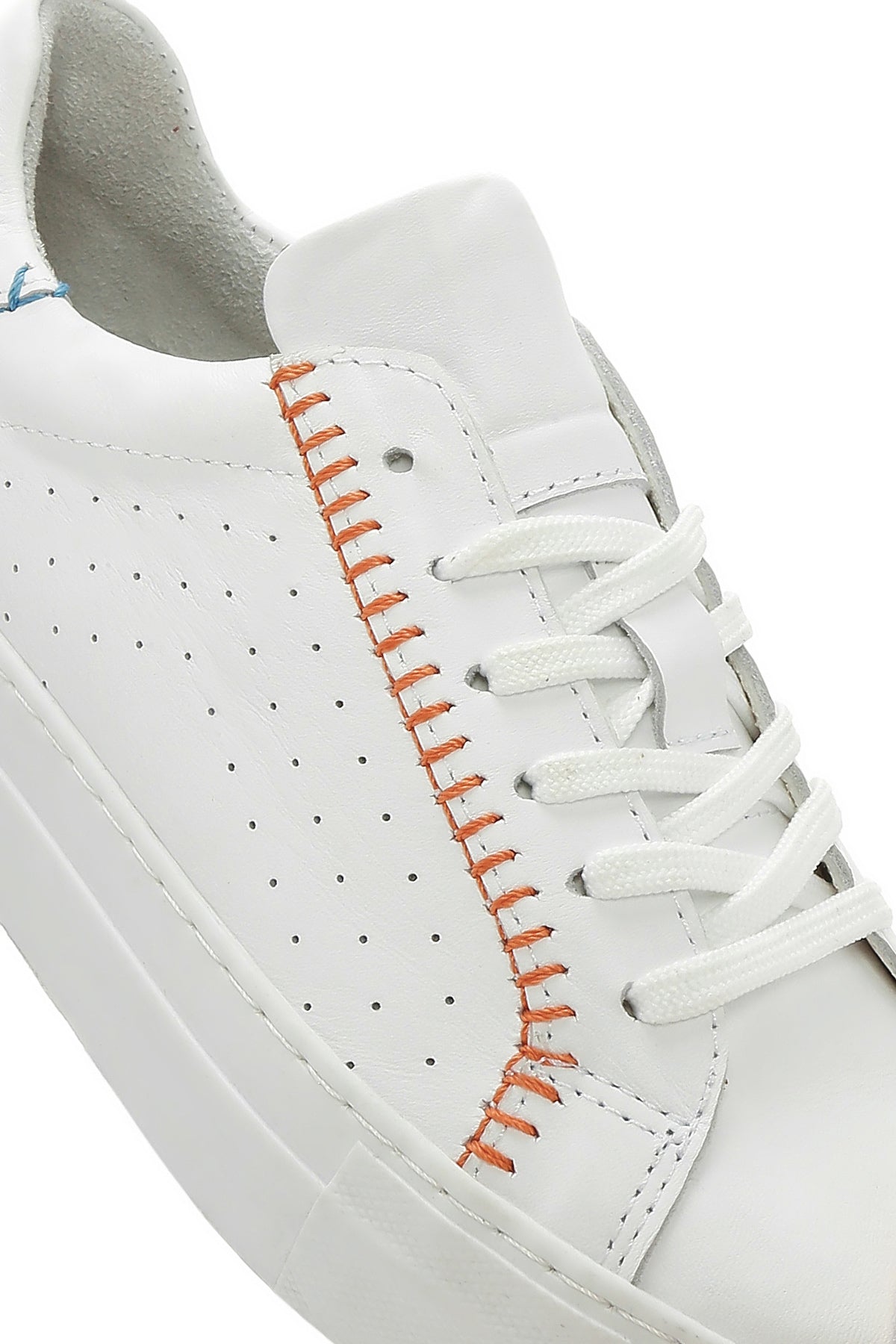 Derimod'un yaz koleksiyonundan, vidala deri ile üretilen beyaz sneaker modeli, 2,5 cm yüksekliğindeki tabanı ile günlük kullanıma uygun bir tasarım sunuyor. Turuncu dikiş detayları ve yanlardaki delikli desenleriyle beyzbol temalı bir görünüm sergileyen model, %80 kumaş ve %20 deri karışımlı iç astarı sayesinde ayağınızı rahat ettiriyor. Bağcıklı yapısı ile ayağa tam oturan sneaker, jean'lerden spor takımlara, günlük elbiselerden casual kombinlere kadar geniş bir kullanım alanı sunuyor. İlkbahar ve yaz mevsimlerinde günün her saatinde kullanılabilir. Ürün kodu: 25SFD371218