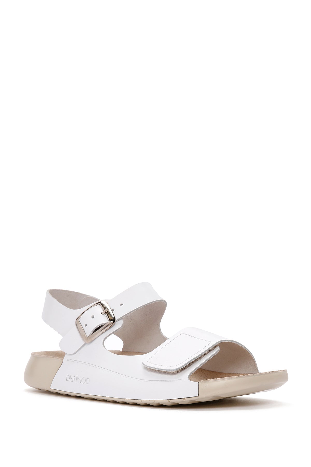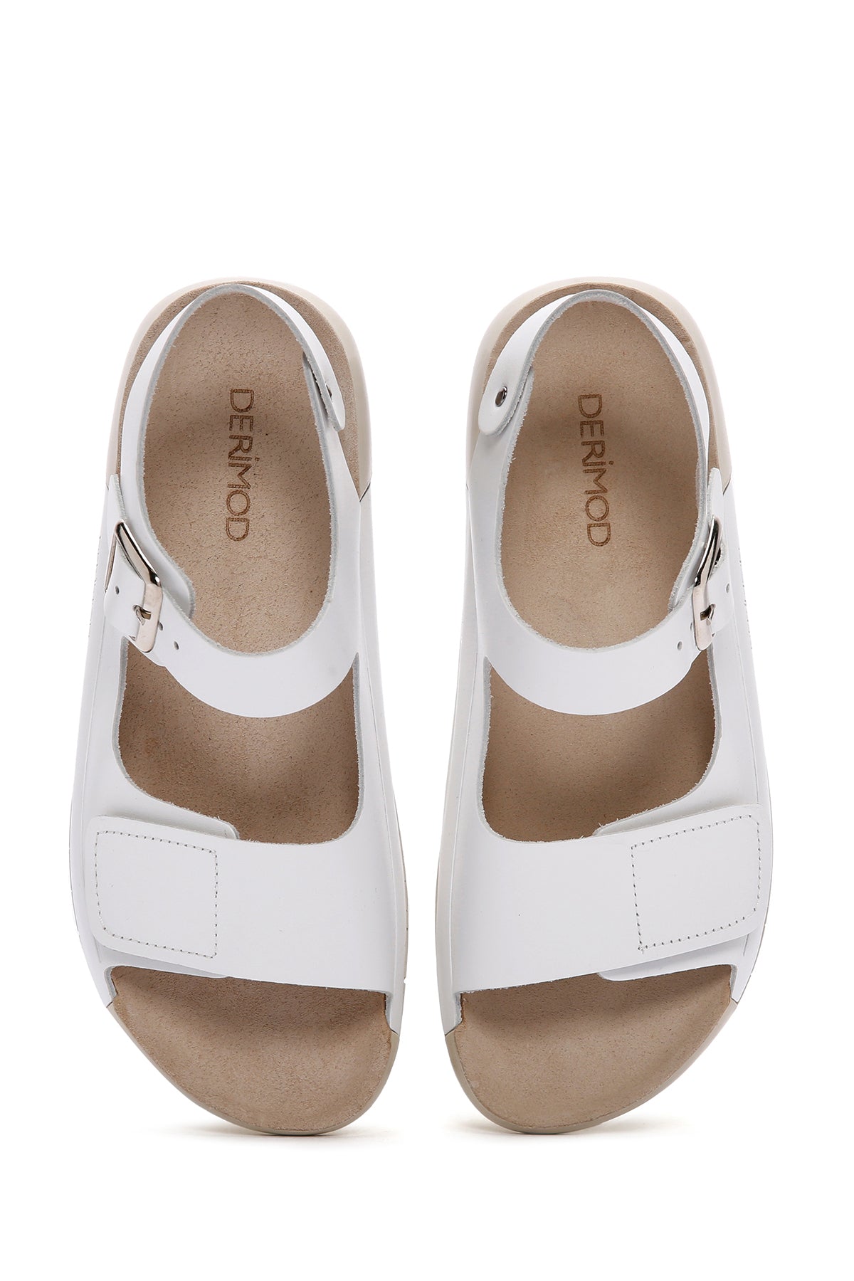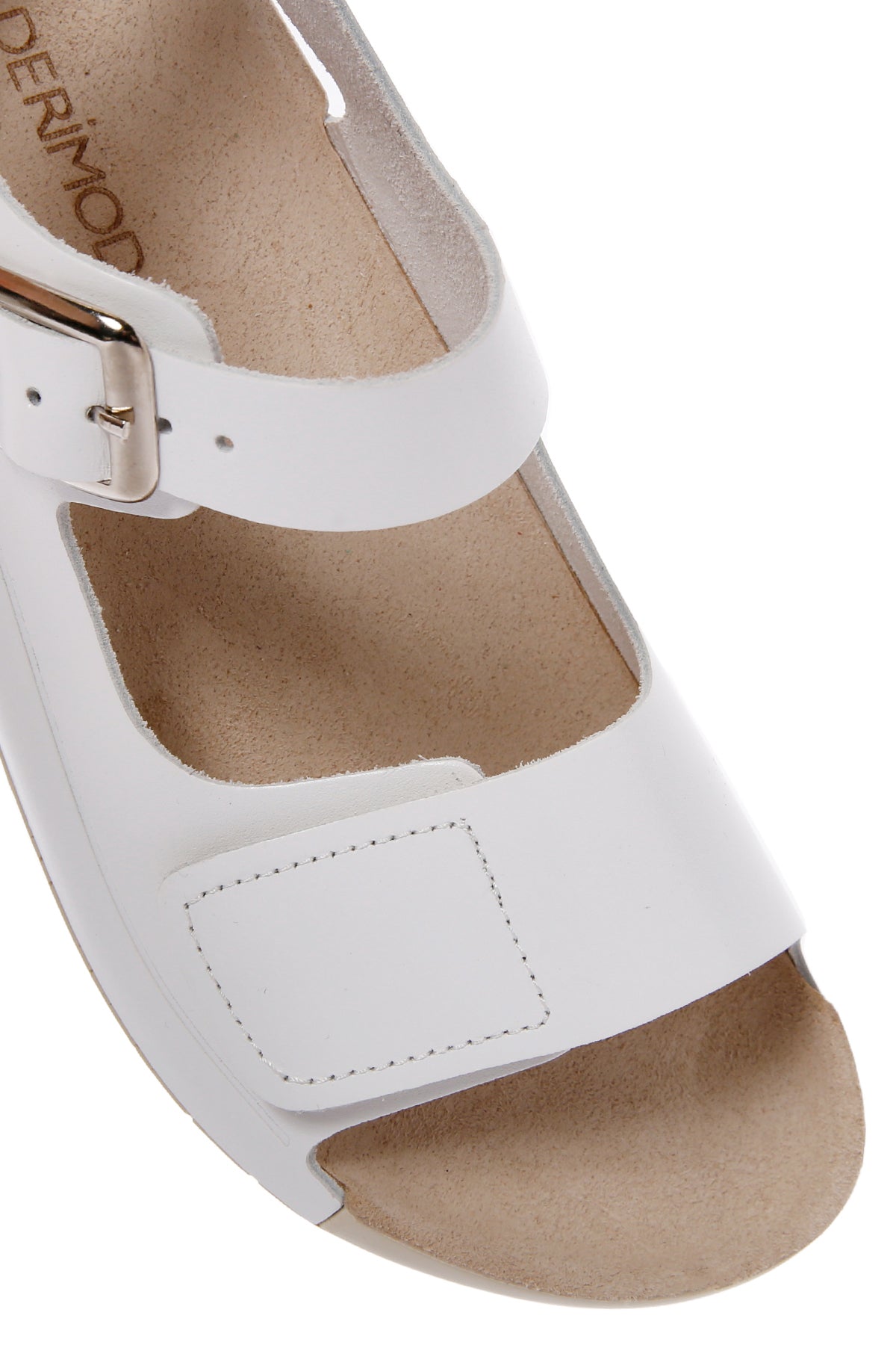 Kadın Beyaz Bilekten Bantlı Deri Comfort Sandalet