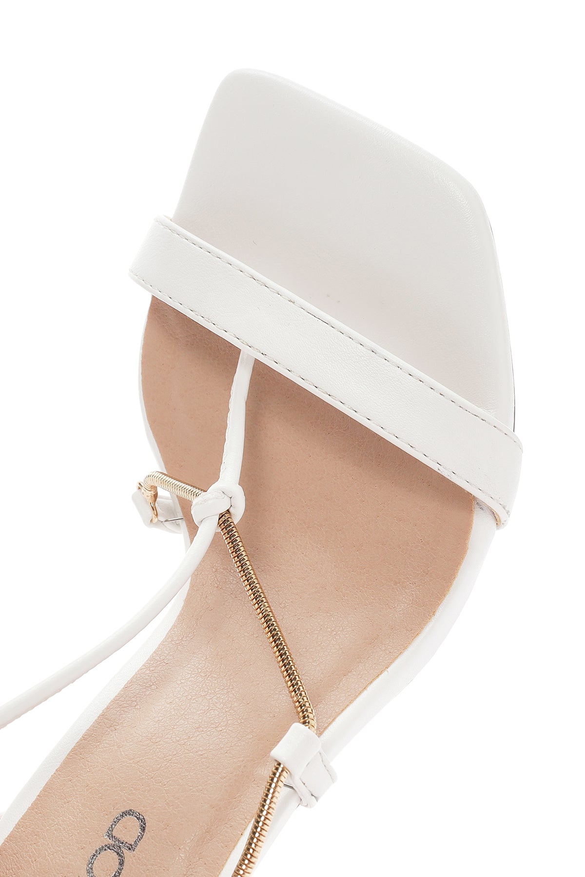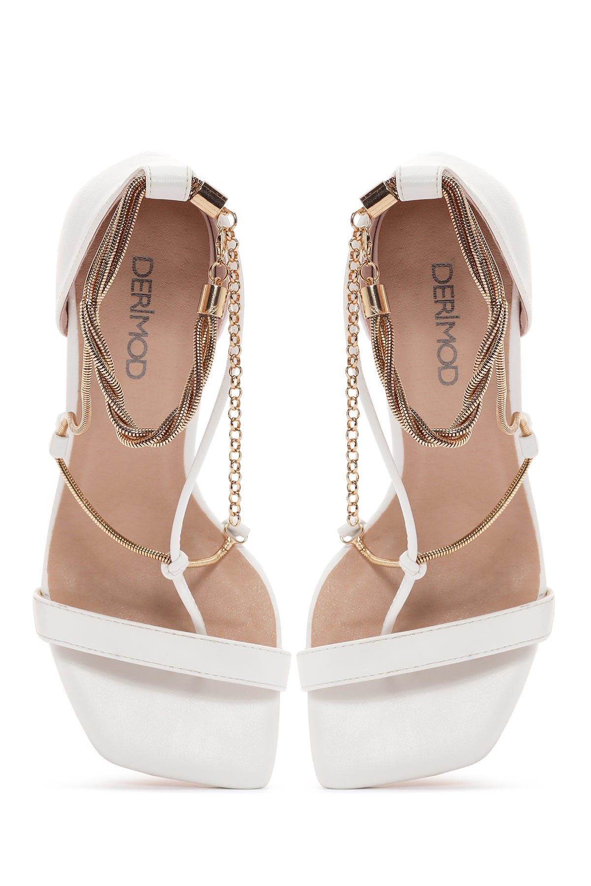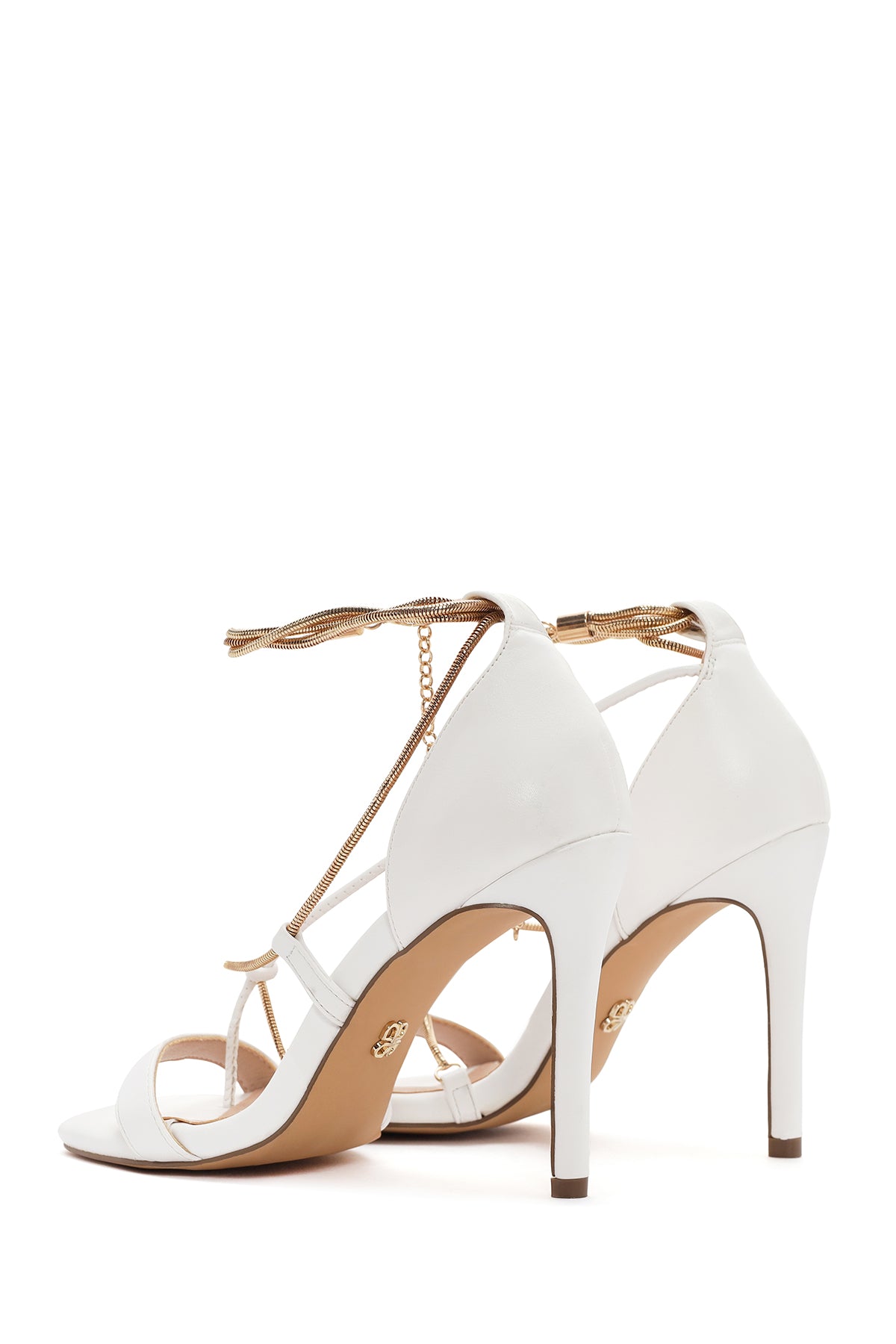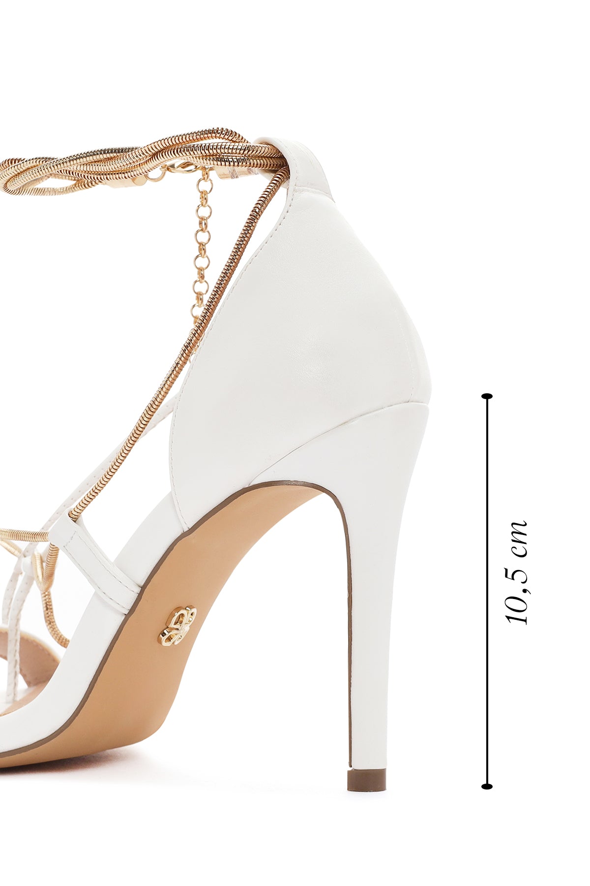 Kadın Beyaz Bilekten Zincir Bağlamalı İnce Topuklu Sandalet