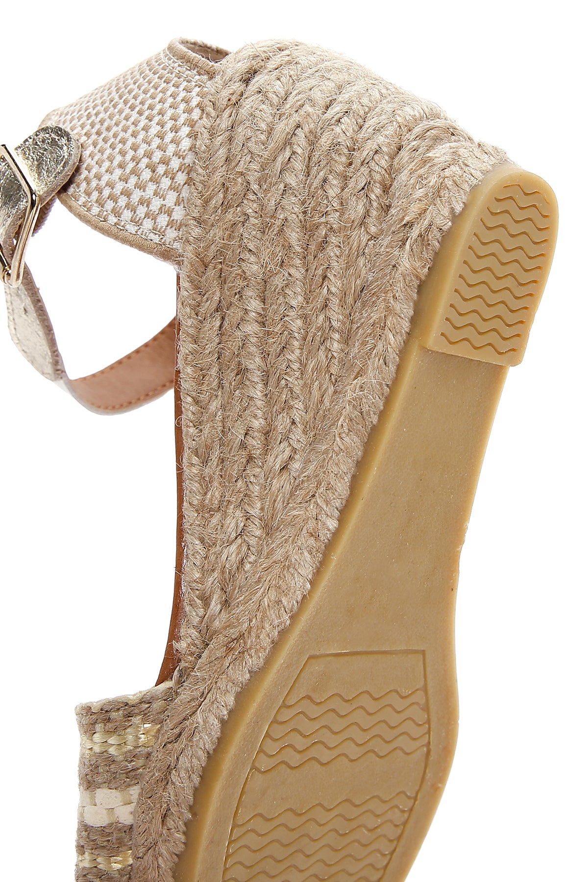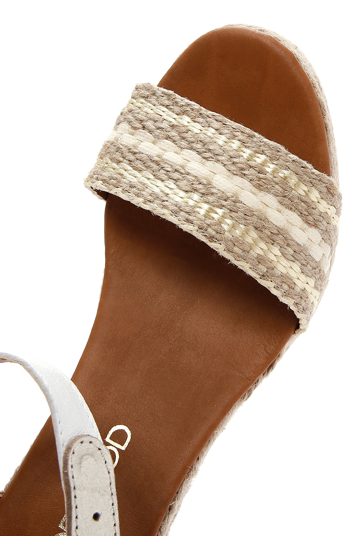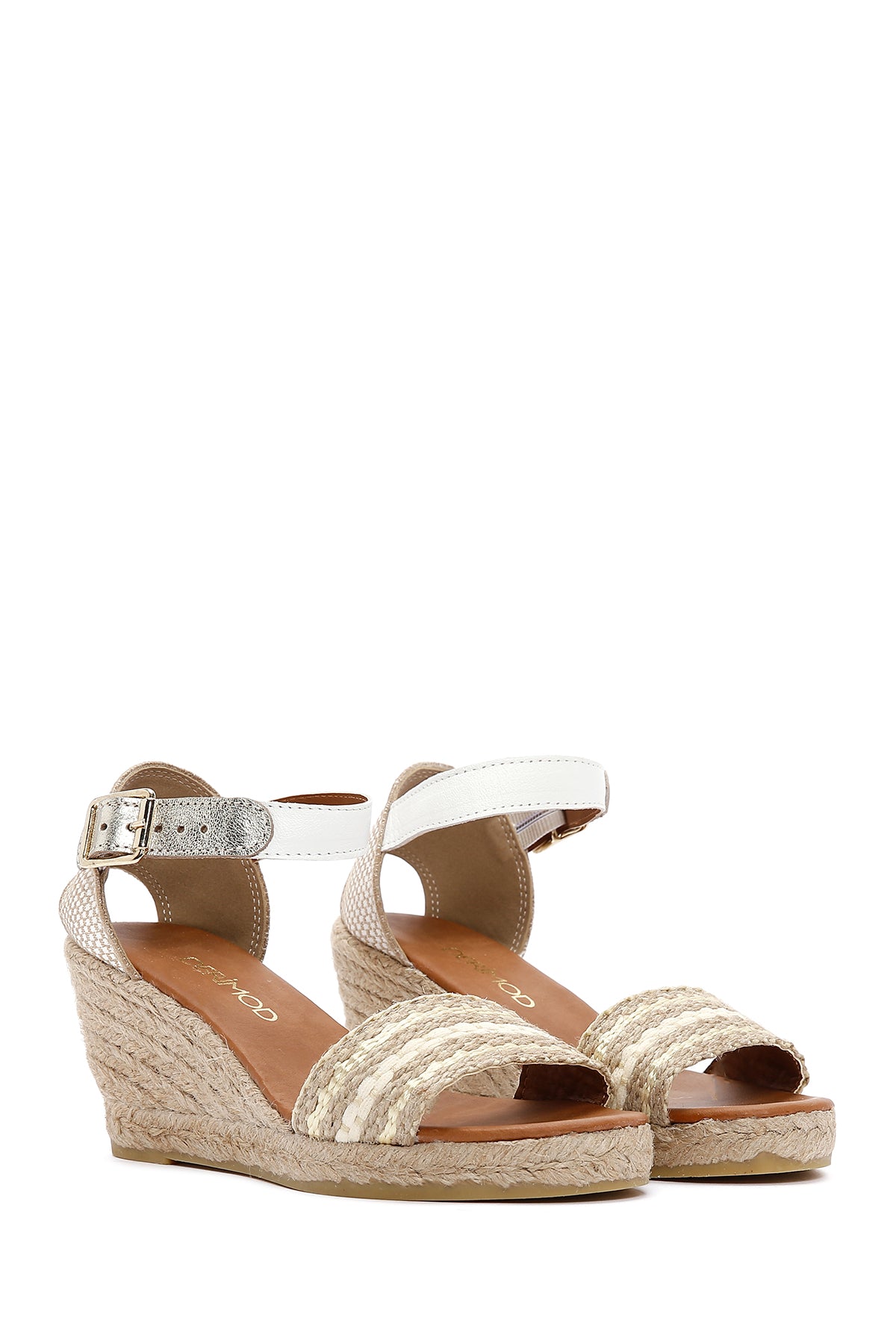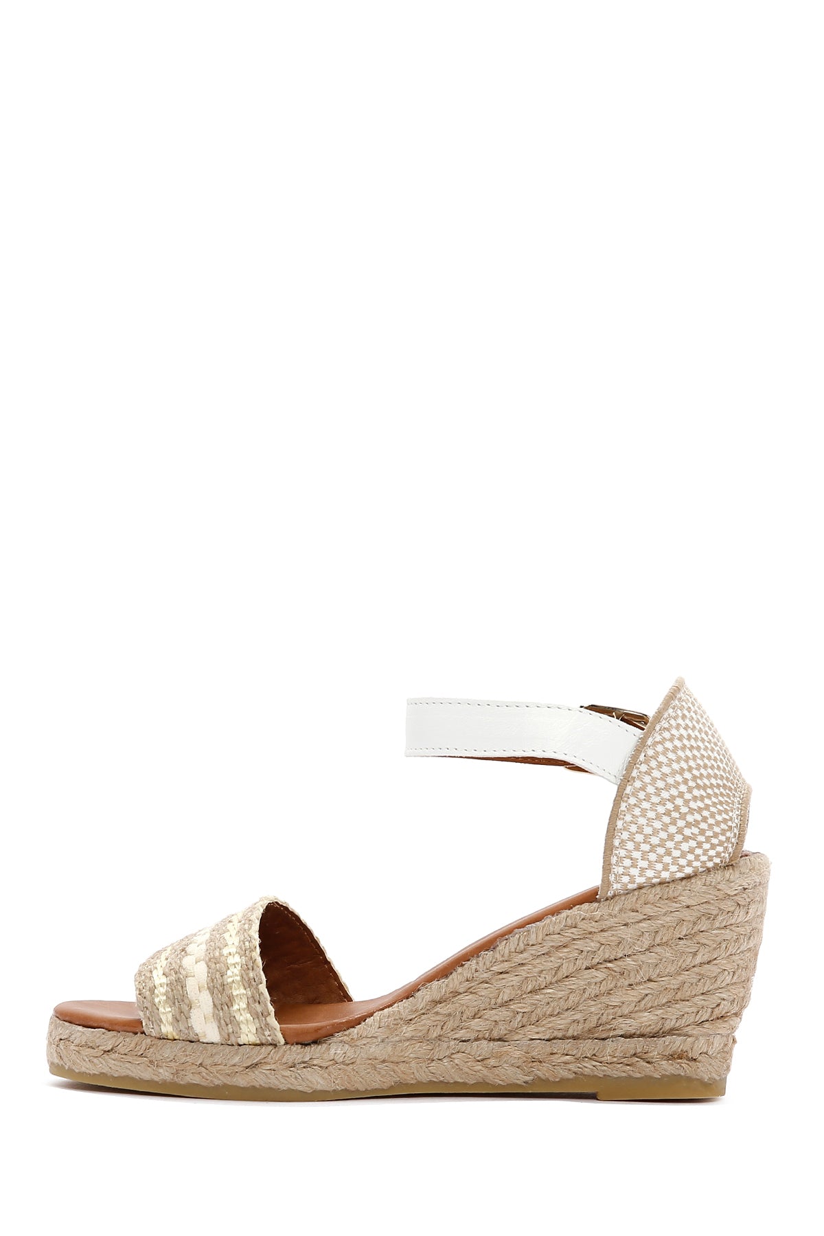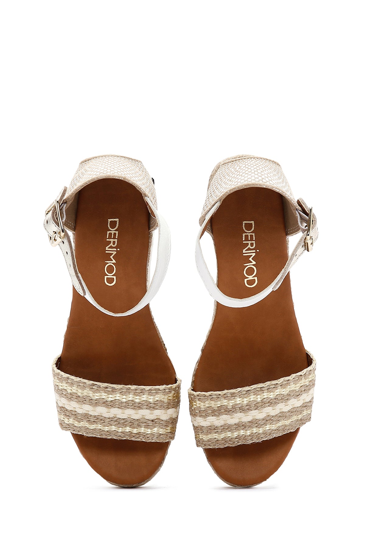 Derimod’un Zarif ve Şıklığı bir arada sunan Kadın Beyaz Dolgu Topuk Espadril Sandalet ile tarzınızı konuşturun. Ürünün kodu: 23SFD20726F 01