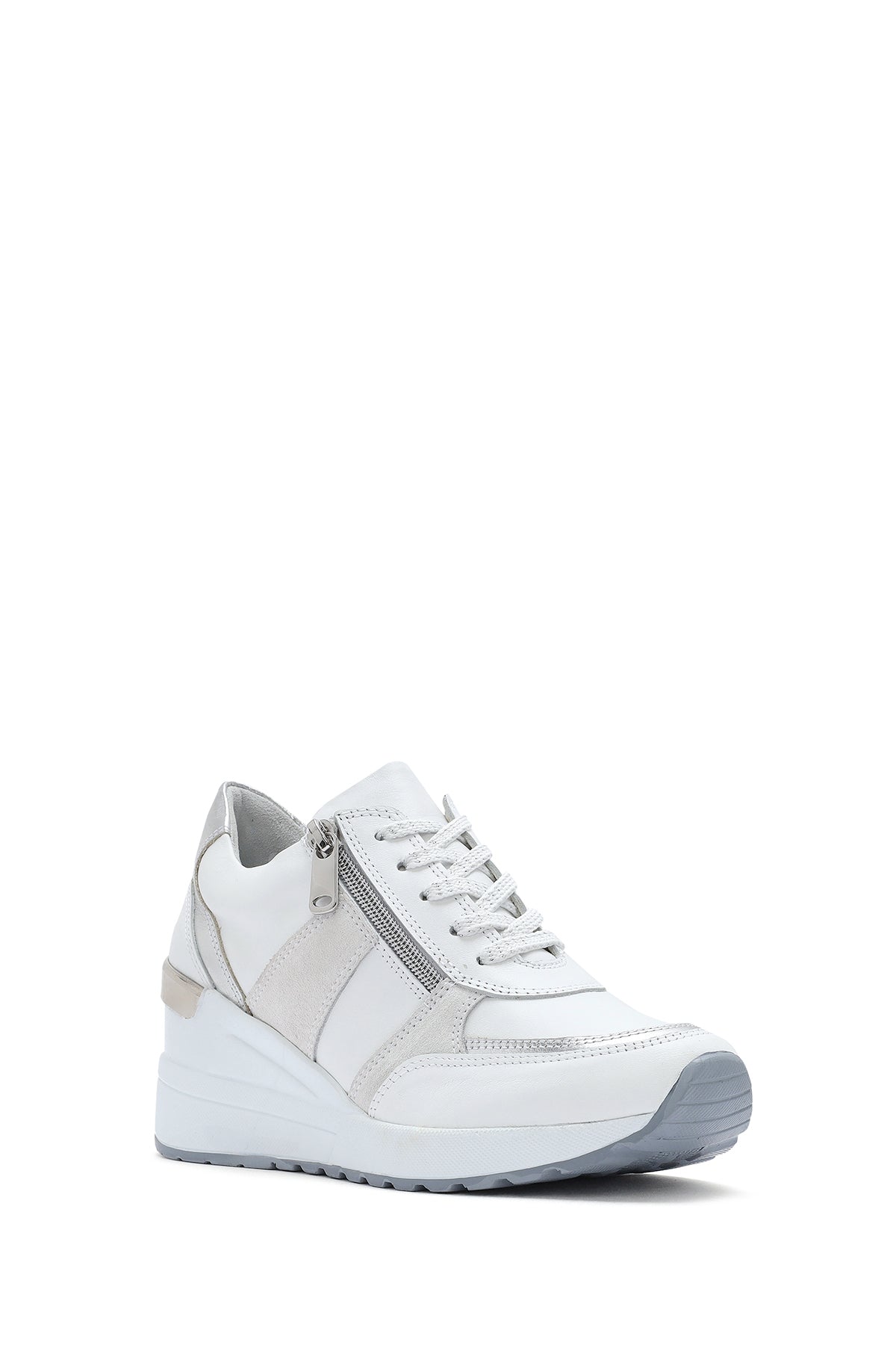 Derimod’un Zarifliği ve Şıklığı bir arada sunan Kadın Beyaz Dolgu Topuklu Yandan Fermuarlı Deri Sneaker ile tarzınızı konuşturun. Ürünün kodu: 25SFD370314 01