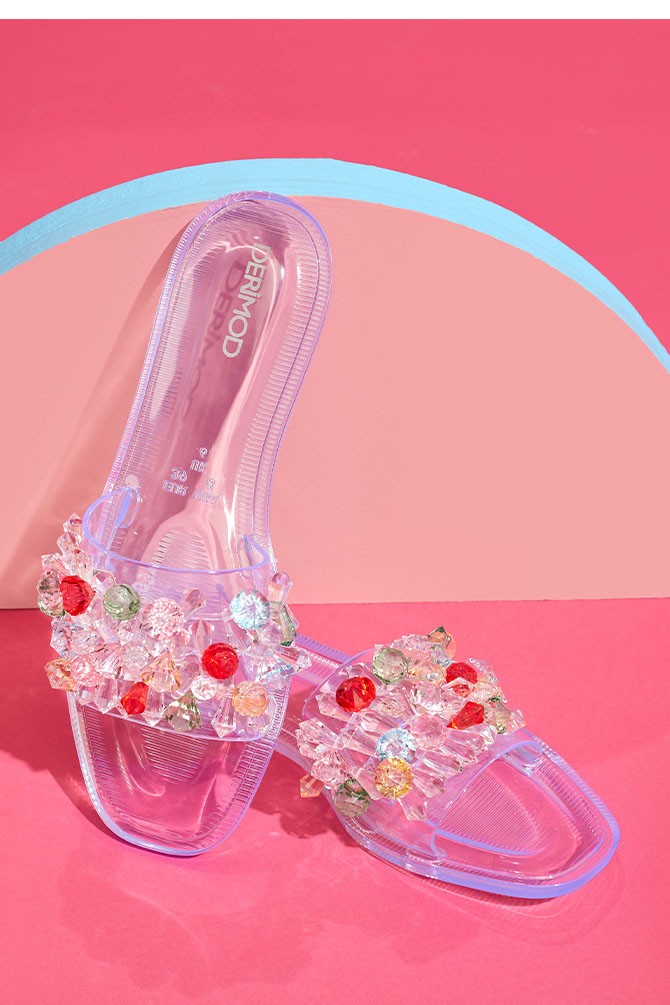 Derimod’un Zarif ve Şıklığı bir arada sunan Kadın Beyaz Jelly Şeffaf Taşlı Düz Terlik ile tarzınızı konuşturun. Ürünün kodu: 23SFE4905PV SD
