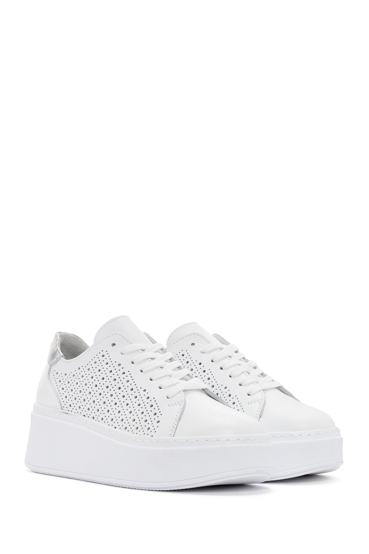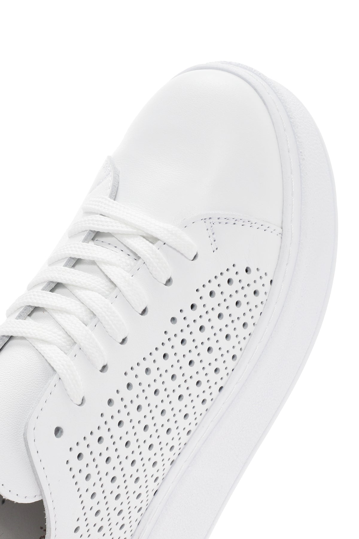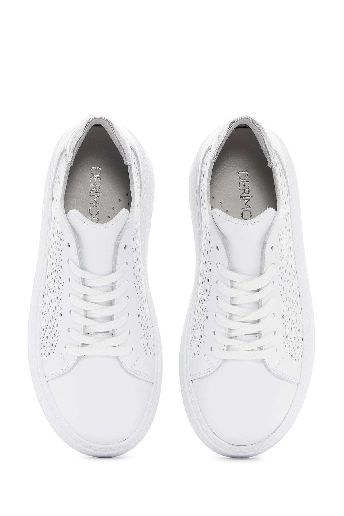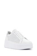Kadın Beyaz Kalın Tabanlı Bağcıklı Deri Sneaker