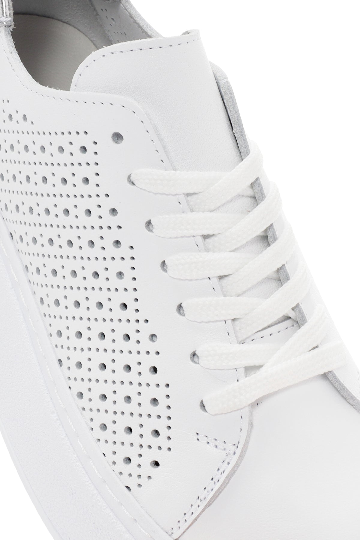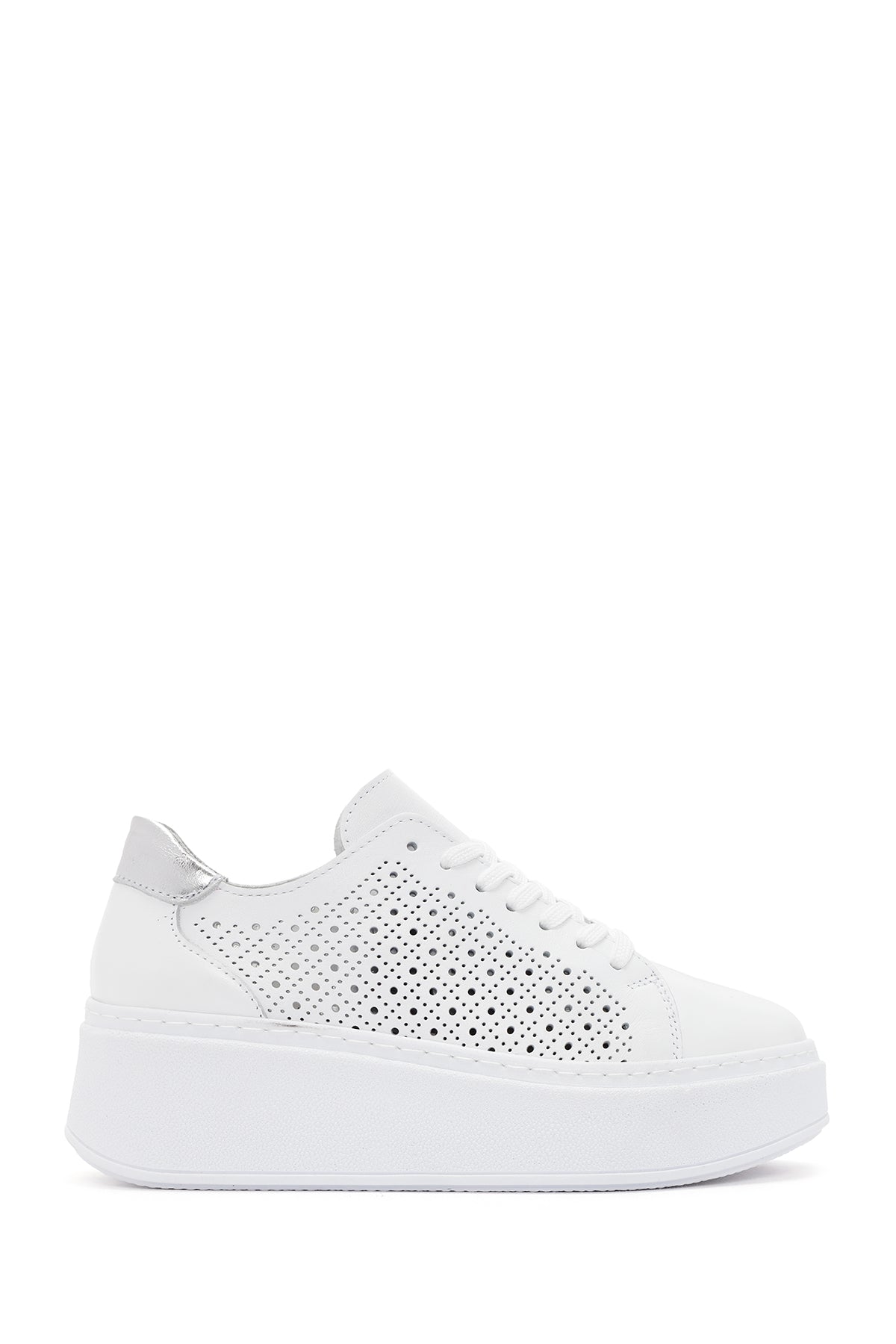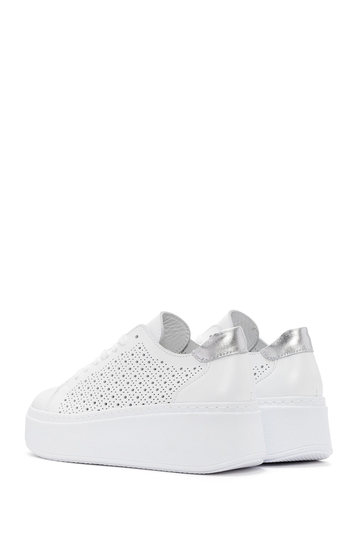 Kadın Beyaz Kalın Tabanlı Bağcıklı Deri Sneaker