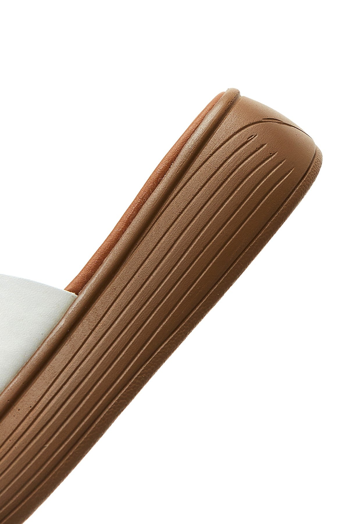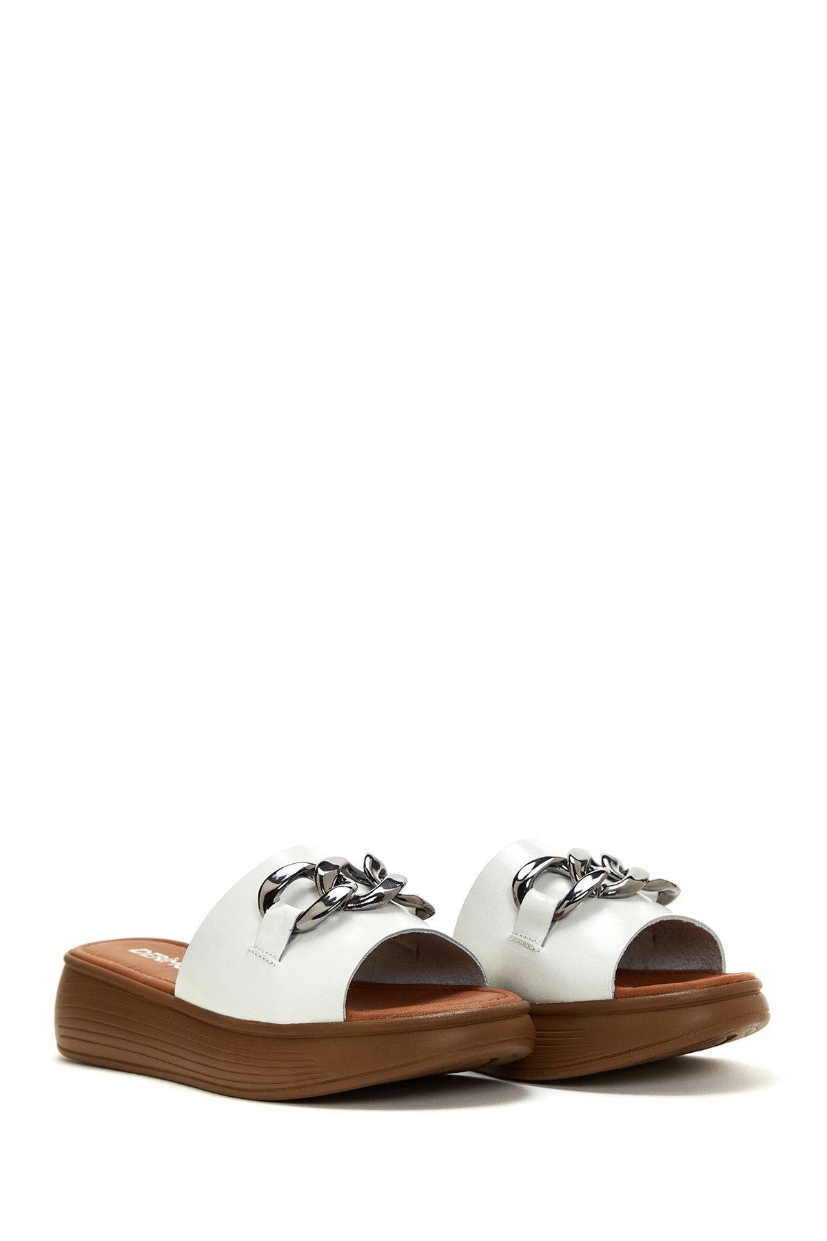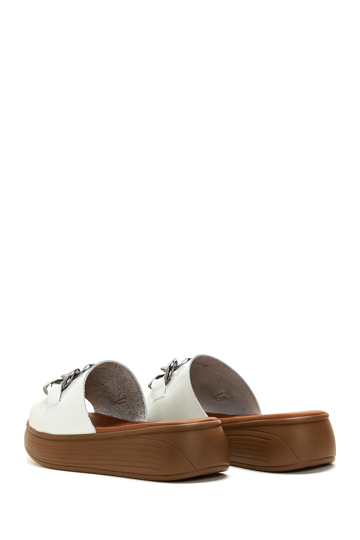 Kadın Beyaz Kalın Tabanlı Deri Terlik