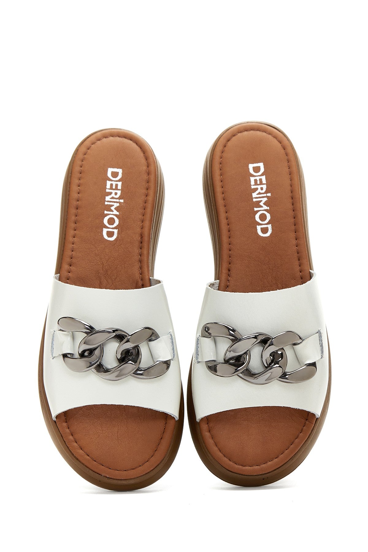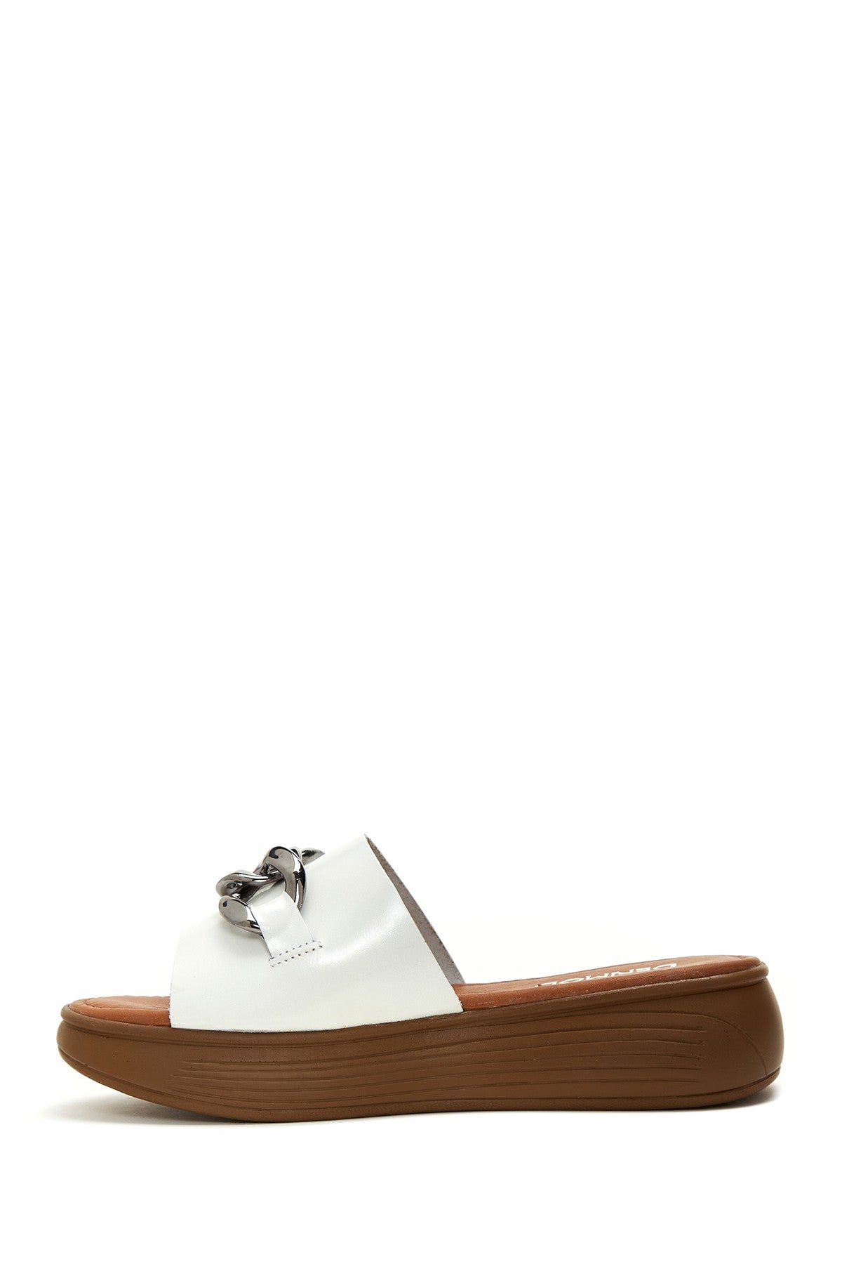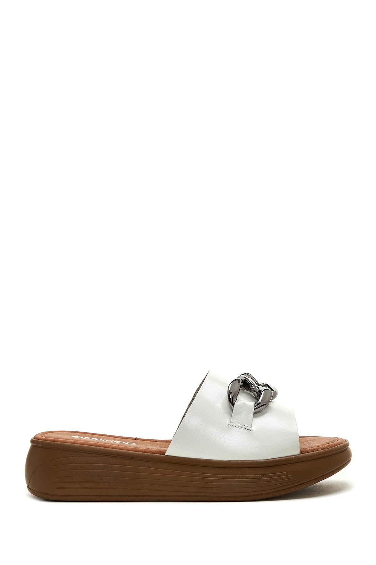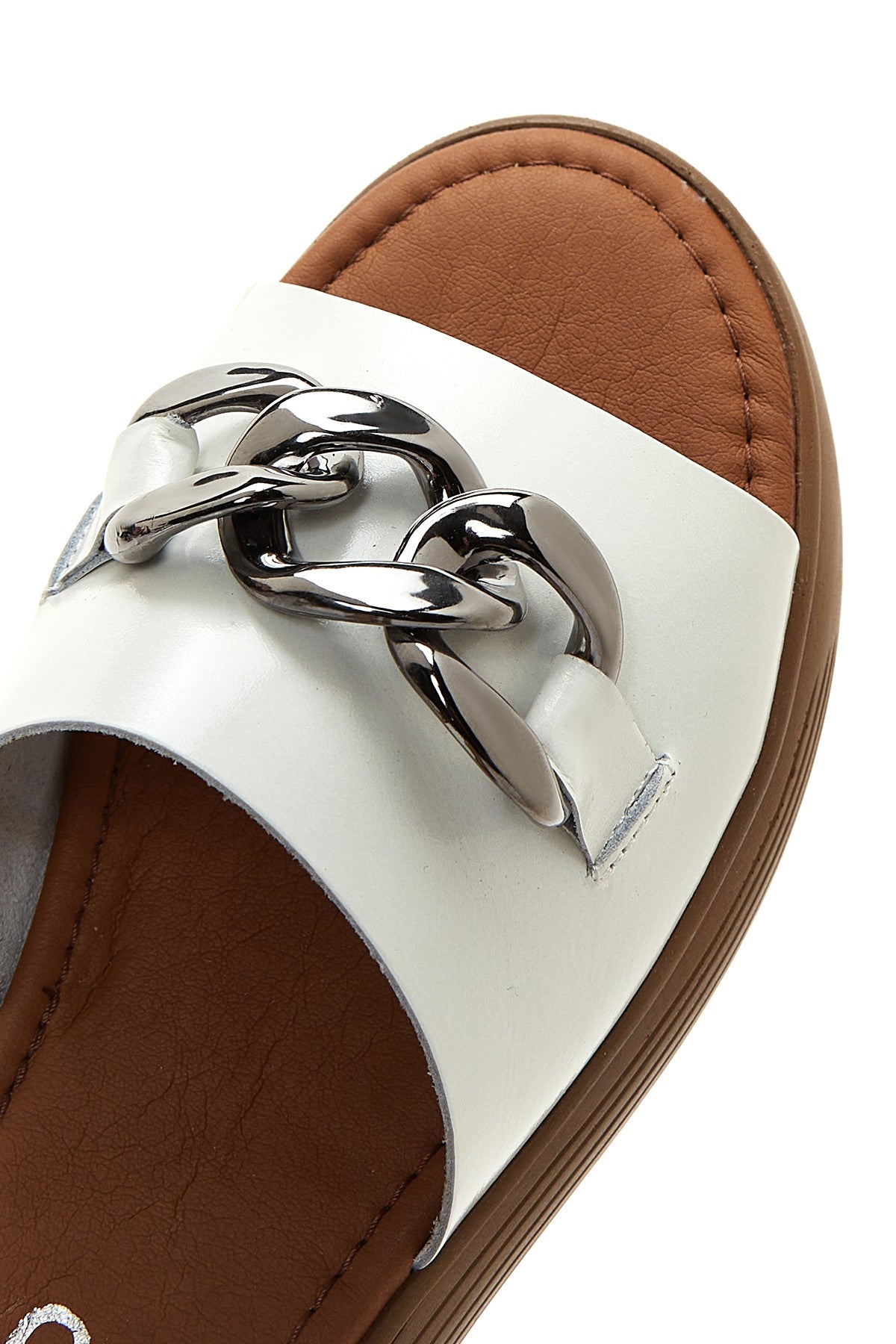 Kadın Beyaz Kalın Tabanlı Deri Terlik