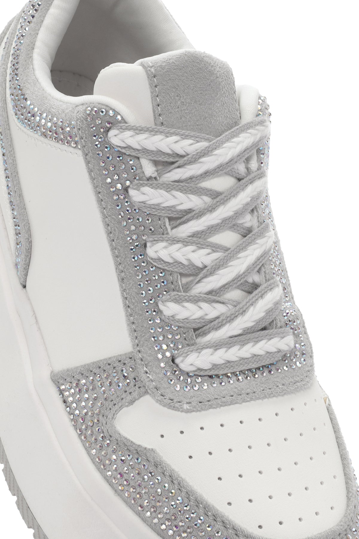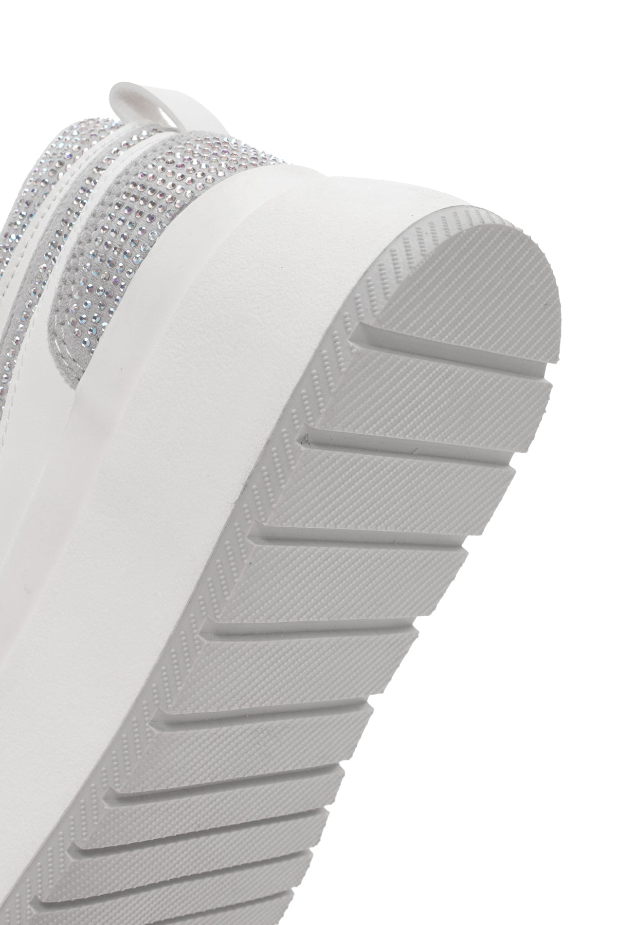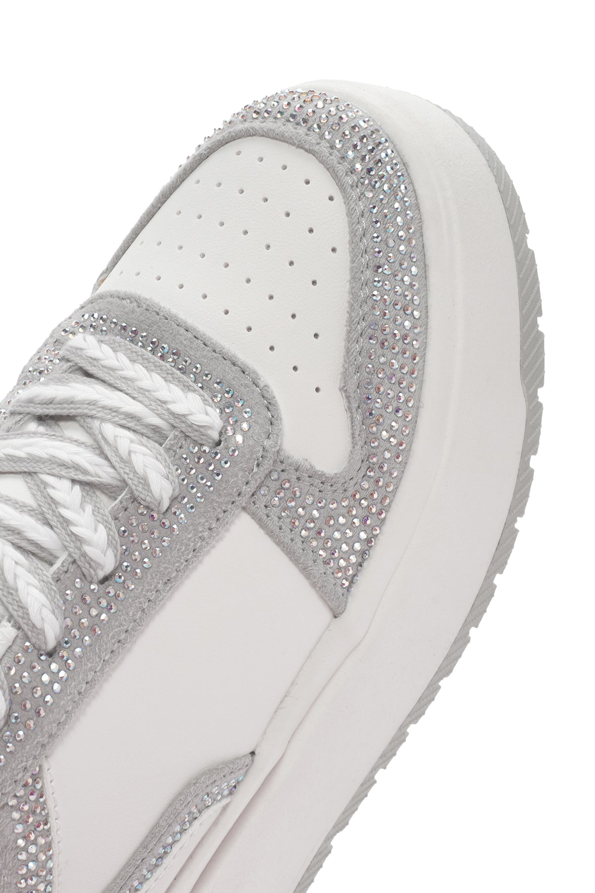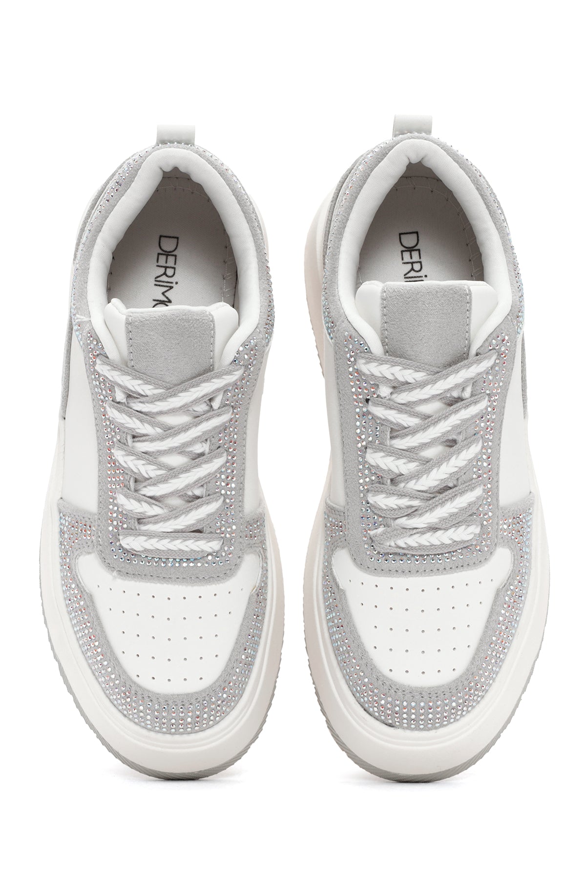 Kadın Beyaz Kalın Tabanlı Taşlı Bağcıklı Sneaker