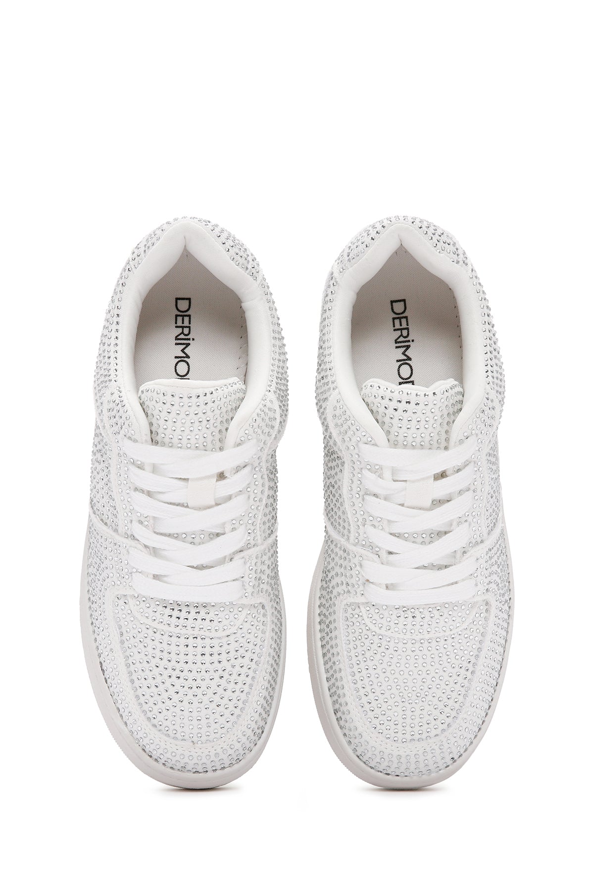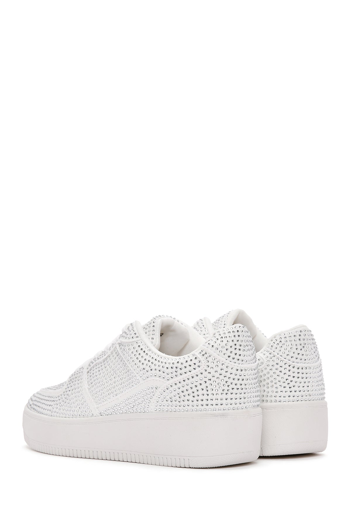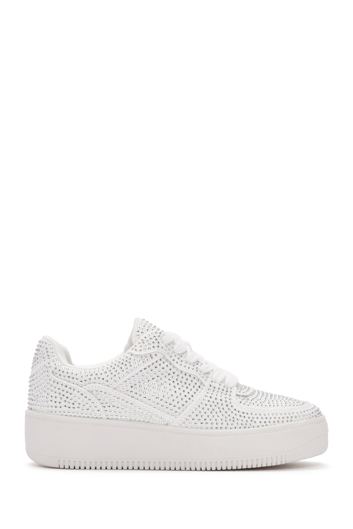 Kadın Beyaz Kalın Tabanlı Taşlı Sneaker