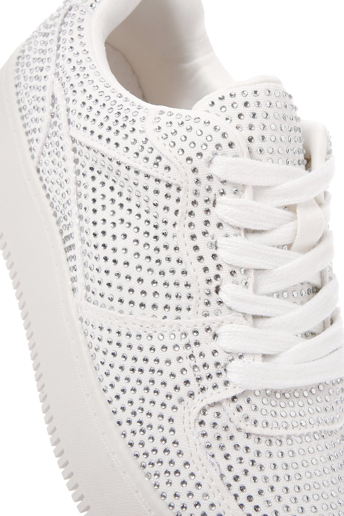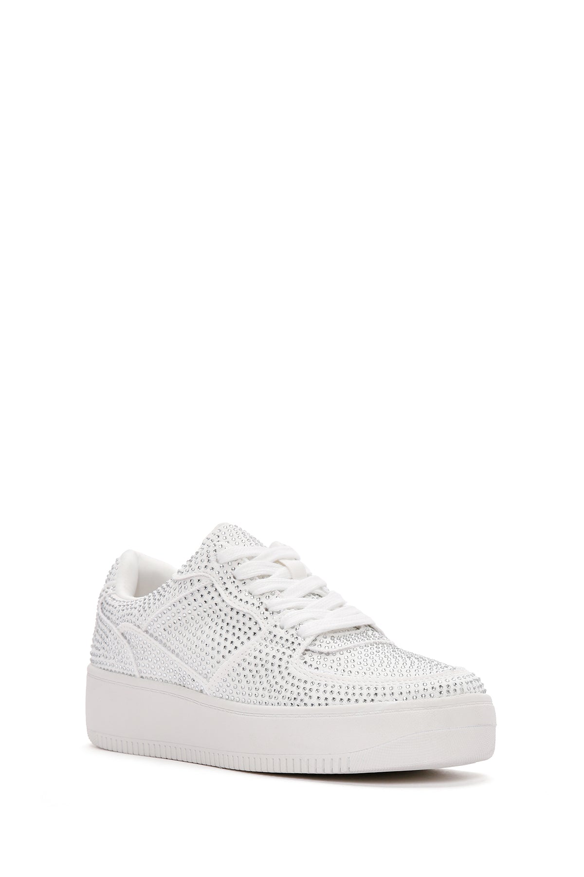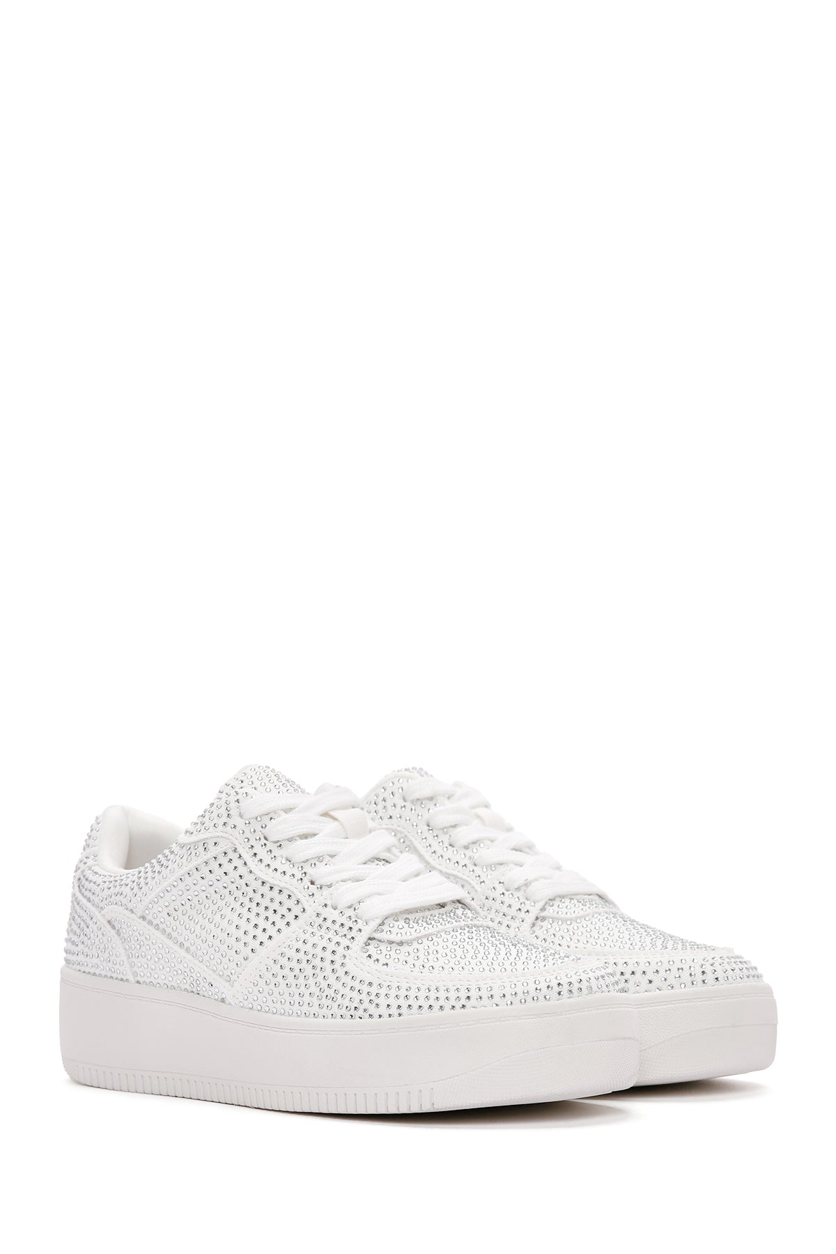 Kadın Beyaz Kalın Tabanlı Taşlı Sneaker