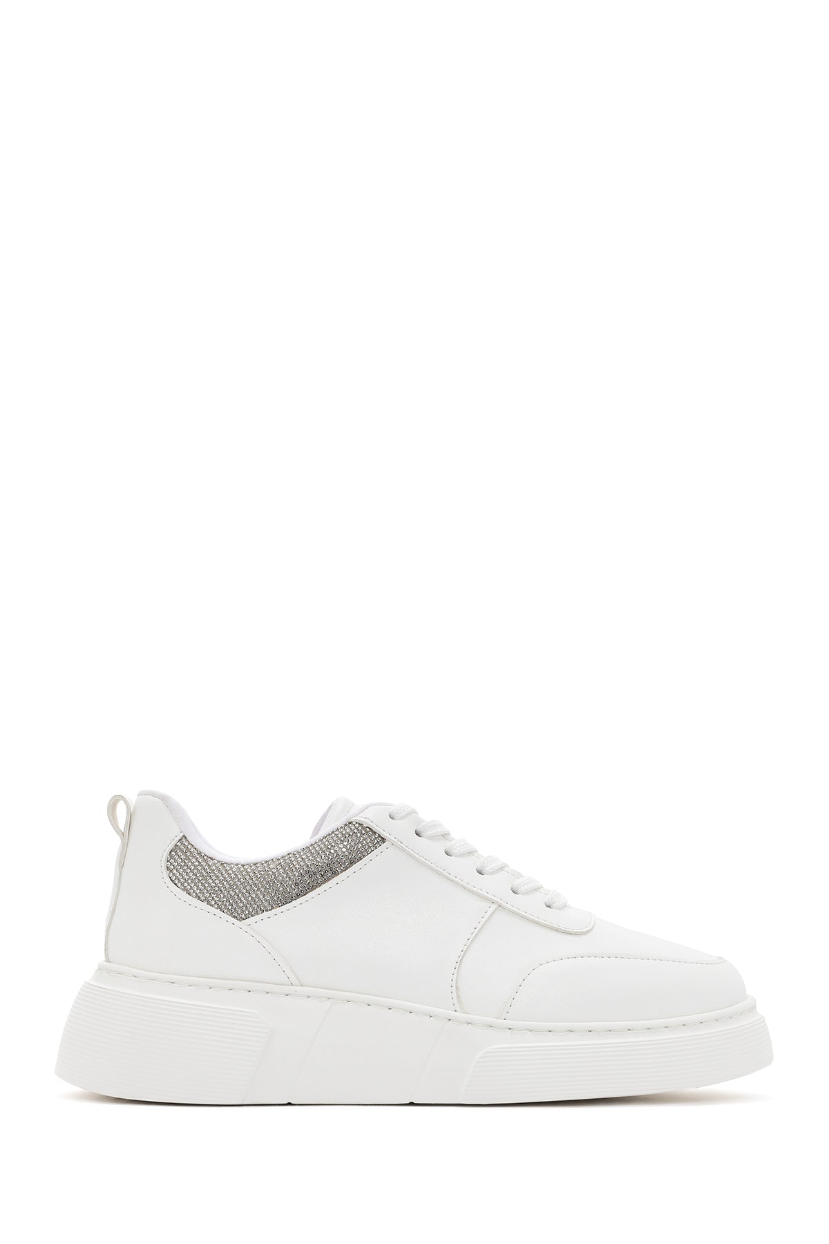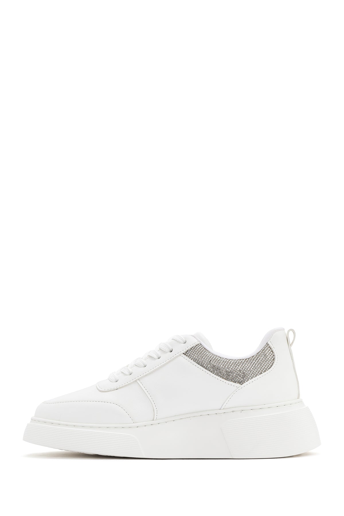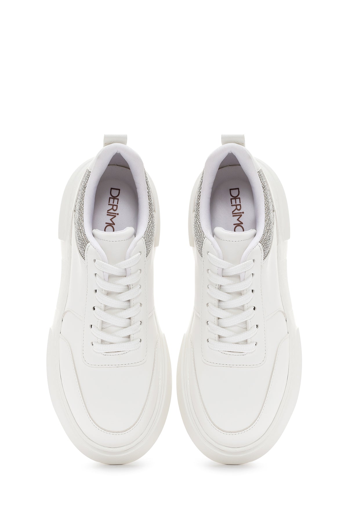 Kadın Beyaz Kalın Tabanlı Taşlı Sneaker