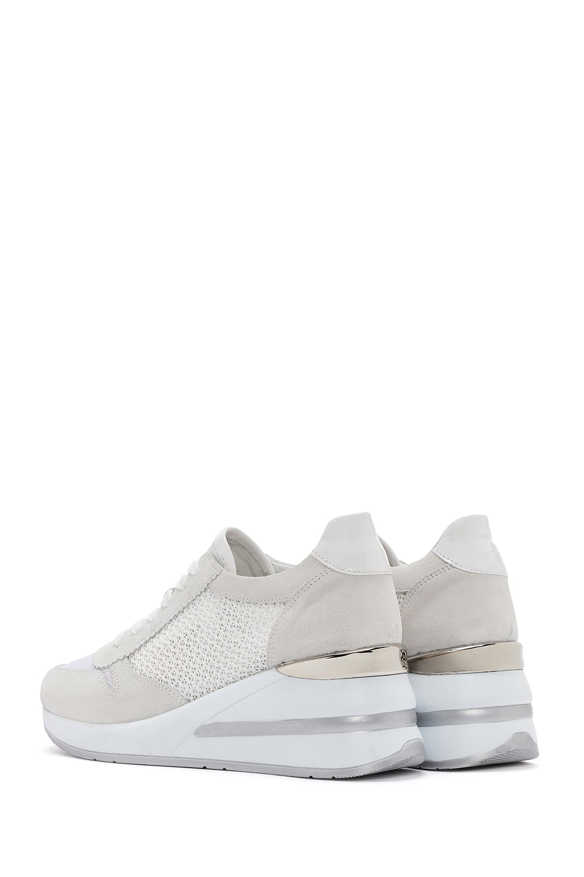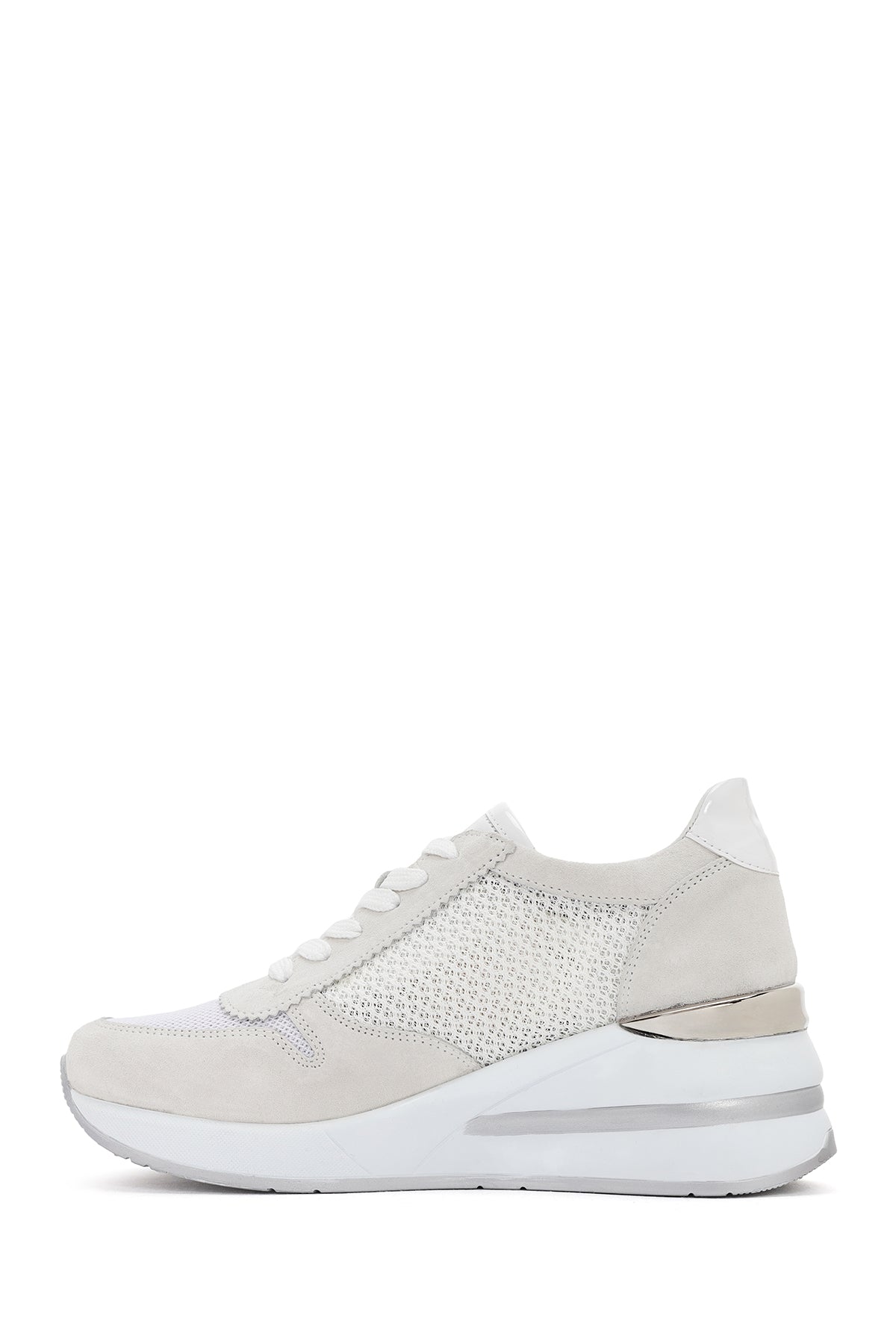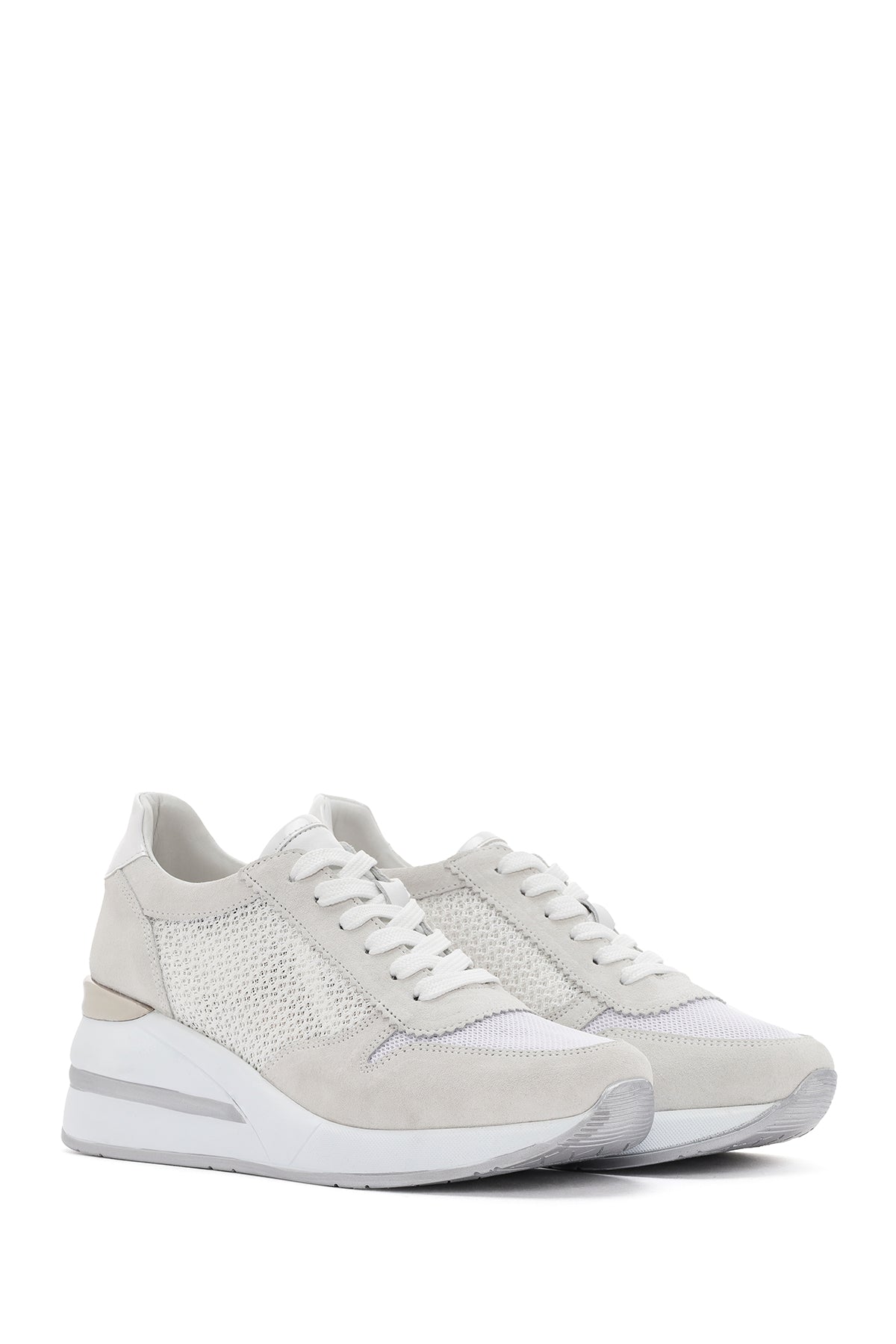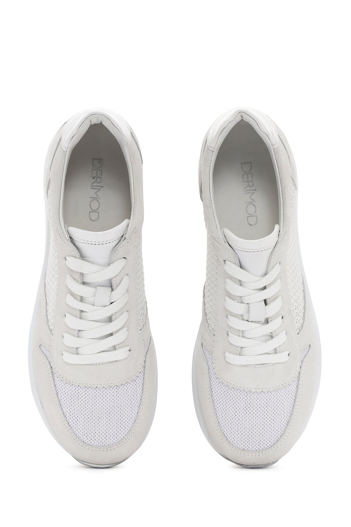 Kadın Beyaz Kalın Topuklu Bağcıklı Deri Sneaker