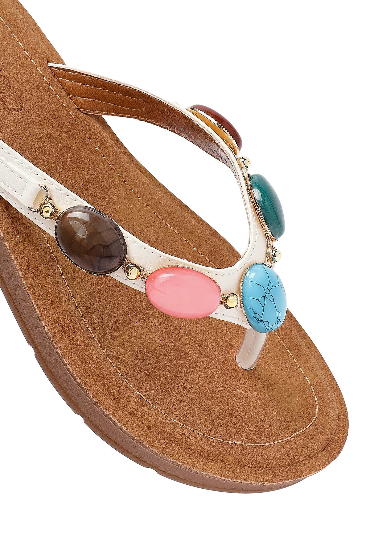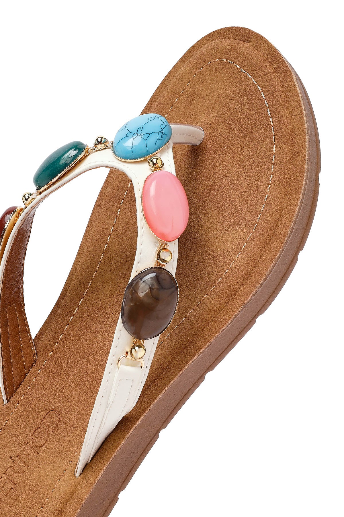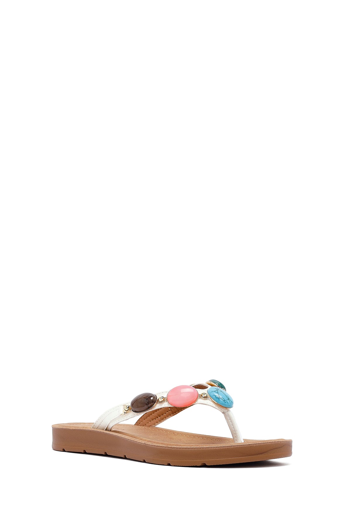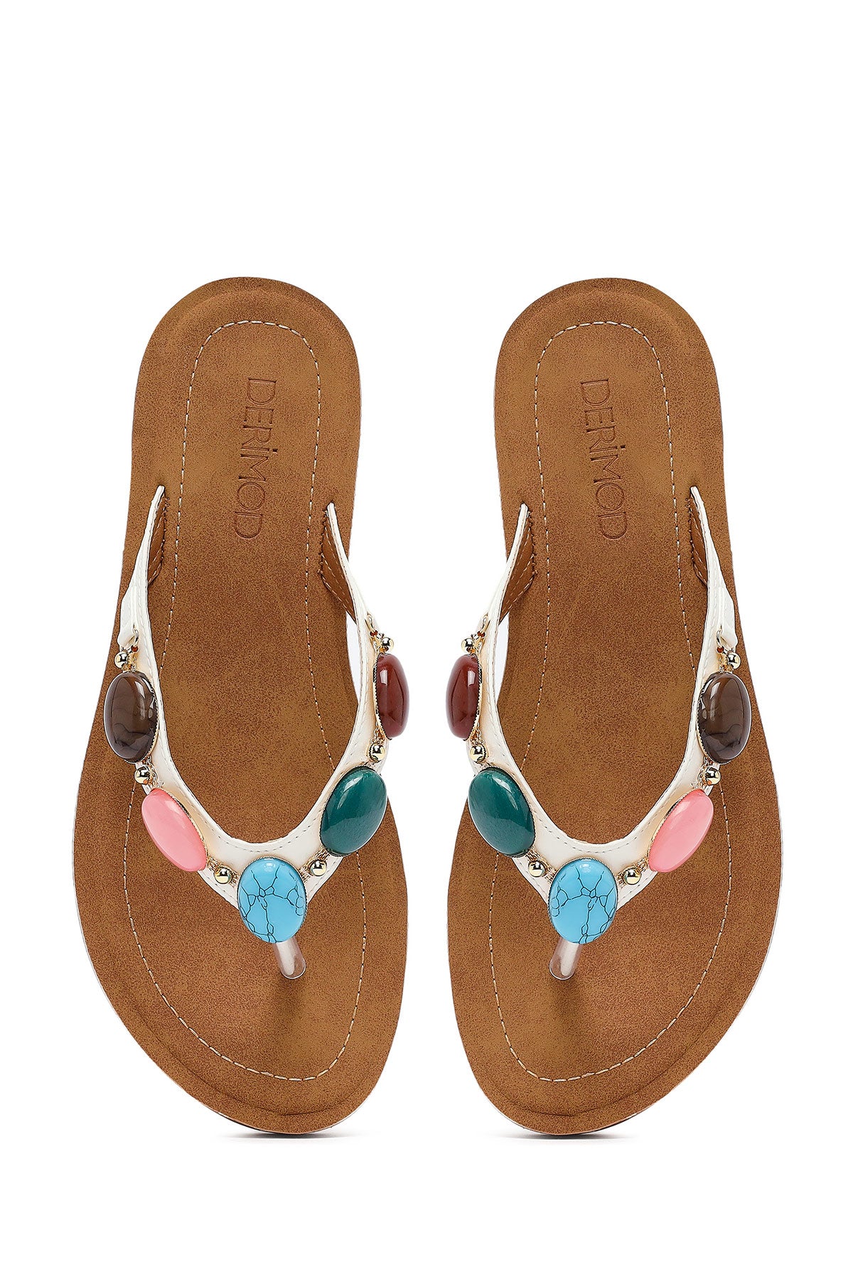 Derimod’un Zarifliği ve Şıklığı bir arada sunan Kadın Beyaz Parmak Arası Taşlı Terlik ile tarzınızı konuşturun. Ürünün kodu: 25SFE463018 01