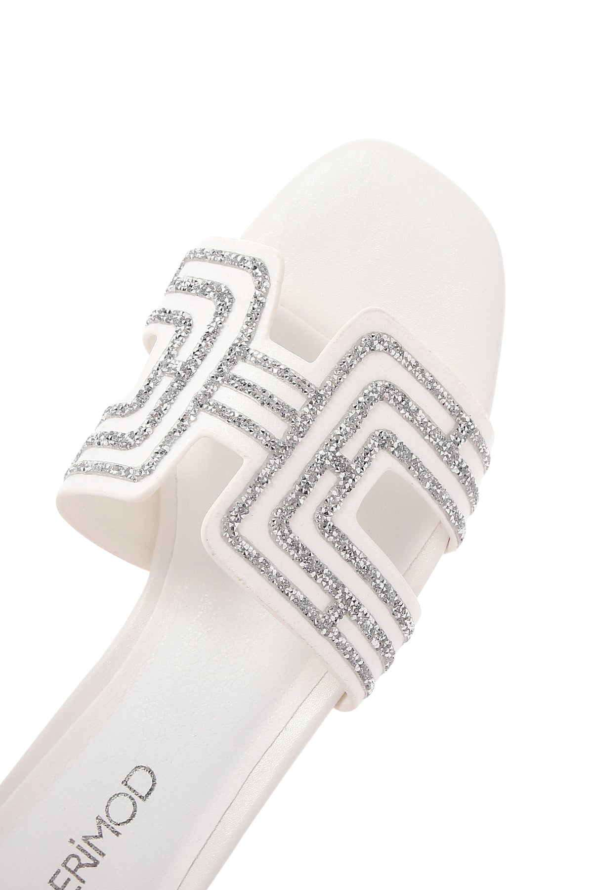 Derimod’un Zarif ve Şıklığı bir arada sunan Kadın Beyaz Taşlı Terlik ile tarzınızı konuşturun. Ürünün kodu: 23SFD442614 01