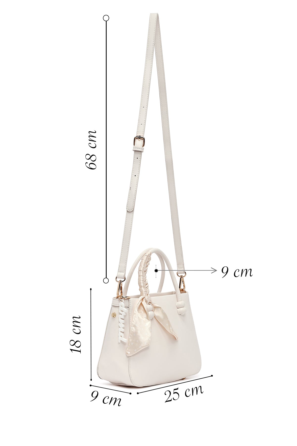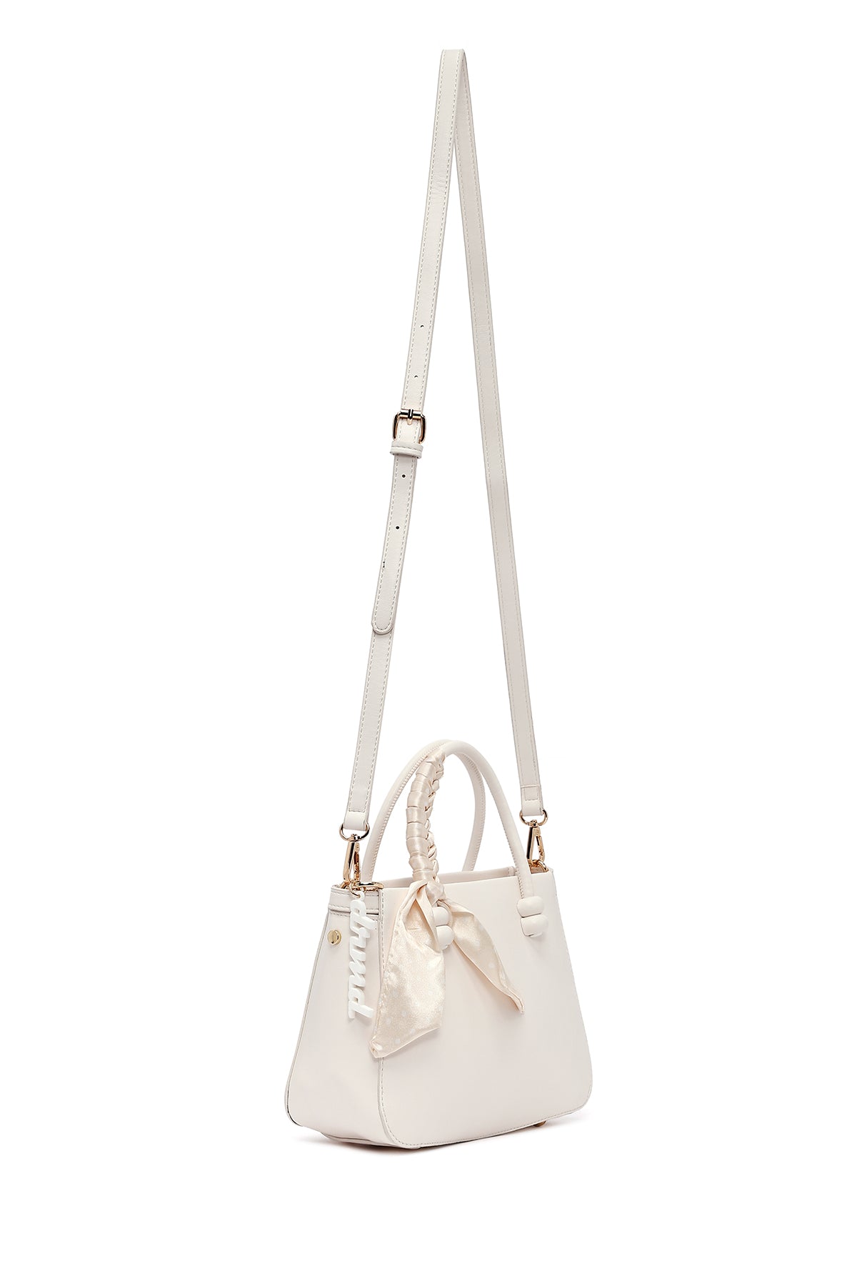 Kadın Beyaz Uzun Askılı Aksesuarlı Kol Çantası