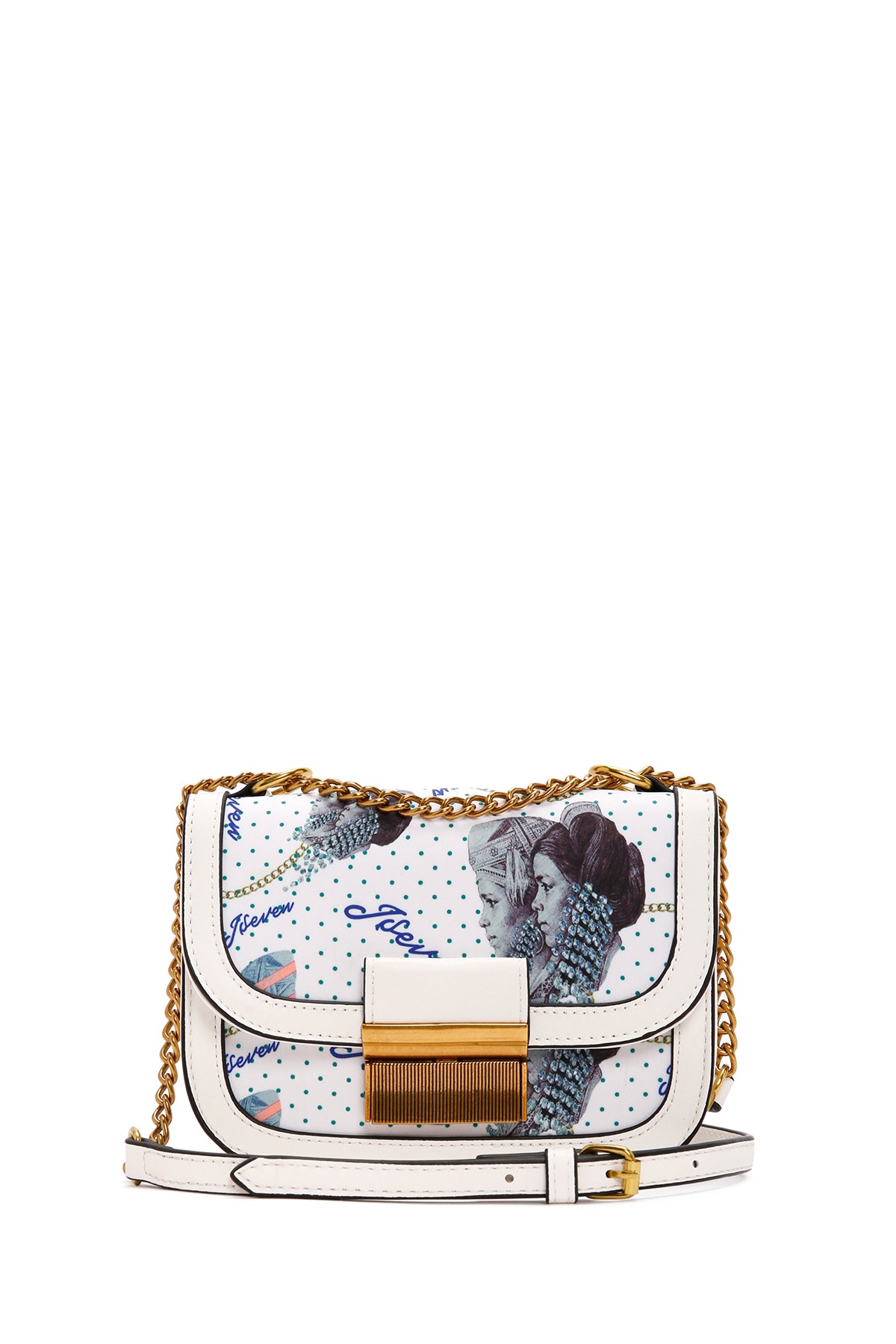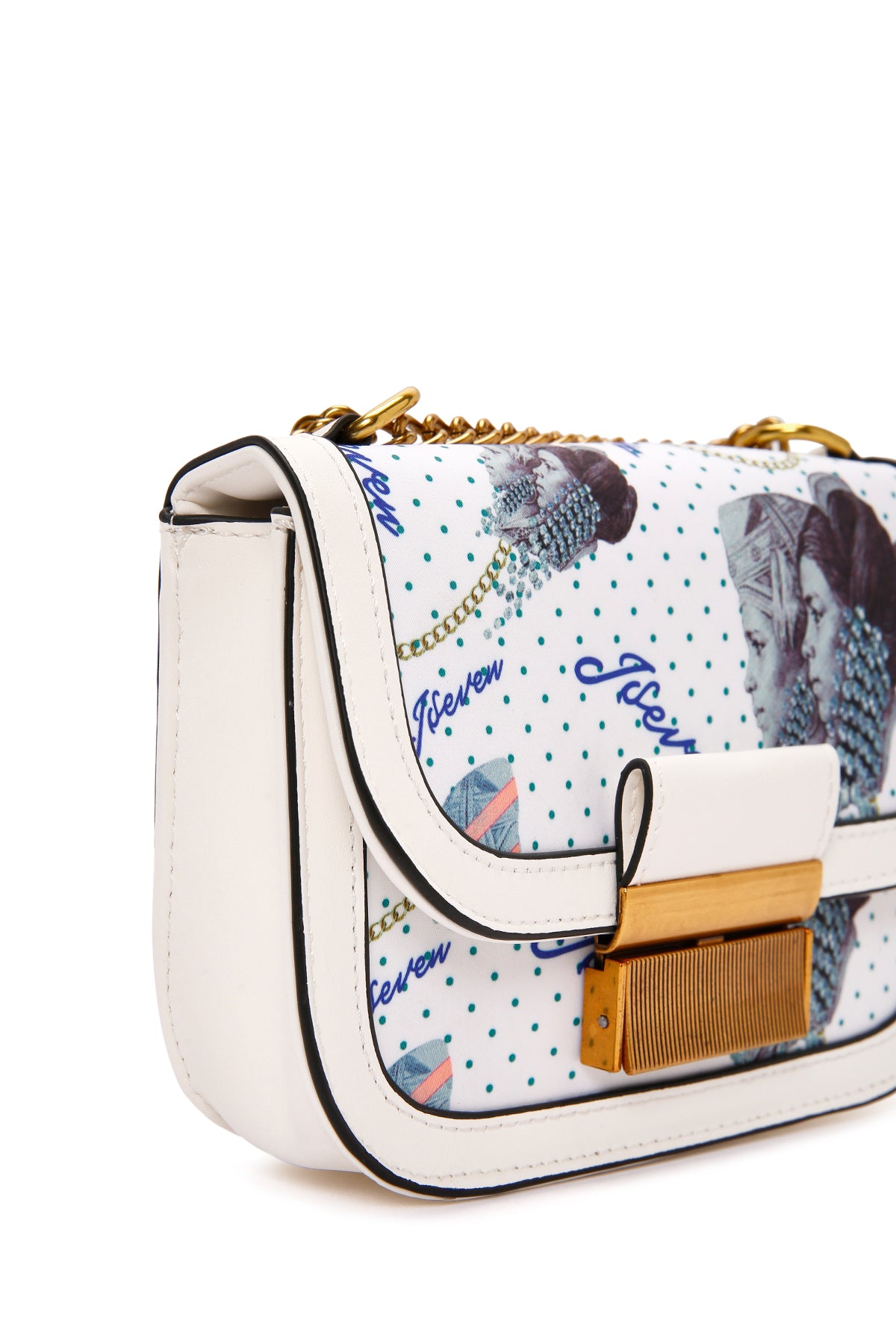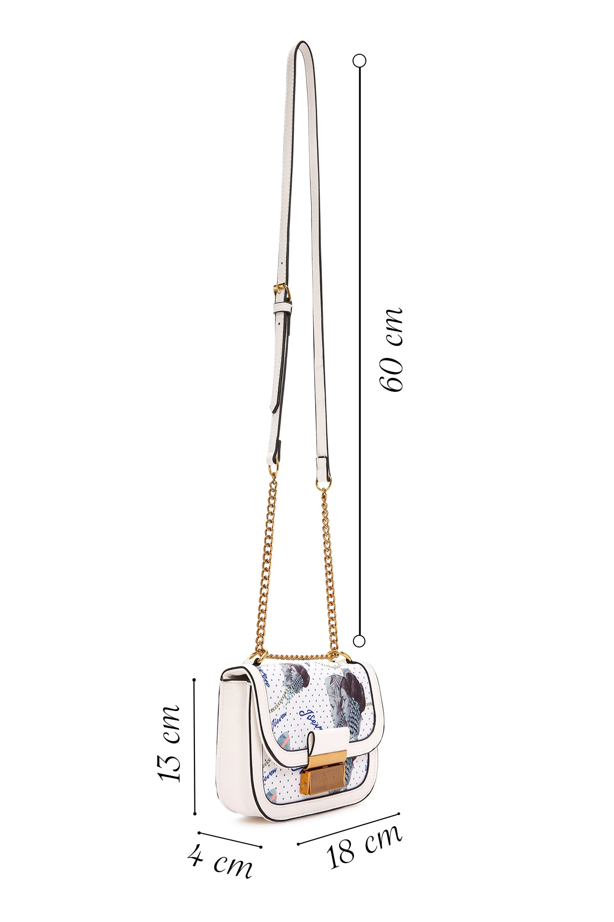 Kadın Beyaz Uzun Askılı Baskılı Çapraz Çanta