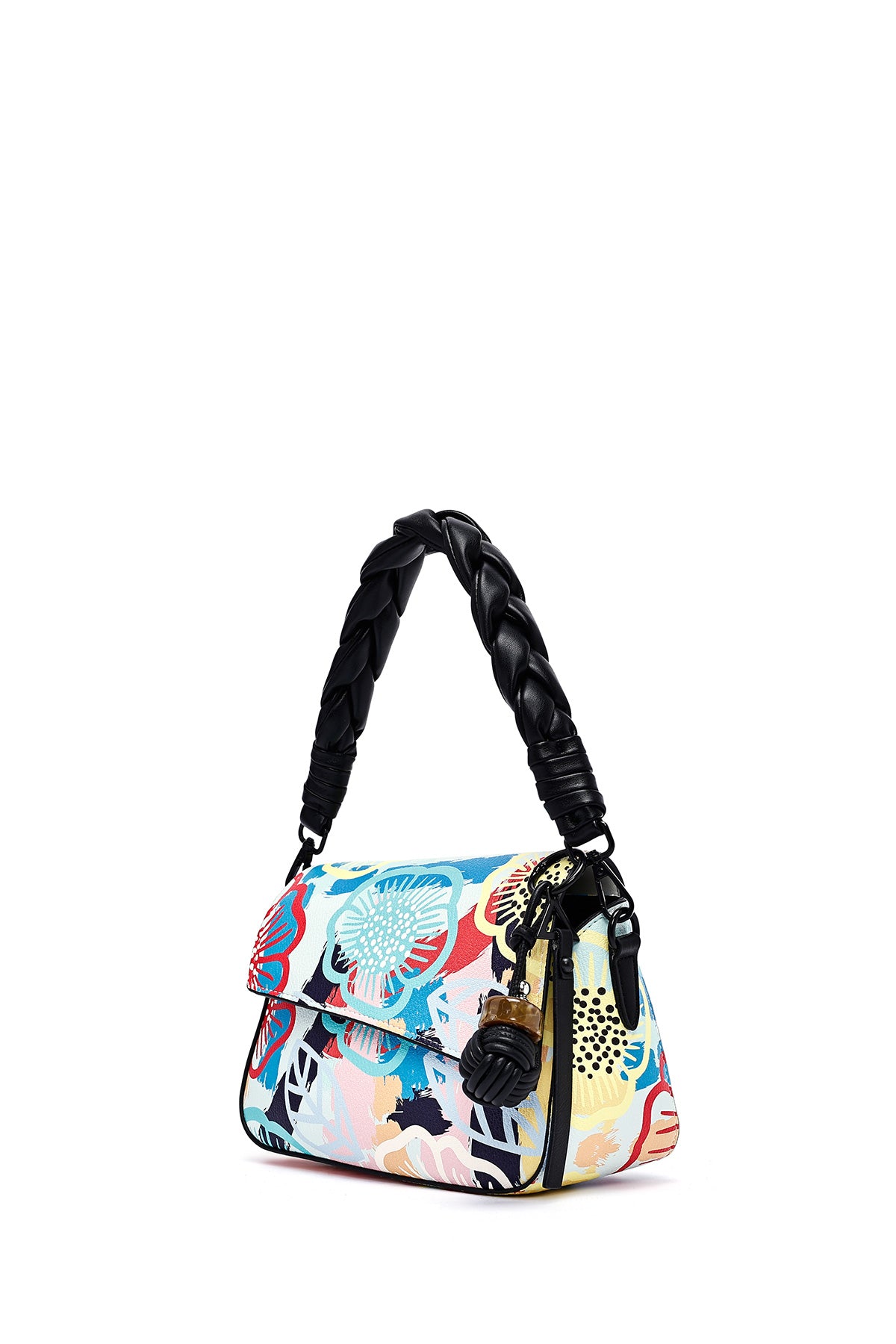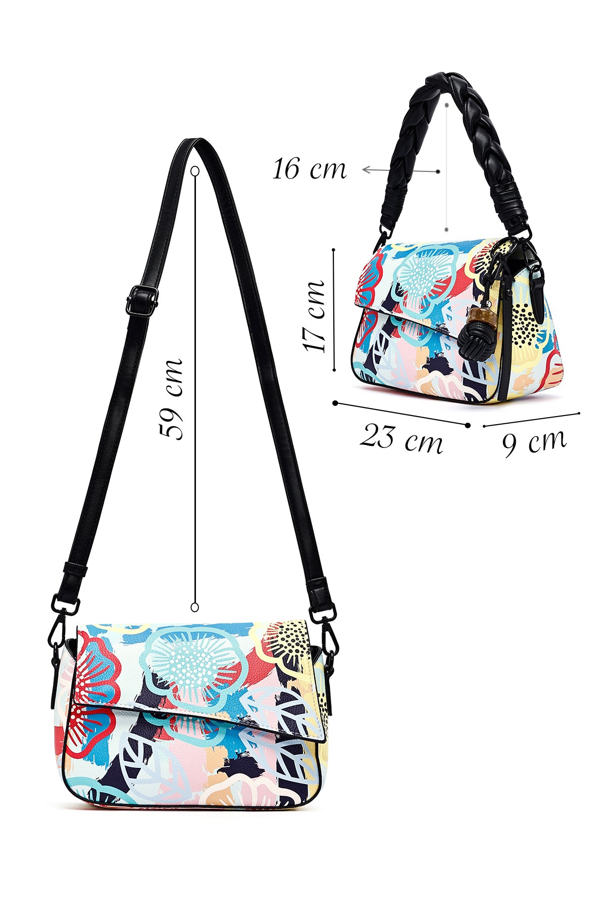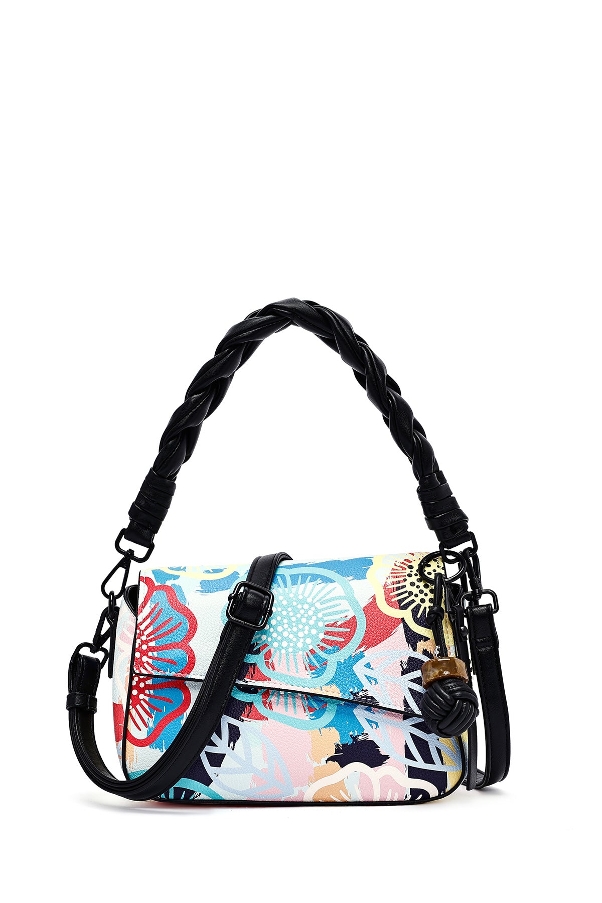 Kadın Beyaz Uzun Askılı Baskılı Omuz Çantası