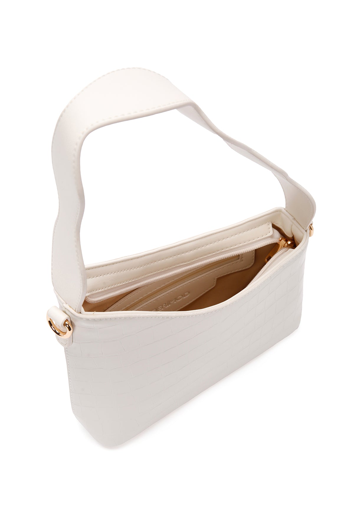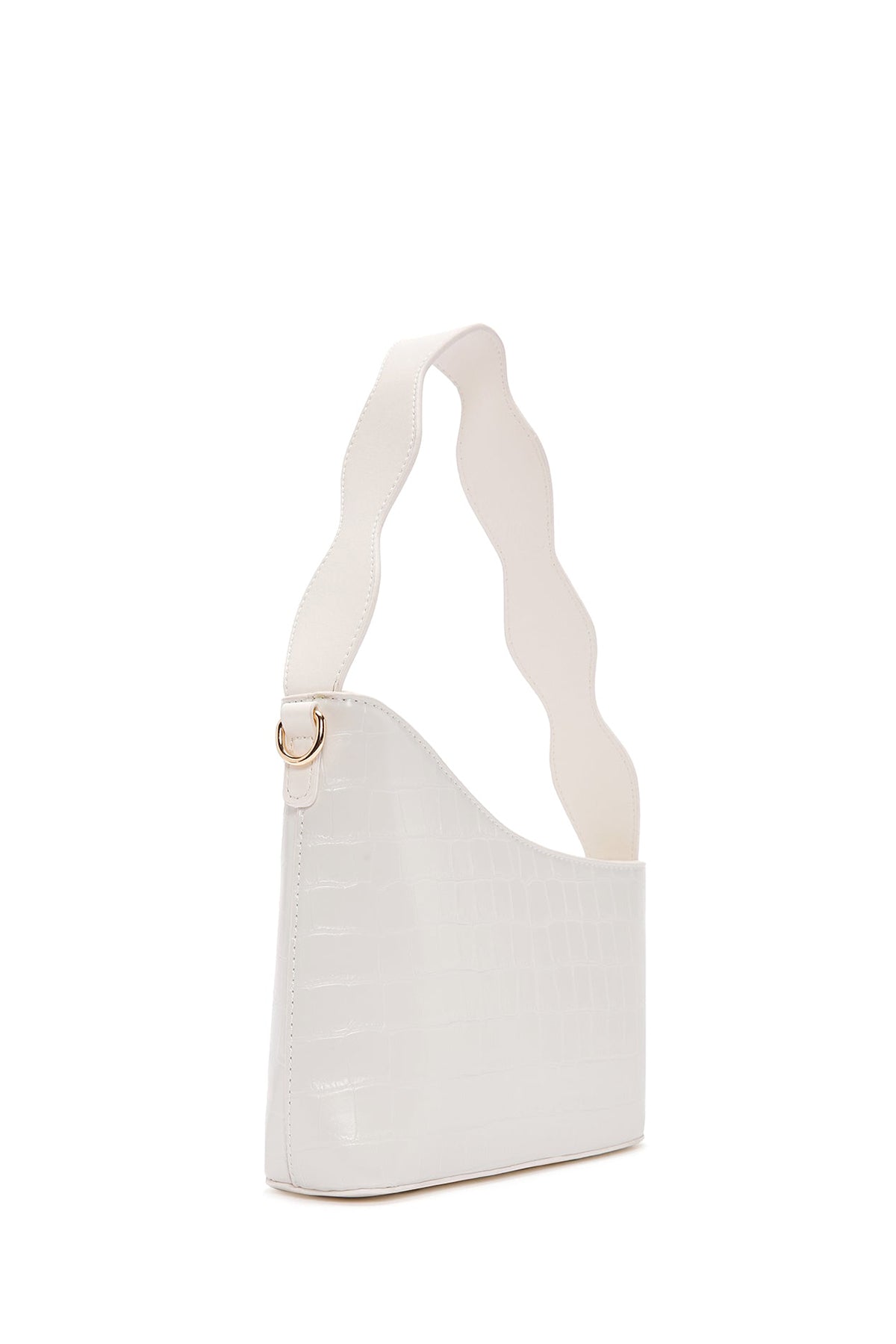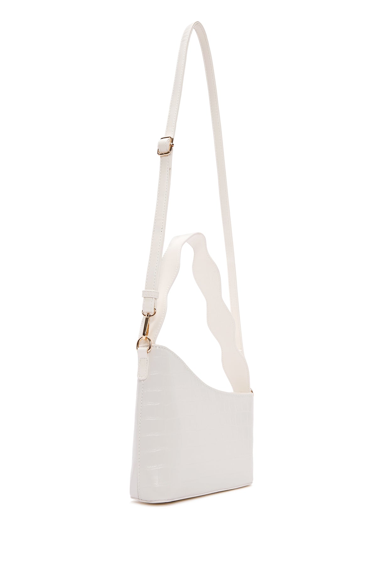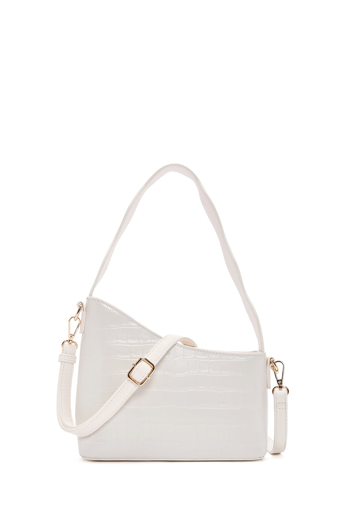 Kadın Beyaz Uzun Askılı Kroko Desenli Omuz Çantası