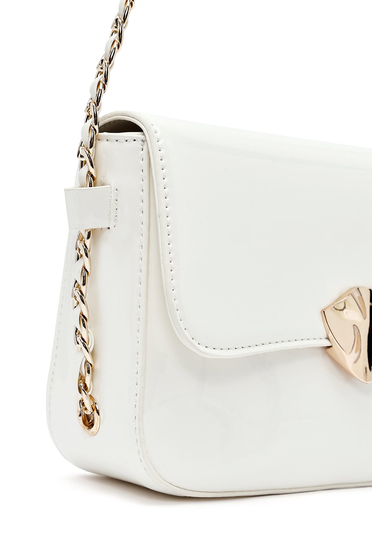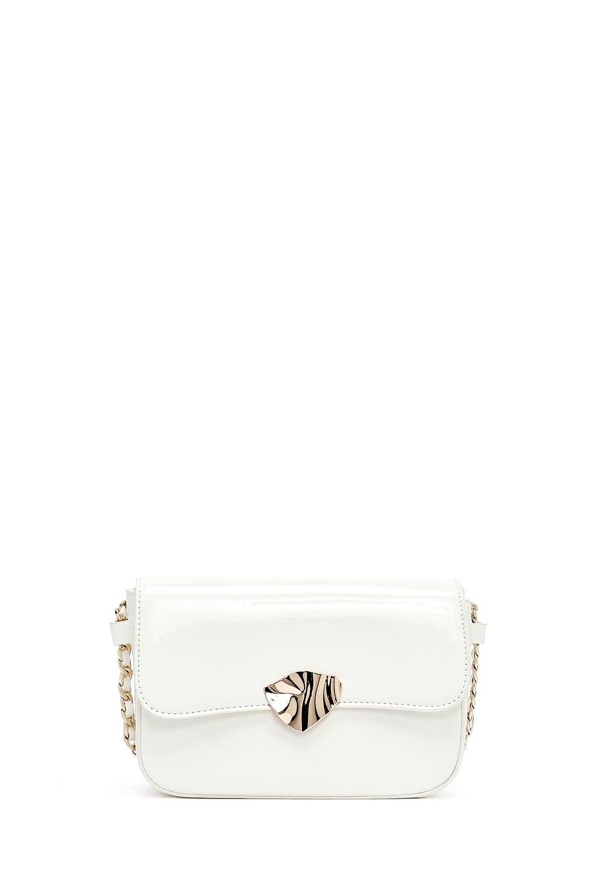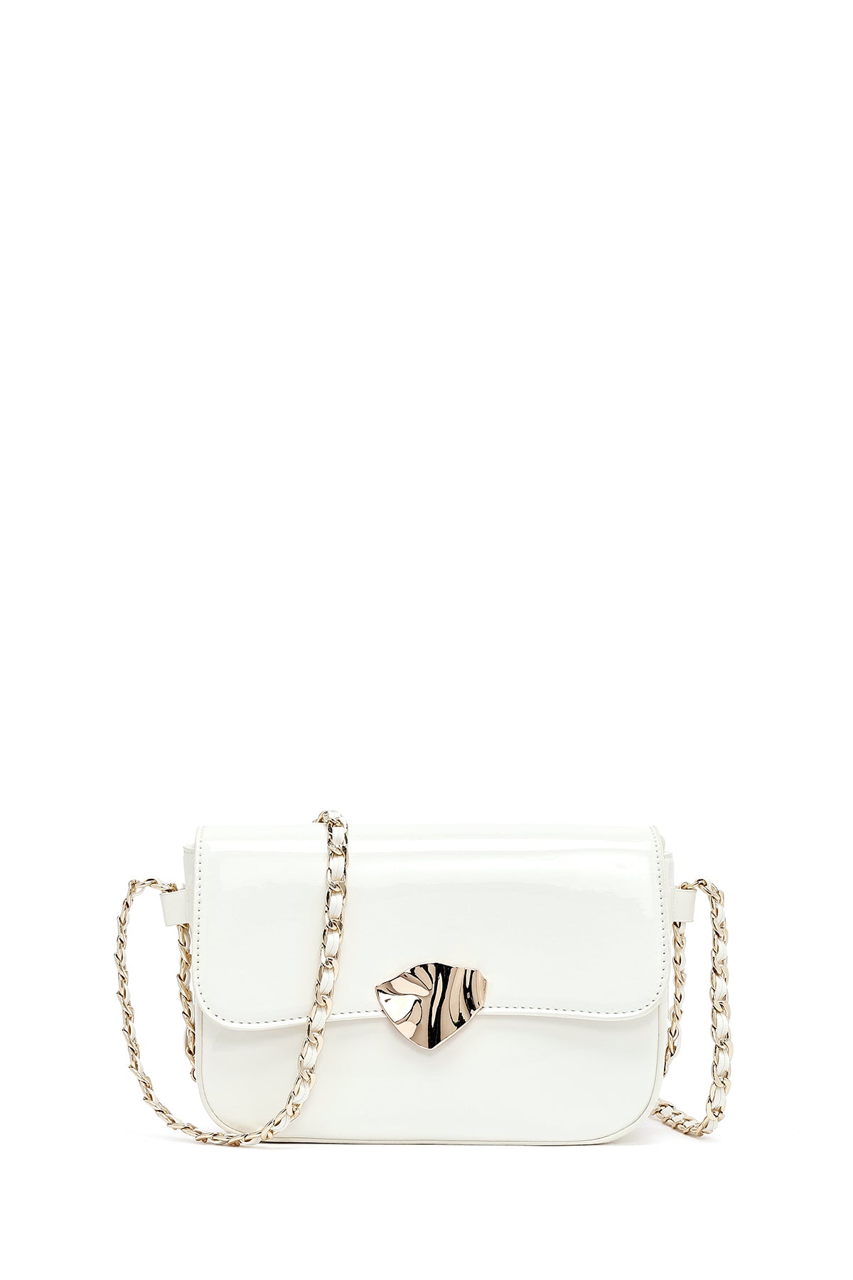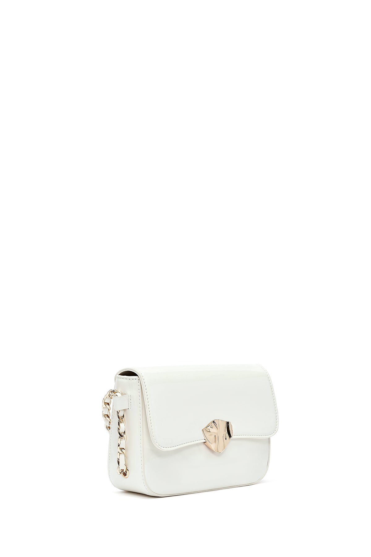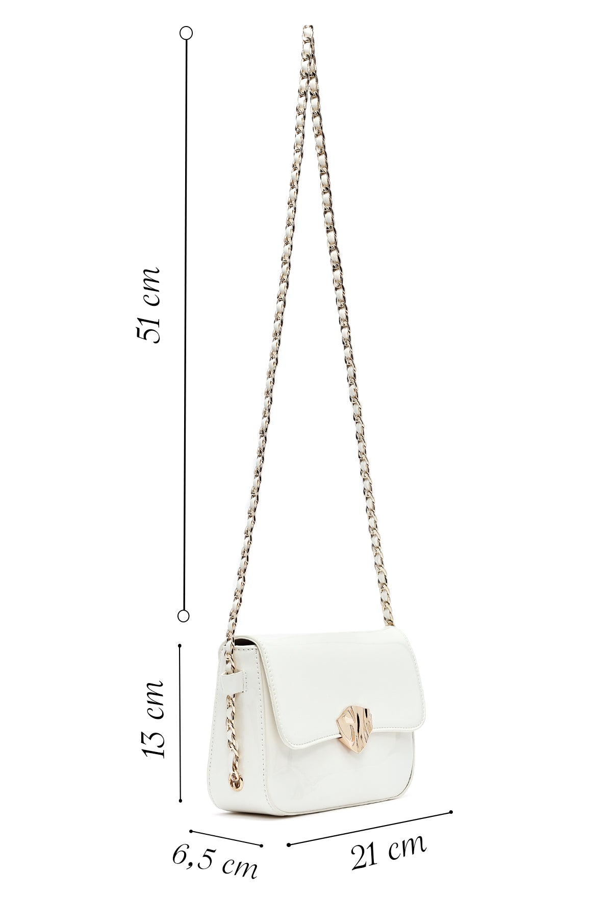 Kadın Beyaz Uzun Askılı Rugan Çapraz Çanta