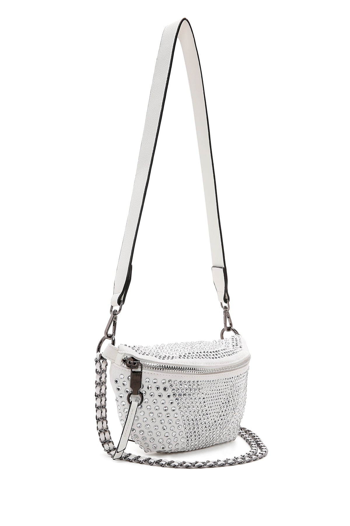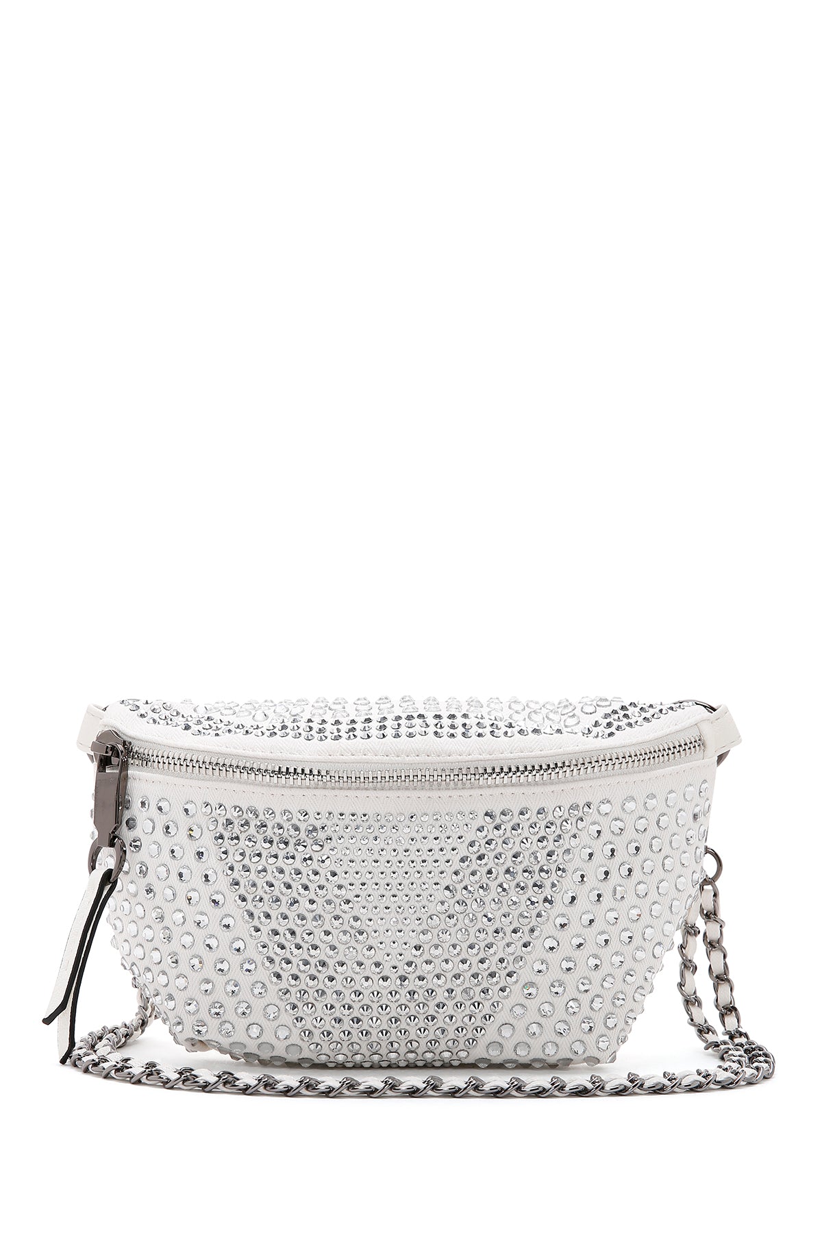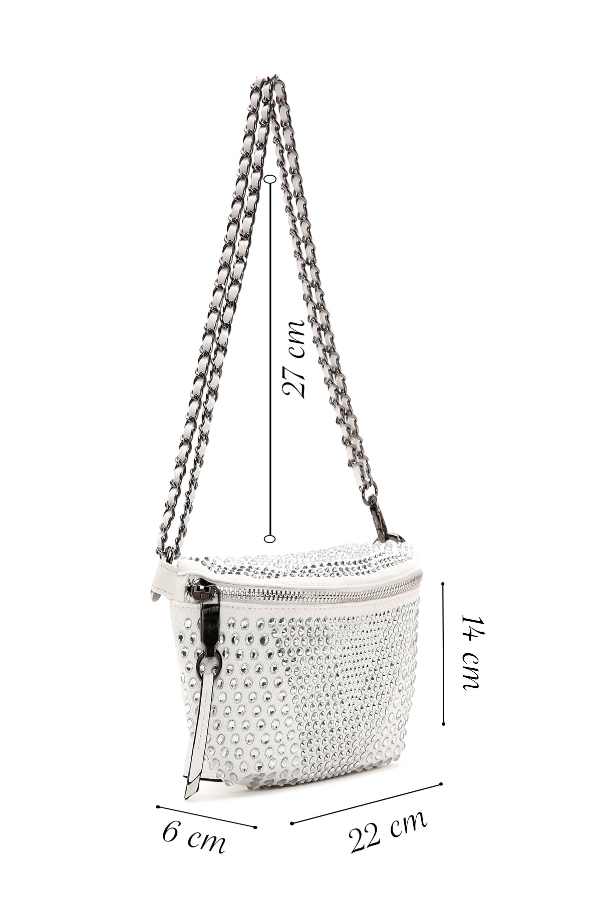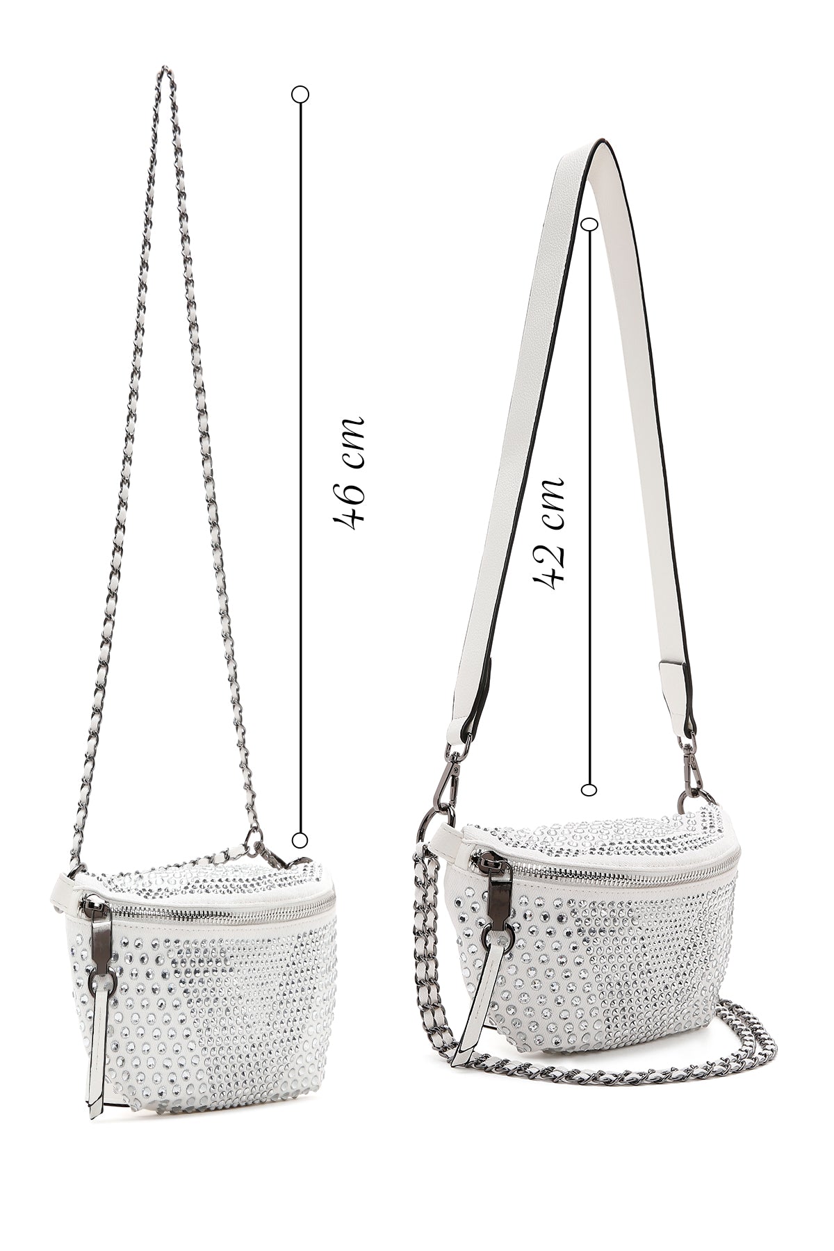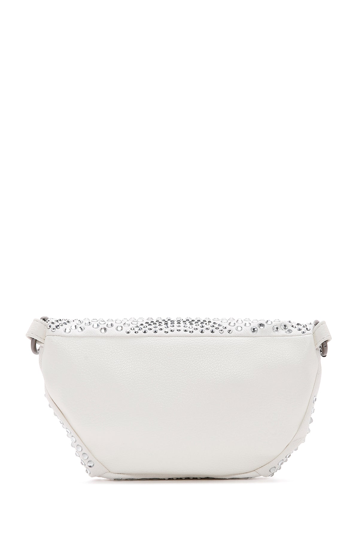 Kadın Beyaz Uzun Askılı Taşlı Çapraz Çanta