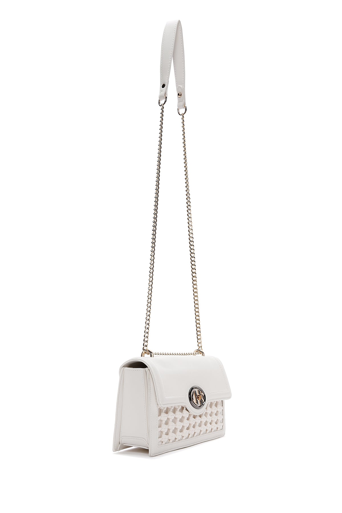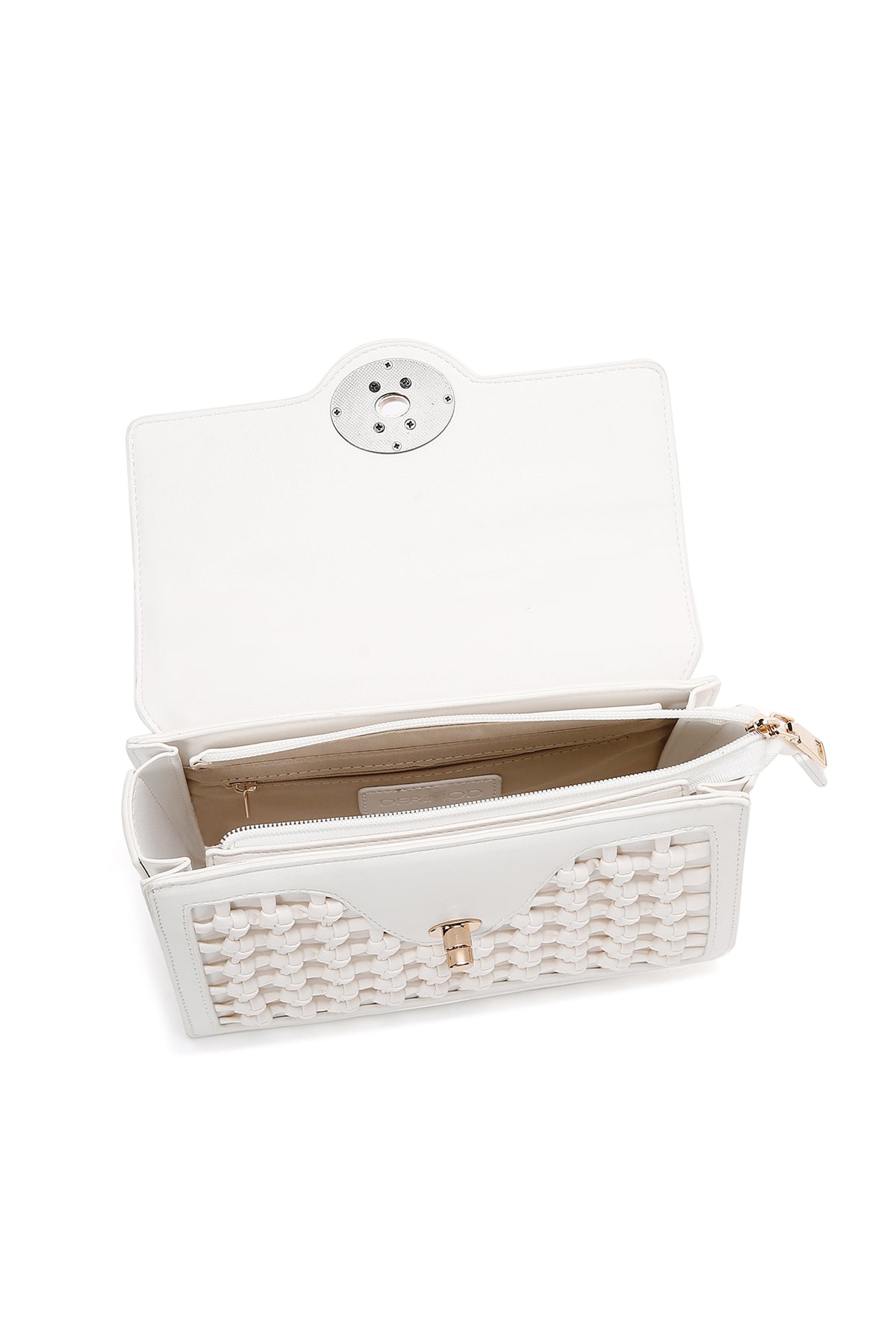 Kadın Beyaz Uzun Zincir Askılı Örgü Çapraz Çanta