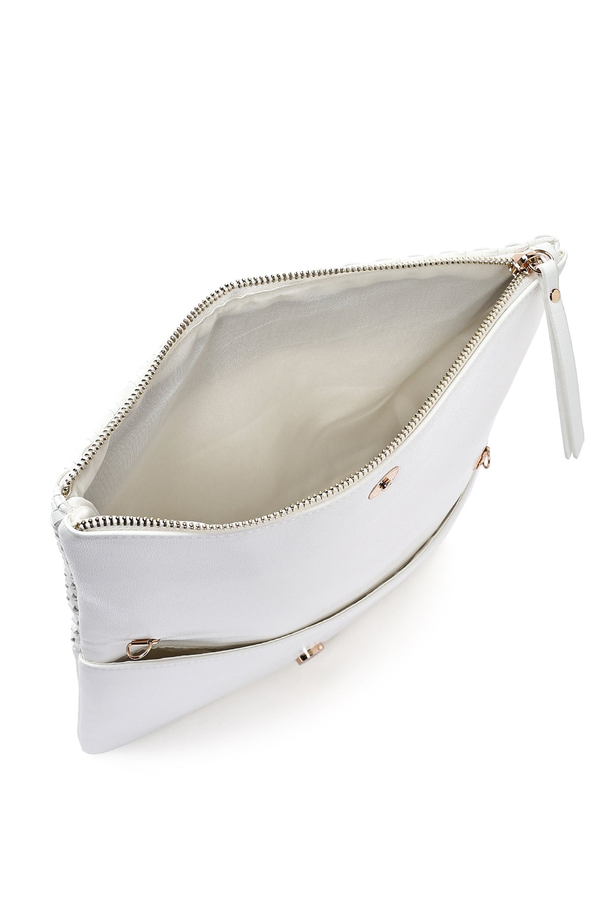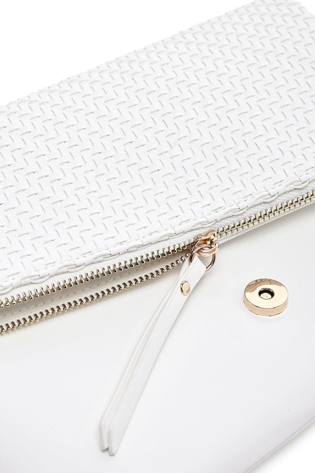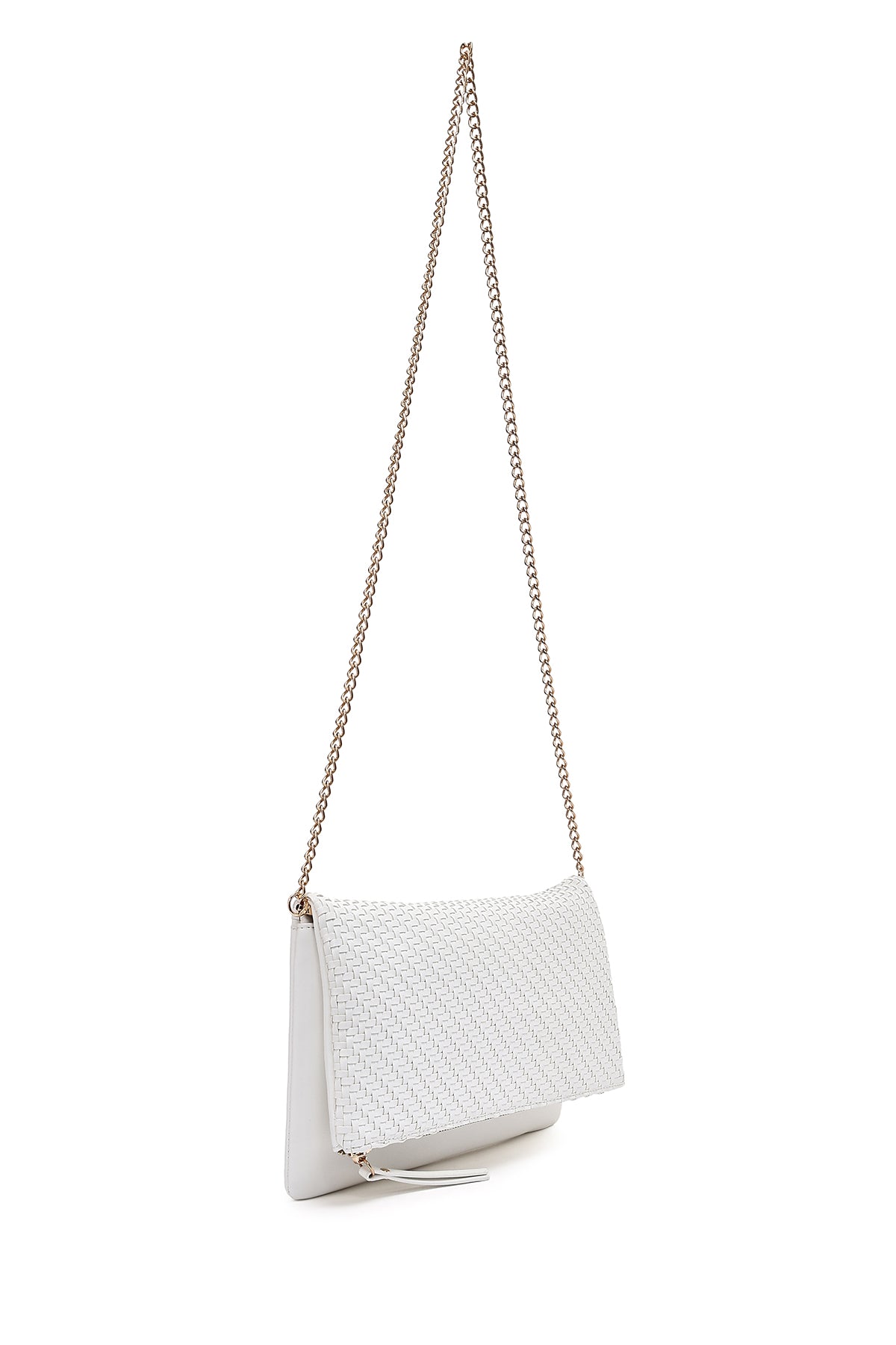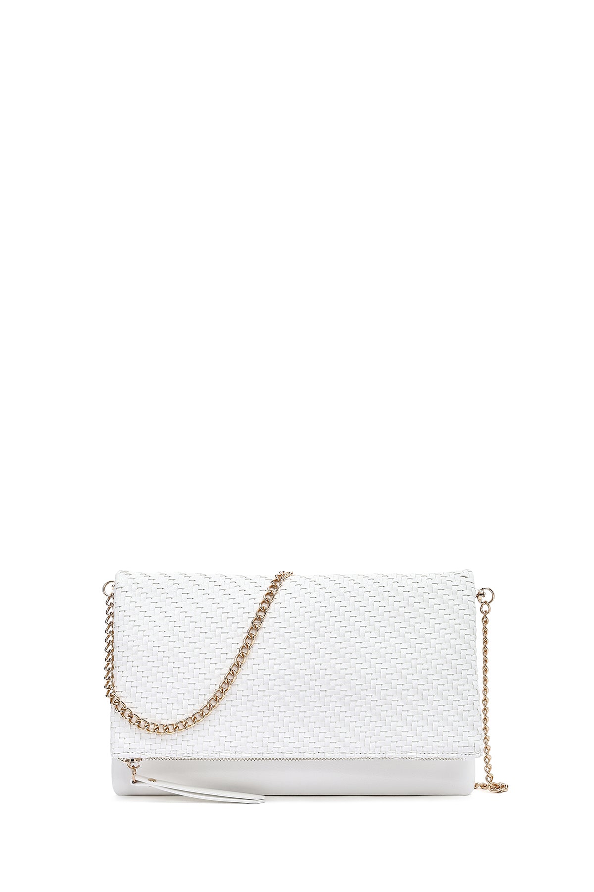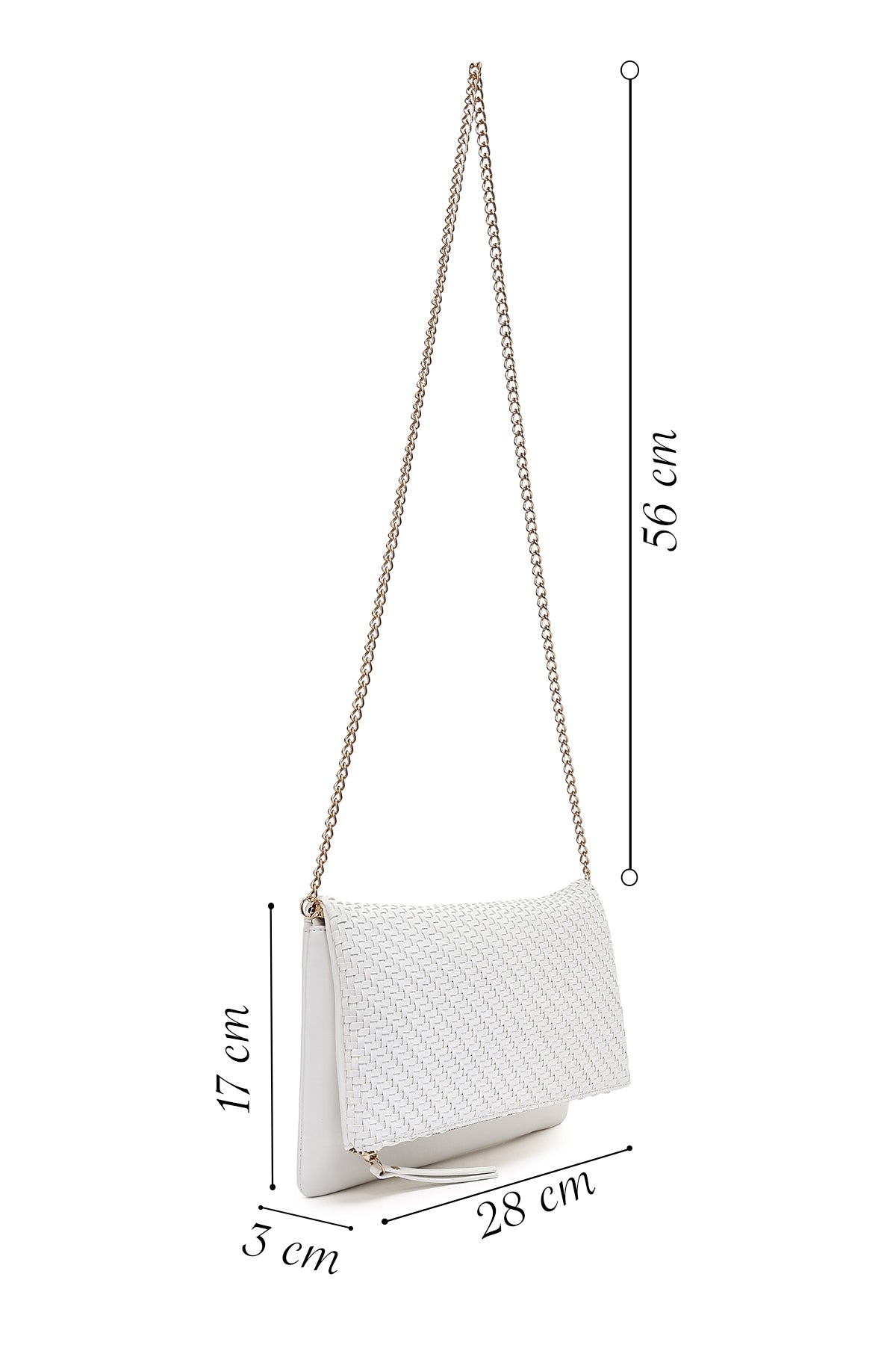 Kadın Beyaz Uzun Zincir Askılı Örgülü Portföy Çanta