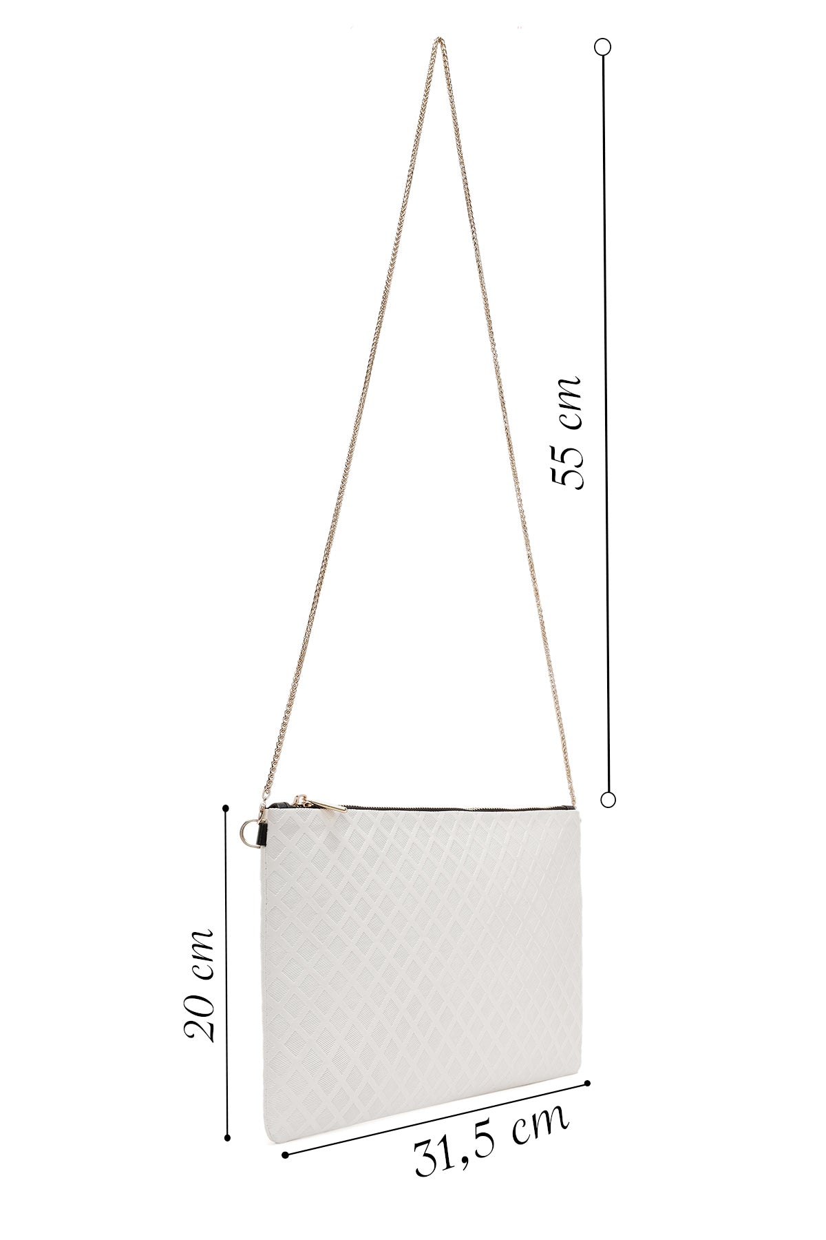 Kadın Beyaz Uzun Zincir Askılı Portföy Çanta