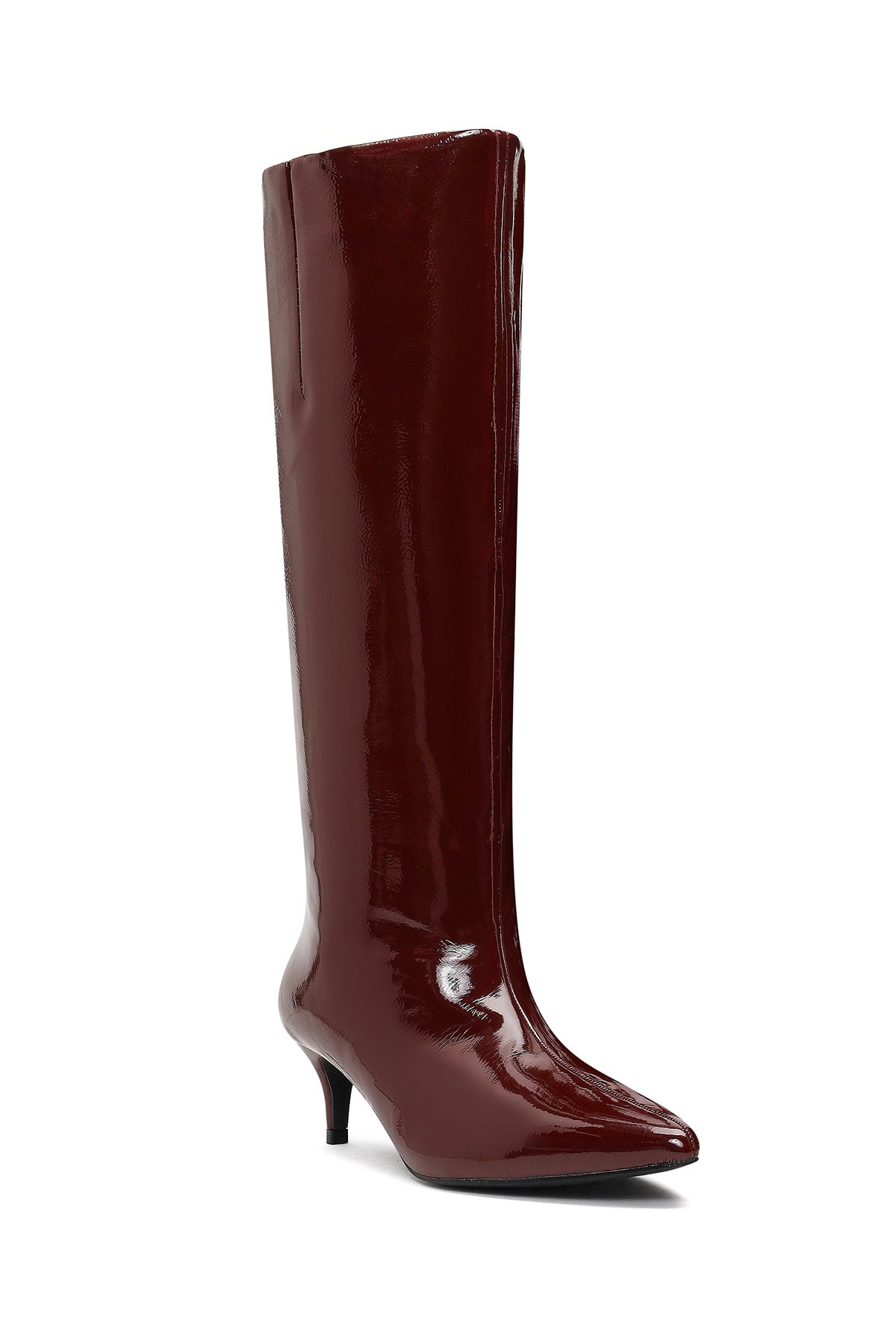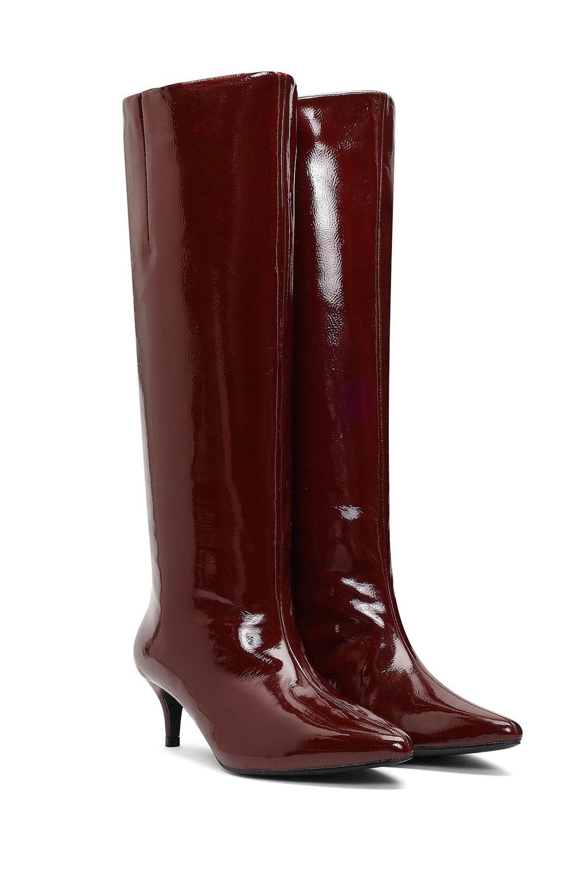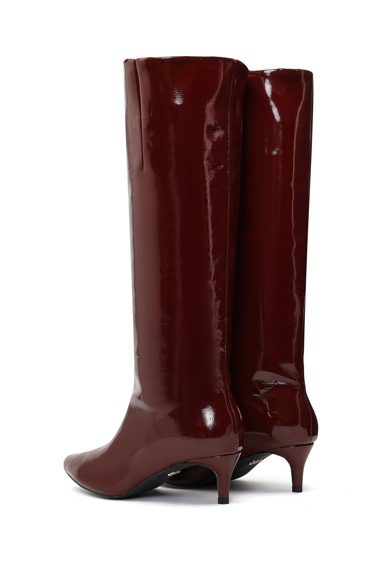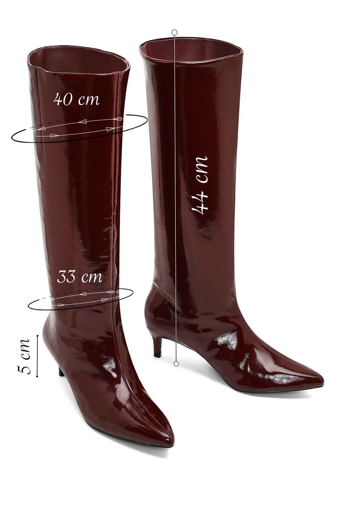 Derimod'un kış koleksiyonundan, bordo rugan deri kullanılarak tasarlanan çizme modeli, 5 cm yüksekliğindeki ince topuğu ile şık bir görünüm sunuyor. Diz altı uzunluğu ve parlak rugan dokusuyla göz alıcı bir görünüm sergileyen model, deri iç astarı ile kaliteli bir kullanım sağlıyor. Sivri burun detayı ve ince topuğu ile zarif bir siluet oluşturan çizme, elbiselerden eteklere, pantolonlardan mini elbiselere kadar geniş bir kullanım alanı sunuyor. Sonbahar ve kış mevsimlerinde tercih edilebilir. Ürün kodu: 25WFE481416