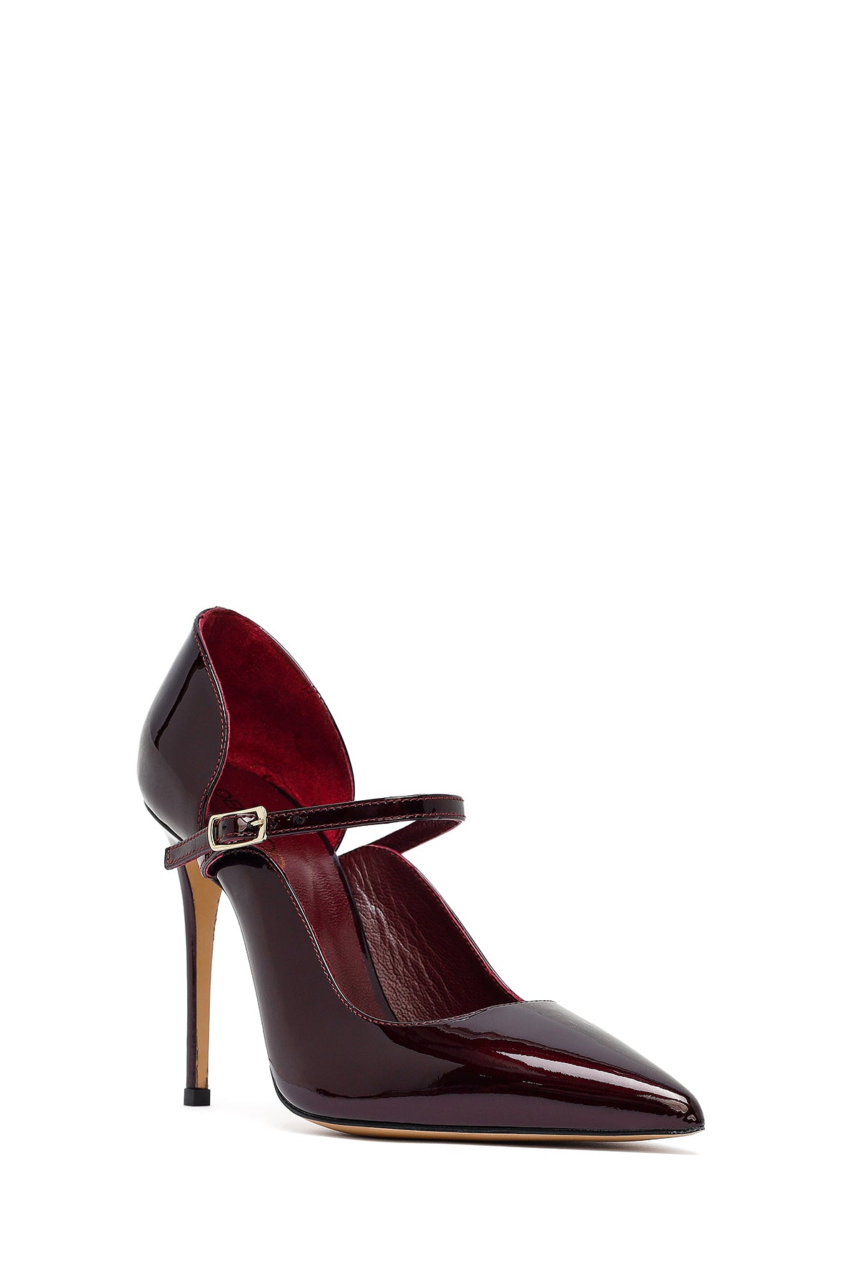 Derimod'un sonbahar koleksiyonundan, bordo rugan deri ile tasarlanan stiletto modeli, 11 cm yüksekliğindeki ince topuğu ile zarif bir duruş sergiliyor. Ayak bileğindeki ince toka detayı ile Mary Jane stilini modern bir yorumla sunan model, deri iç astarı ile şık bir görünüm sağlıyor. Sivri burun formu ile zarafeti vurgulayan ayakkabı, ofis kombinlerinden davet kıyafetlerine kadar geniş bir kullanım alanı sunuyor. Sonbahar ve kış mevsimlerinde özel davetler, iş toplantıları ve şık akşam yemekleri için ideal bir tercih. Ürün kodu: 25AFD121216