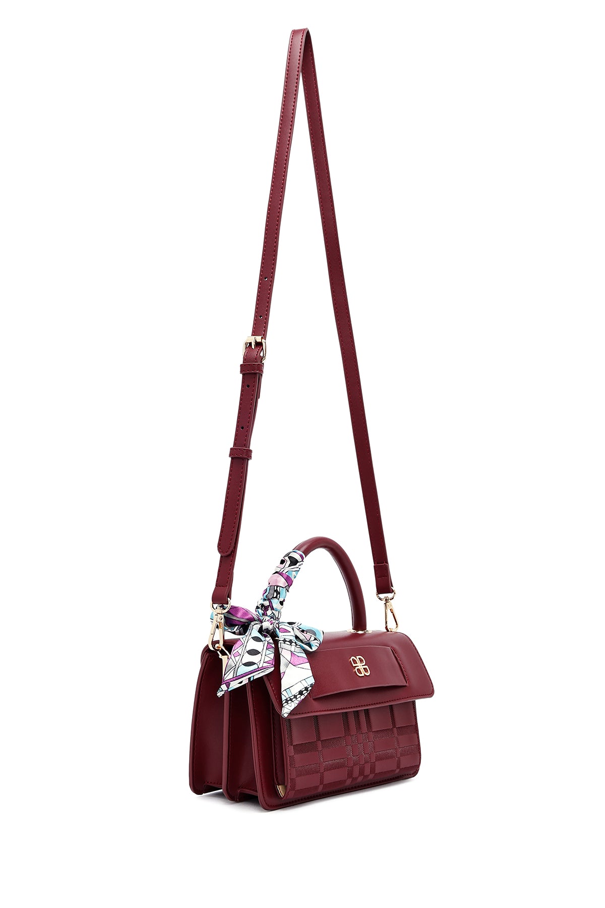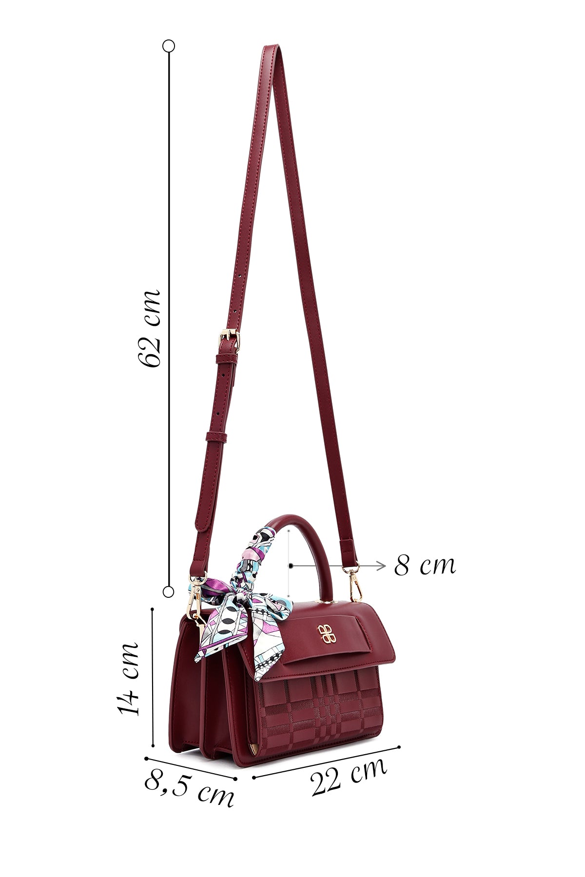 Kadın Bordo Uzun Askılı Baskılı Çapraz Çanta