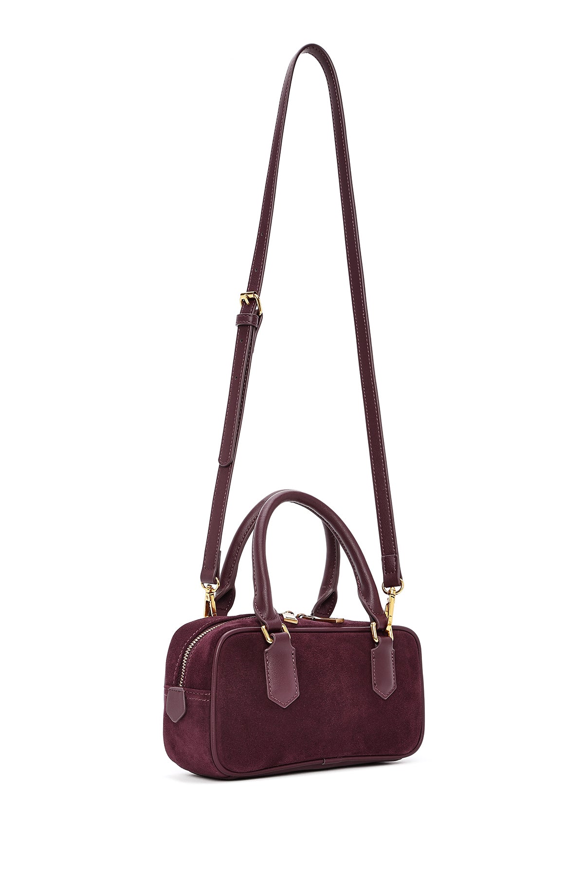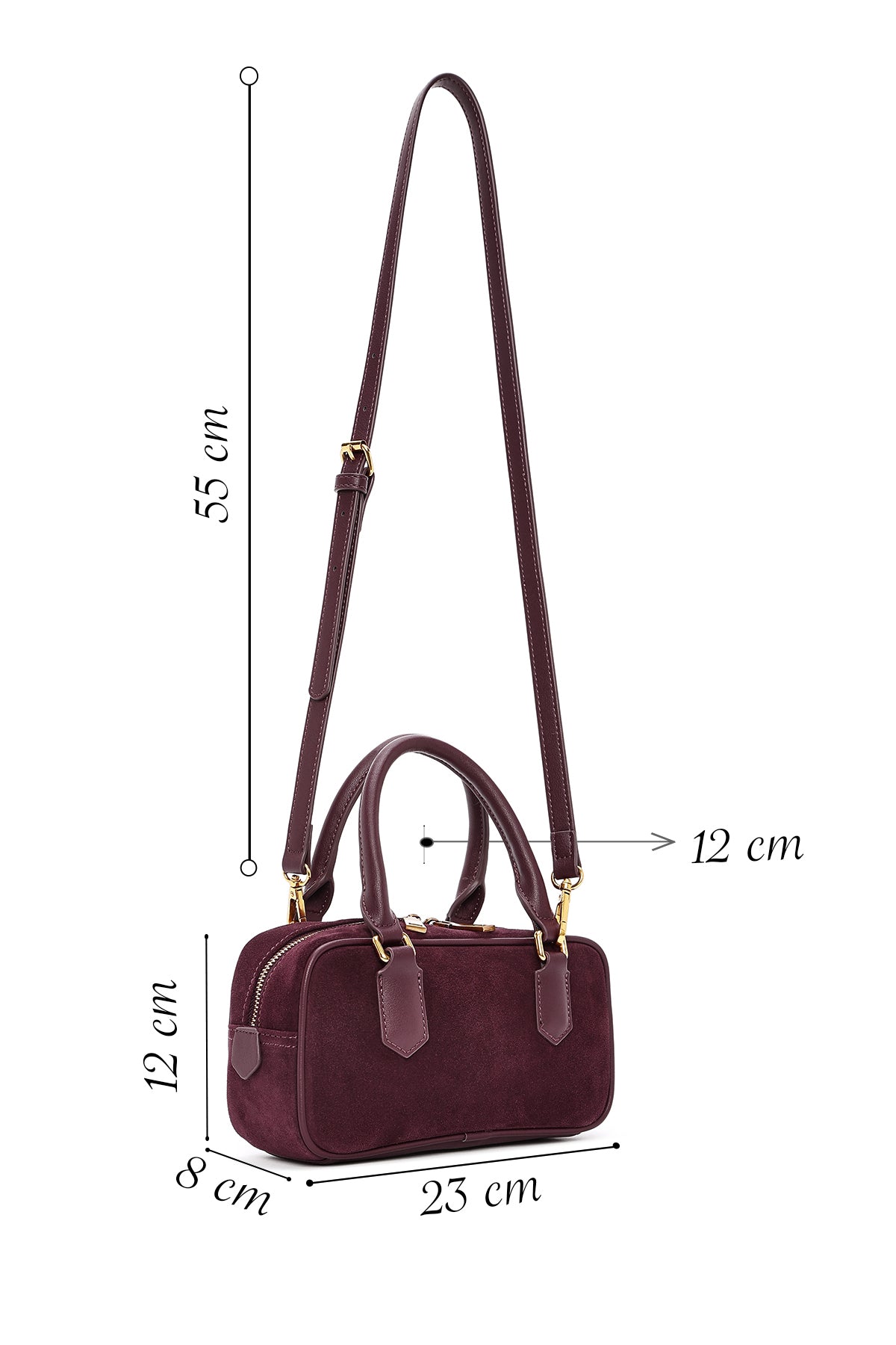 Kadın Bordo Uzun Askılı Süet Deri Mini Kol Çantası