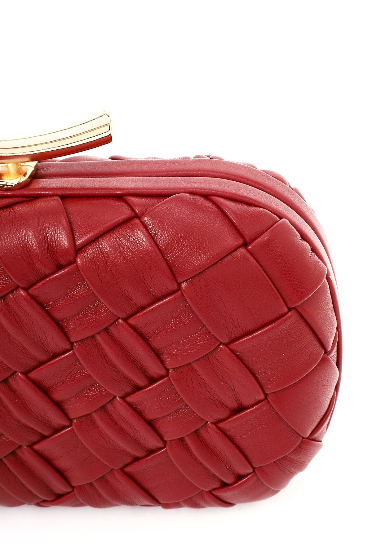 Kadın Bordo Uzun Zincir Askılı Mini Örgü Portföy Çanta
