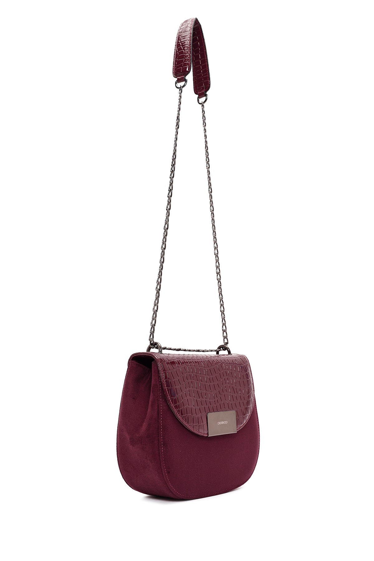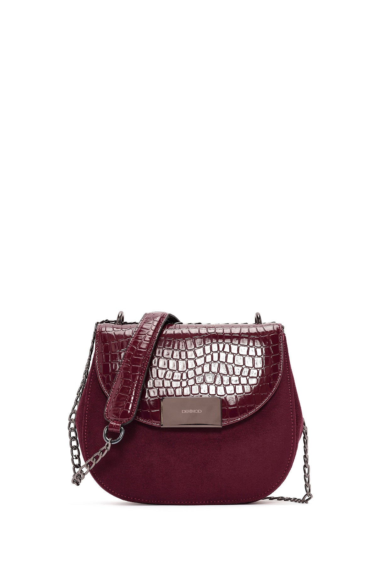 Kadın Bordo Zincir Askılı Baskılı Omuz Çantası