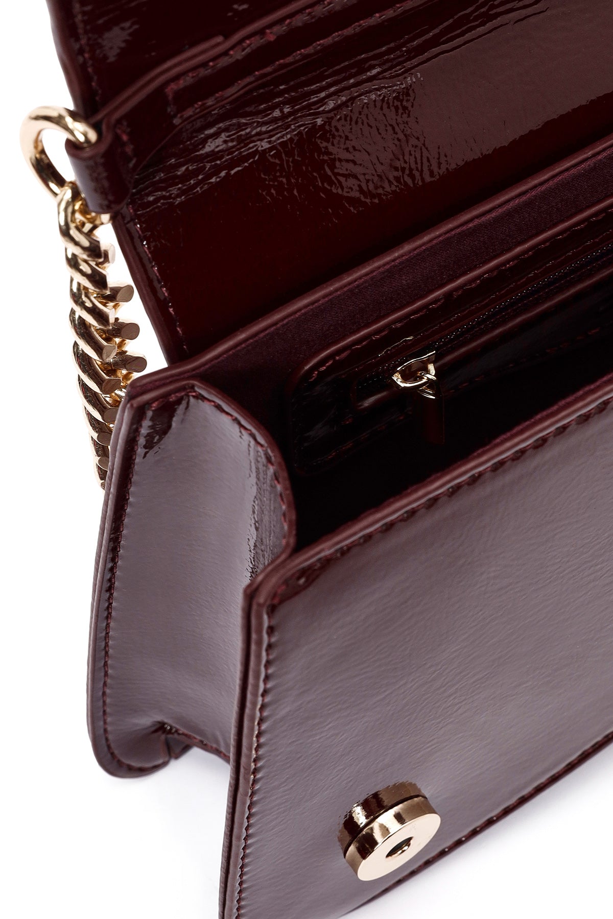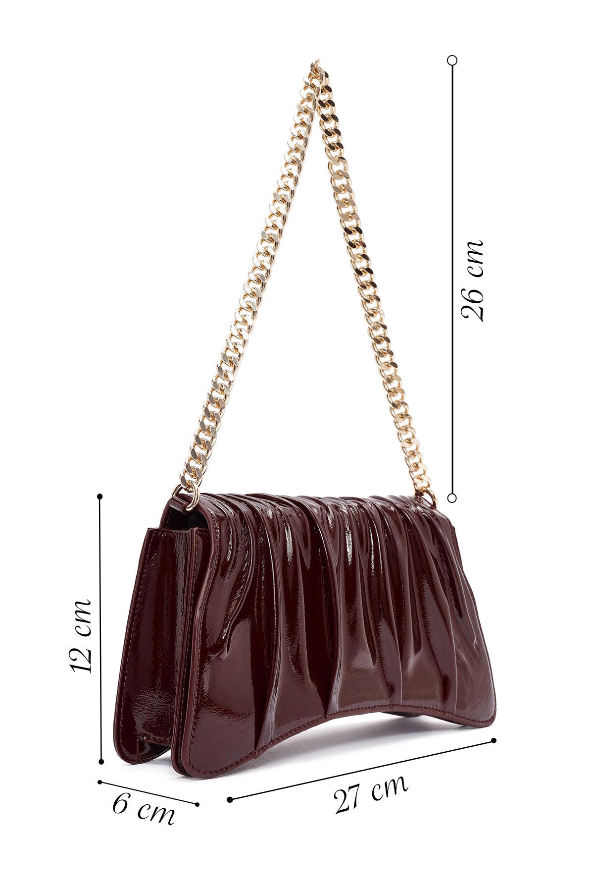 Kadın Bordo Zincir Askılı Rugan Abiye Omuz Çantası